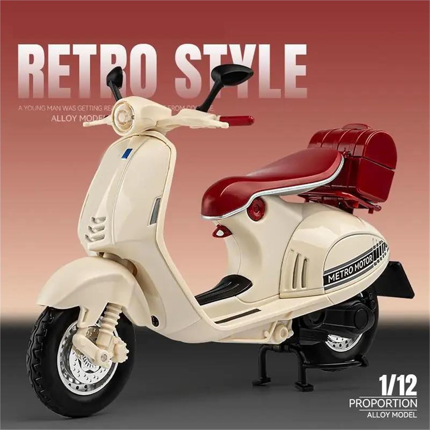 Modello di motocicletta per 946 Dargon Modello di motocicletta giocattolo in scala 1:12, parti squisite progettate secondo le proporzioni originali dell'auto, cruscotto, pedali del freno e dell'acceleratore sono progettati per essere realistici e precisi. Il modello di motocicletta è un modello squisito realizzato in stretta conformità con la forma, la struttura, il colore, gli interni e altre proporzioni del veicolo originale. È un modello in miniatura del veicolo originale ed è progettato per riprodurre l'aspetto del veicolo originale. Modello di auto di simulazione La finitura liscia e senza sbavature e la vernice lucida e uniforme dimostrano una maestria artigianale eccezionale. Questo modello incarna lo stile di una motocicletta, soddisfacendo l'amore degli appassionati per i modelli nostalgici.
