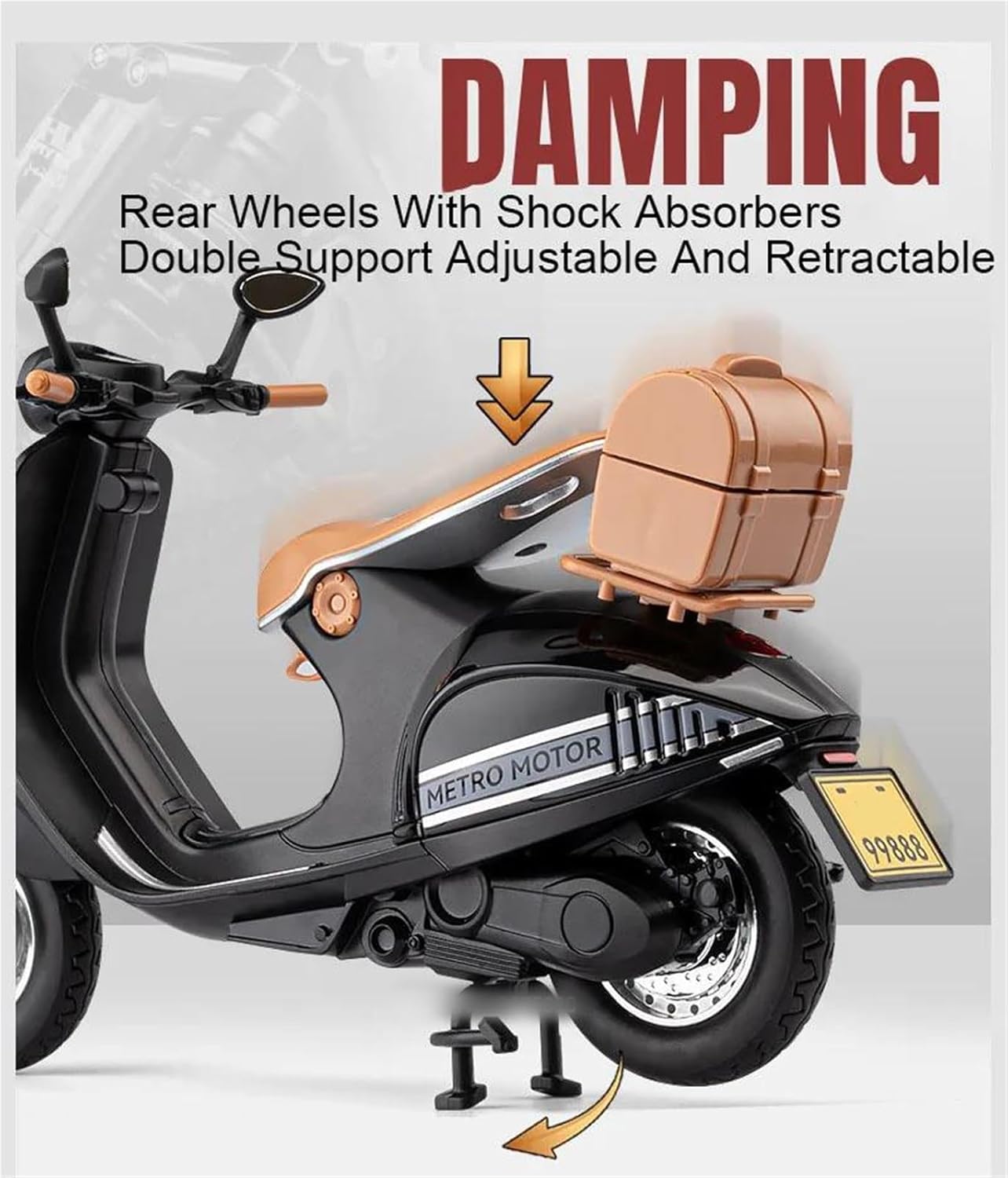 Modello di motocicletta per 946, sterzo anteriore, con suono e luce, assorbimento degli urti posteriore, robusto e durevole Modello di auto giocattolo in scala 1:12, materiale: corpo in metallo + telaio in ABS + pneumatici in gomma, colore: nero, bianco Il modello di motocicletta è un modello squisito realizzato in stretta conformità con la forma, la struttura, il colore, gli interni e altre proporzioni del veicolo originale. È un modello in miniatura del veicolo originale ed è progettato per riprodurre l'aspetto del veicolo originale. Modello di auto di simulazione Realizzato in resistente lega di zinco, è resistente alle cadute e all'usura, garantendo la durevolezza del modello e la sua lunga conservazione. La finitura della vernice è uniformemente liscia, con colori vivaci e duraturi che resistono allo sbiadimento e alle scheggiature, garantendo un aspetto costantemente brillante.