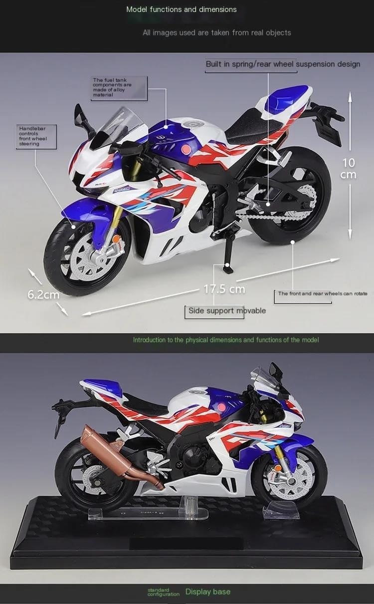 Modellini di moto giocattolo in scala 1:12, parti squisite progettate secondo le proporzioni originali dell'auto, cruscotto, pedali del freno e dell'acceleratore sono progettati per essere realistici e precisi. la modalità di simulazione della motocicletta è piena di personalità, così bella. Ottima per la collezione e l'arredamento dell'ufficio domestico. Modello di motocicletta per Cbr1000rr R Fireblade Sp Cbr1000 rr La finitura liscia e senza sbavature e la vernice lucida e uniforme dimostrano una maestria artigianale eccezionale. Questo modello incarna lo stile di una motocicletta, soddisfacendo l'amore degli appassionati per i modelli nostalgici.