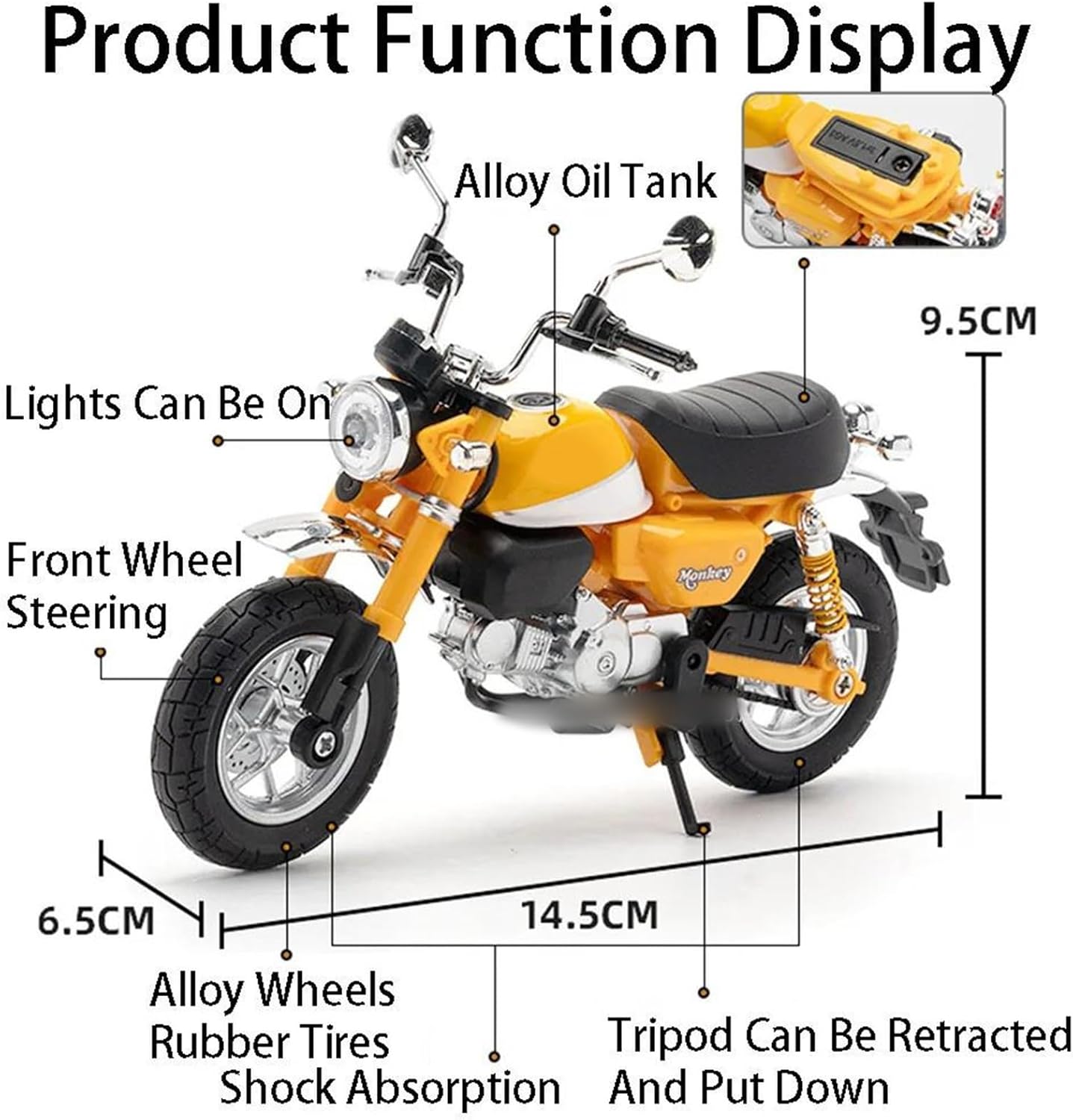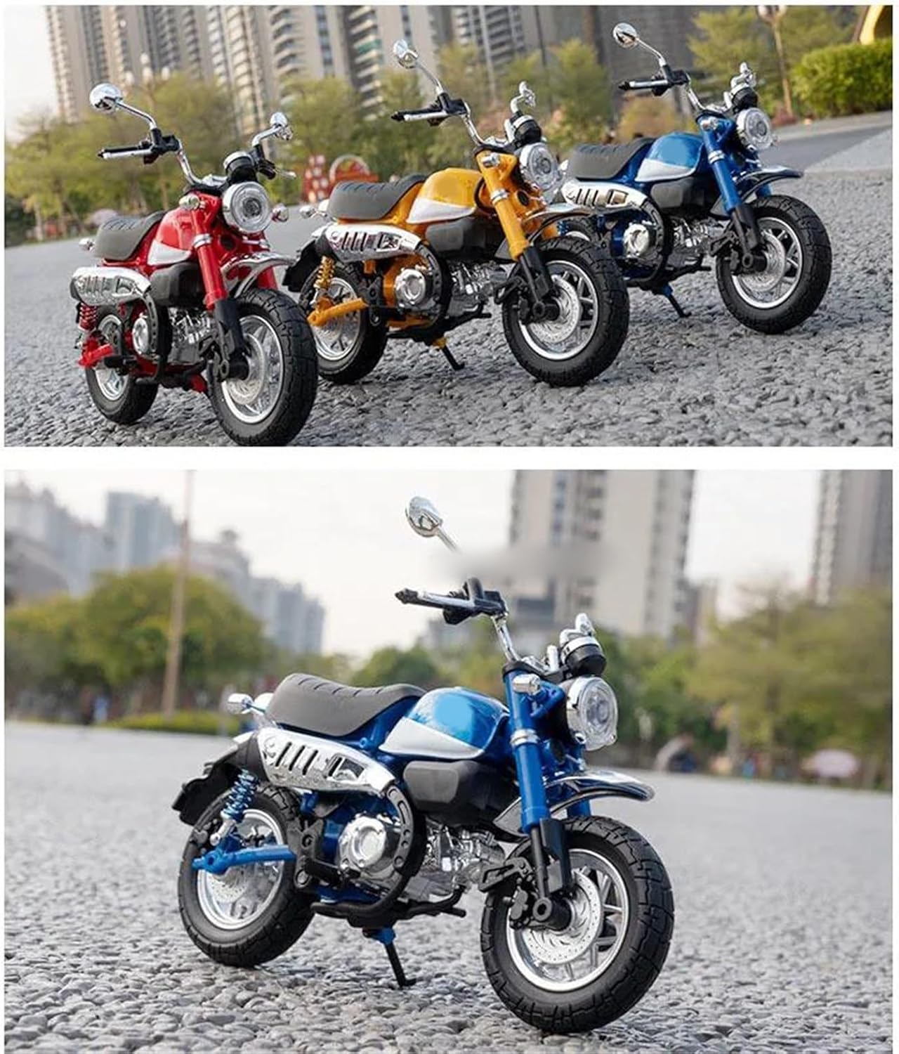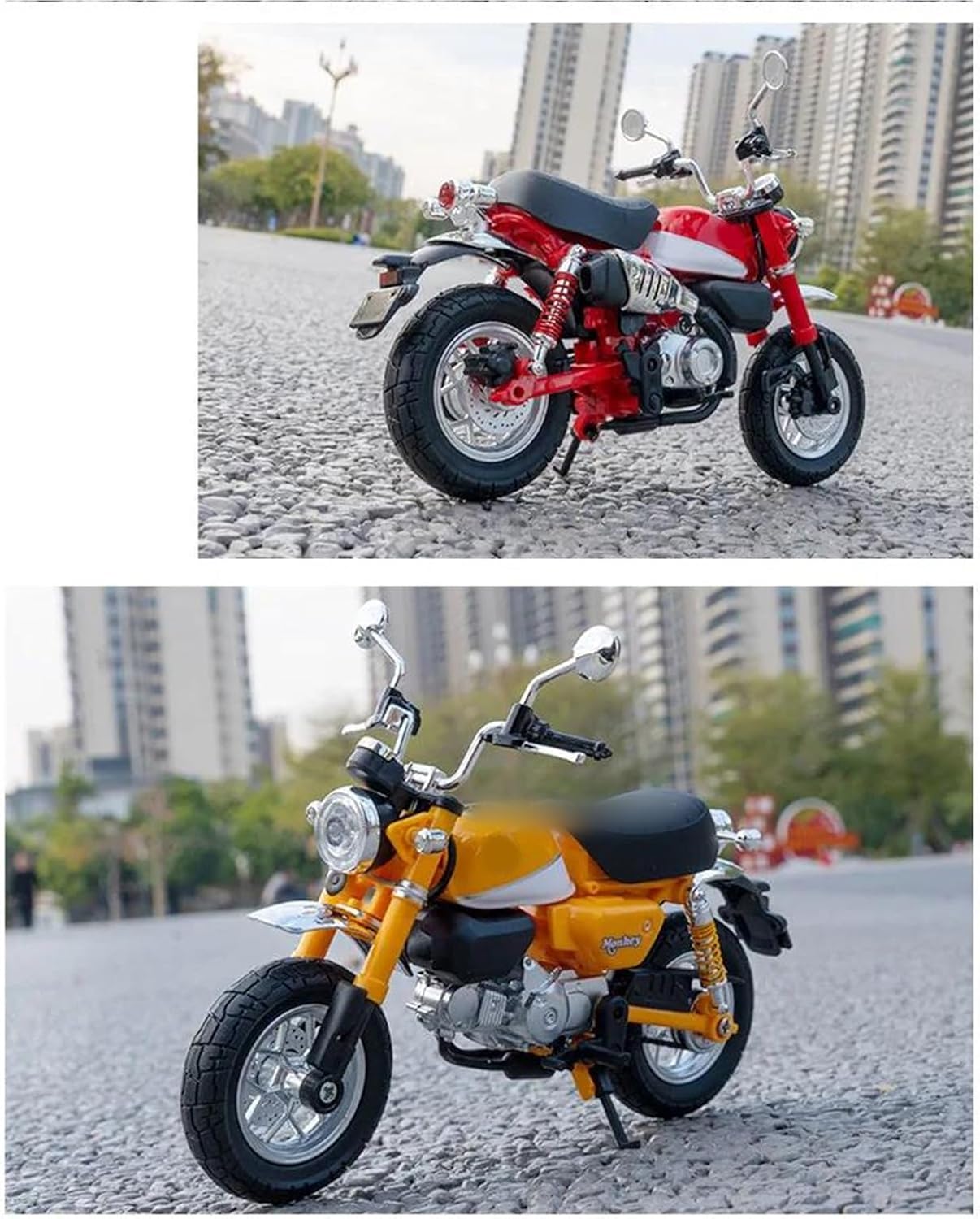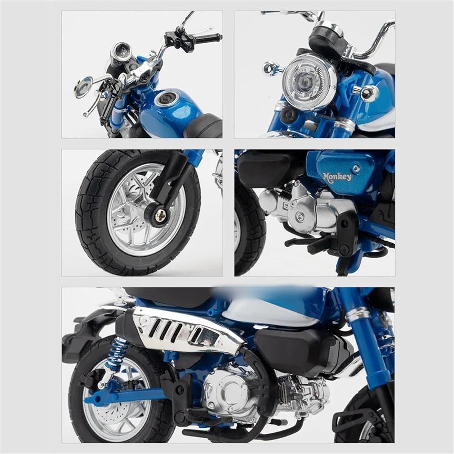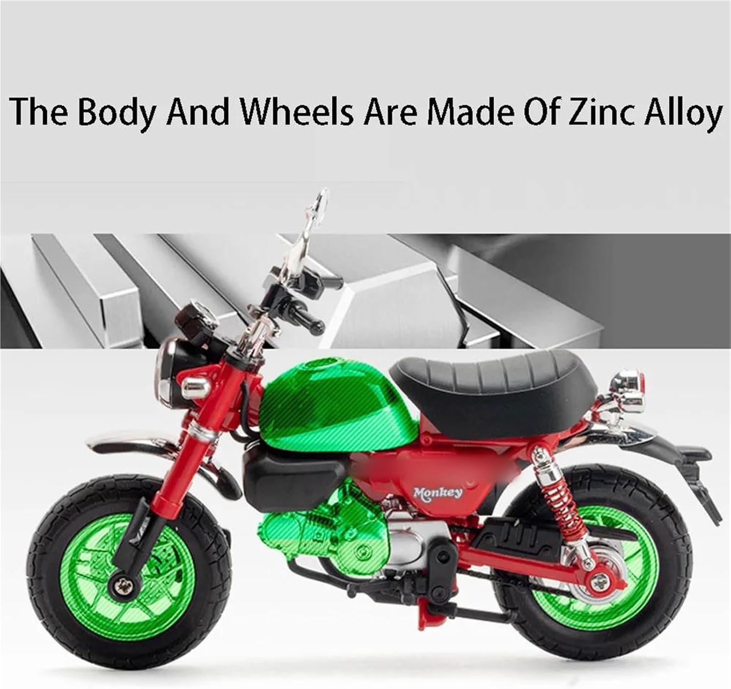 Modellini di motociclette giocattolo in scala 1:12 per Monkey Modello di auto di simulazione, la combinazione di materiale in lega di zinco e materiale ABS è sia robusta che leggera, rendendo più facile giocare con i modelli di auto. Le ruote sono dotate di funzione di assorbimento degli urti, che può adattarsi a varie sezioni stradali Modello di motocicletta militare. Simula l'effetto di una vera motocicletta, la maniglia della motocicletta può essere collegata alle ruote anteriori per girare a sinistra e a destra. Modello di motocicletta Realizzato in resistente lega di zinco, è resistente alle cadute e all'usura, garantendo la durevolezza del modello e la sua lunga conservazione. La finitura della vernice è uniformemente liscia, con colori vivaci e duraturi che resistono allo sbiadimento e alle scheggiature, garantendo un aspetto costantemente brillante.