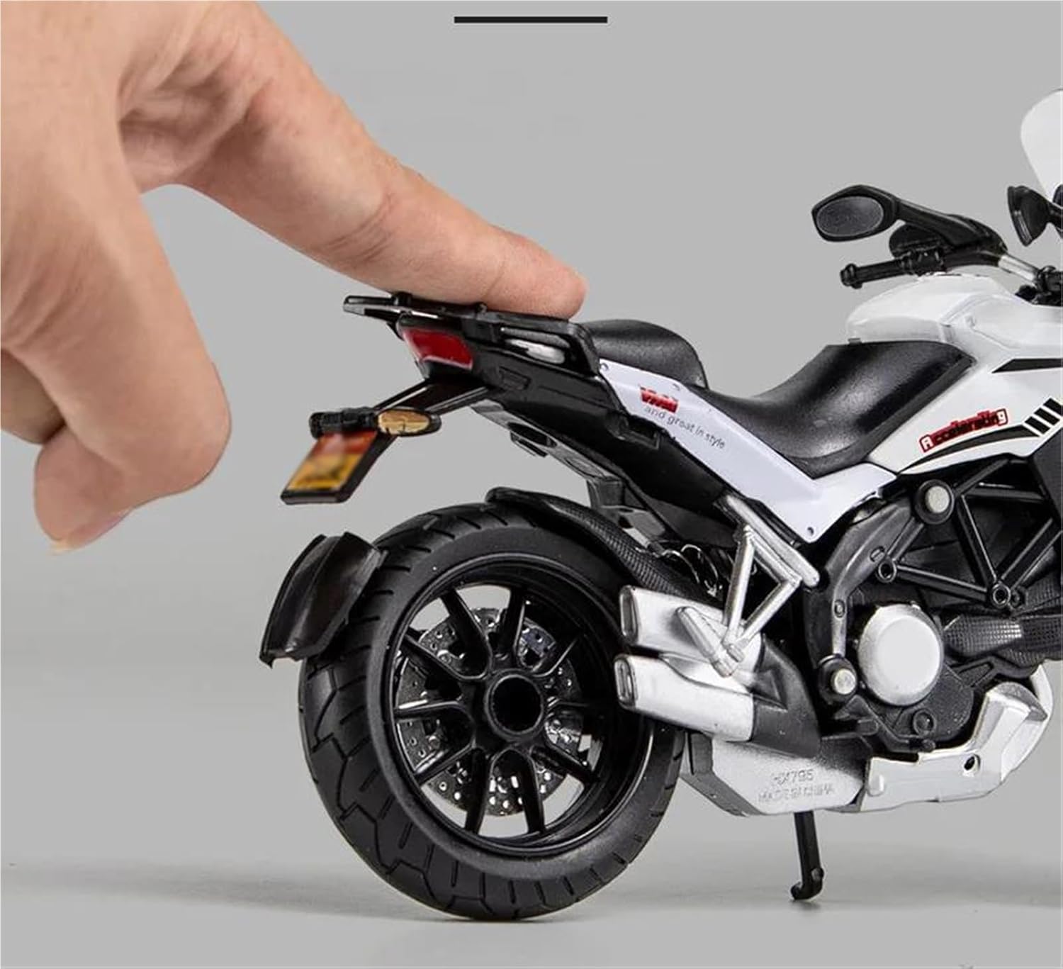 Modello di motocicletta per MTS Enduro Il modello di motocicletta è un modello squisito realizzato in stretta conformità con la forma, la struttura, il colore, gli interni e altre proporzioni del veicolo originale. È un modello in miniatura del veicolo originale ed è progettato per riprodurre l'aspetto del veicolo originale. Modello di auto di simulazione Modelli di auto giocattolo in scala 1:12, materiale: lega, ABS, colore: oro, rosso, bianco La finitura liscia e senza sbavature e la vernice lucida e uniforme dimostrano una maestria artigianale eccezionale. Questo modello incarna lo stile di una motocicletta, soddisfacendo l'amore degli appassionati per i modelli nostalgici.