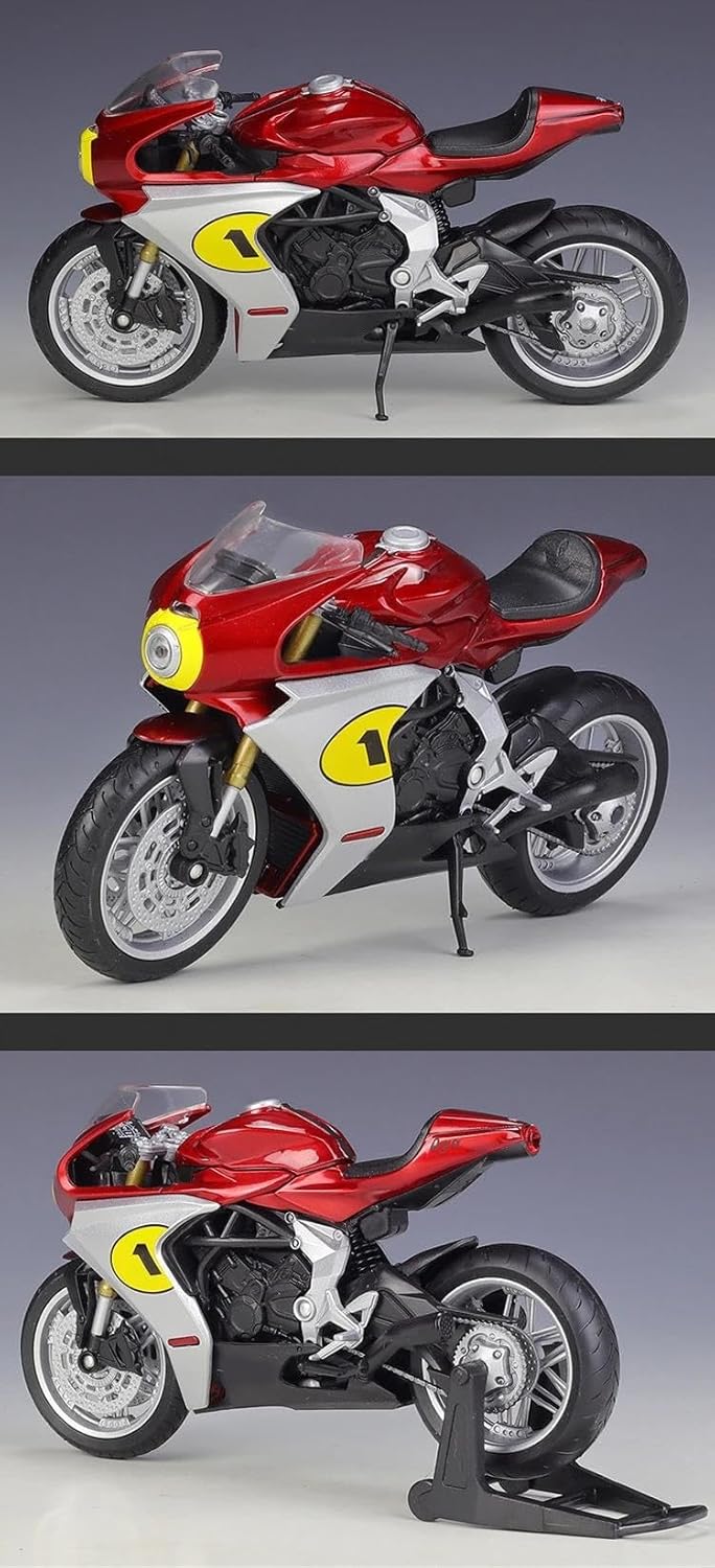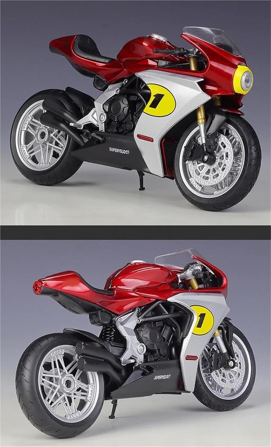 Modello di motocicletta per MV per Agusta Superveloce Ago Il modello di motocicletta è un modello squisito realizzato in stretta conformità con la forma, la struttura, il colore, gli interni e altre proporzioni del veicolo originale. È un modello in miniatura del veicolo originale ed è progettato per riprodurre l'aspetto del veicolo originale. Modello di auto di simulazione Modello di auto giocattolo in scala 1:12, molto robusto, lavorazione pregiata, il modello in miniatura è una bellissima opera esposta dai collezionisti. È un must per ogni appassionato di motociclette e viene regalato ad amici o bambini. La finitura liscia e senza sbavature e la vernice lucida e uniforme dimostrano una maestria artigianale eccezionale. Questo modello incarna lo stile di una motocicletta, soddisfacendo l'amore degli appassionati per i modelli nostalgici.