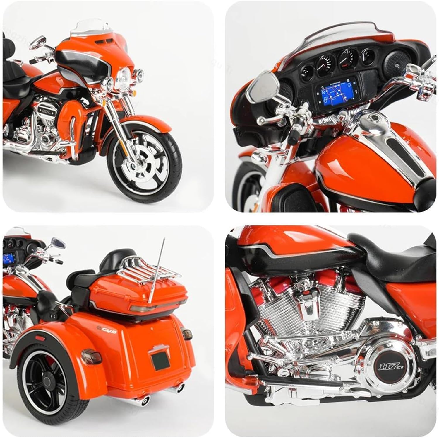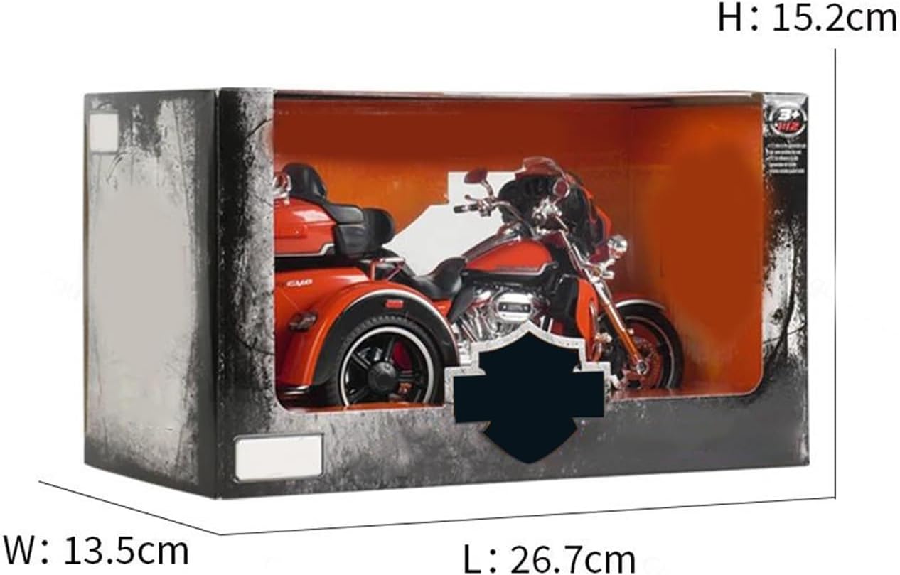 Modellini di motociclette giocattolo in scala 1:12 per per D&avidson 2021 CVO Tri Glide Trikes Forcella sterzante, circa 8' di lunghezza, sospensione posteriore a molla, ruote a rotolamento libero, modello di motocicletta simulata Modello di motocicletta, che lo rende un regalo unico e innovativo per adolescenti e adulti a Natale, Ringraziamento, compleanni, festa del papà, ritorno a casa e altre occasioni. Ottimo come regalo, collezione, souvenir, arredamento, casa, ufficio e sala studio. Realizzato in resistente lega di zinco, è resistente alle cadute e all'usura, garantendo la durevolezza del modello e la sua lunga conservazione. La finitura della vernice è uniformemente liscia, con colori vivaci e duraturi che resistono allo sbiadimento e alle scheggiature, garantendo un aspetto costantemente brillante.