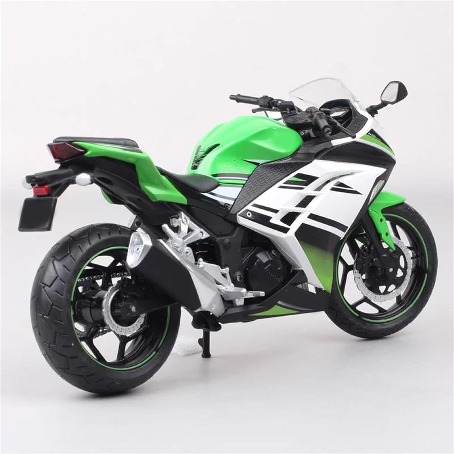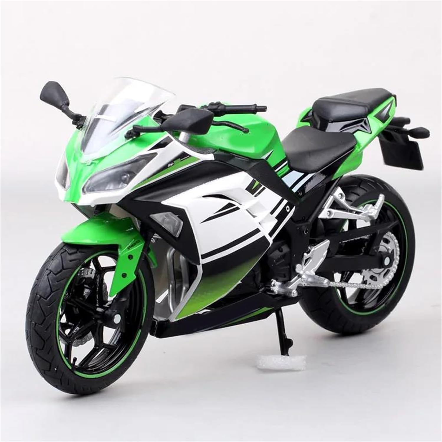 Modello di motocicletta per per Ninja 250 Il modello di motocicletta è un modello squisito realizzato in stretta conformità con la forma, la struttura, il colore, gli interni e altre proporzioni del veicolo originale. È un modello in miniatura del veicolo originale ed è progettato per riprodurre l'aspetto del veicolo originale. Modello di auto di simulazione Modello di motocicletta giocattolo in scala 1:12, materiale: lega, ABS, colore: blu, verde, bianco La finitura liscia e senza sbavature e la vernice lucida e uniforme dimostrano una maestria artigianale eccezionale. Questo modello incarna lo stile di una motocicletta, soddisfacendo l'amore degli appassionati per i modelli nostalgici.