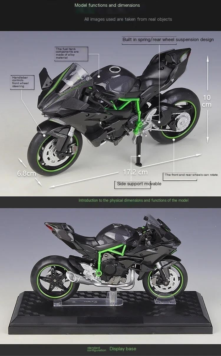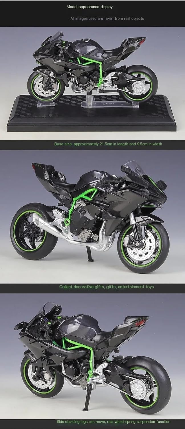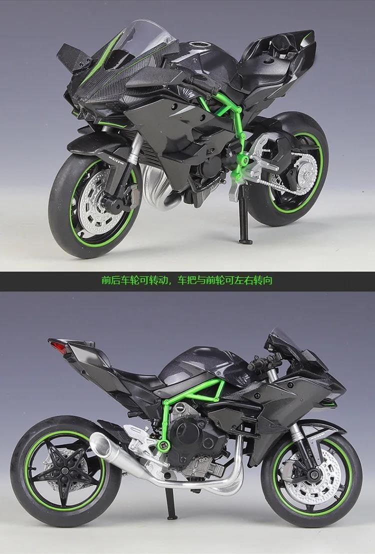 Modellini di moto giocattolo in scala 1:12, parti squisite progettate secondo le proporzioni originali dell'auto, il cruscotto, i pedali del freno e dell'acceleratore sono progettati per essere realistici e precisi. la modalità di simulazione della motocicletta è piena di personalità, così bella. Il modello è durevole e duraturo. La costruzione robusta consente di esporlo con orgoglio anno dopo anno senza rompersi. Modello di motocicletta per per Ninja H2 R H2R Realizzato in resistente lega di zinco, è resistente alle cadute e all'usura, garantendo la durevolezza del modello e la sua lunga conservazione. La finitura della vernice è uniformemente liscia, con colori vivaci e duraturi che resistono allo sbiadimento e alle scheggiature, garantendo un aspetto costantemente brillante.
