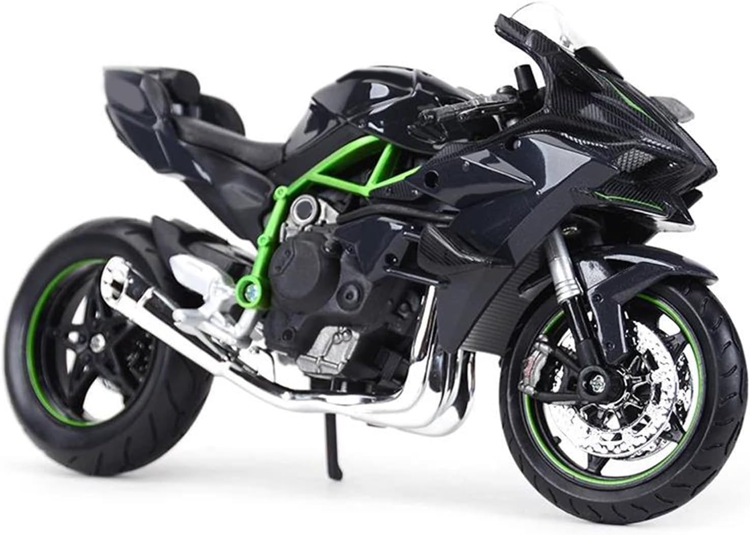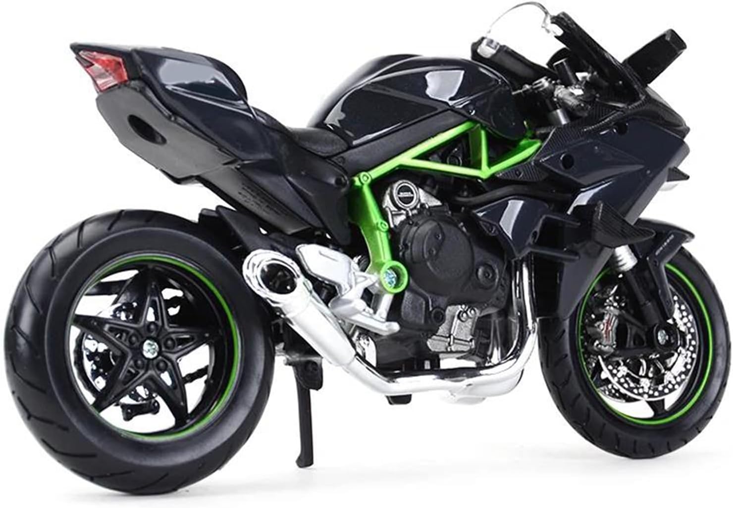 Modello di moto per per Ninja H2 R Modelli di moto giocattolo in scala 1:12, ruota anteriore e manubrio possono oscillare da un lato all'altro, cavalletto mobile, ruote libere, sospensione posteriore a molla Parti squisite progettate secondo le proporzioni originali dell'auto, cruscotto, pedali del freno e dell'acceleratore sono progettati per essere realistici e precisi. Stile vivido, pieno di personalità. Realizzato in resistente lega di zinco, è resistente alle cadute e all'usura, garantendo la durevolezza del modello e la sua lunga conservazione. La finitura della vernice è uniformemente liscia, con colori vivaci e duraturi che resistono allo sbiadimento e alle scheggiature, garantendo un aspetto costantemente brillante.