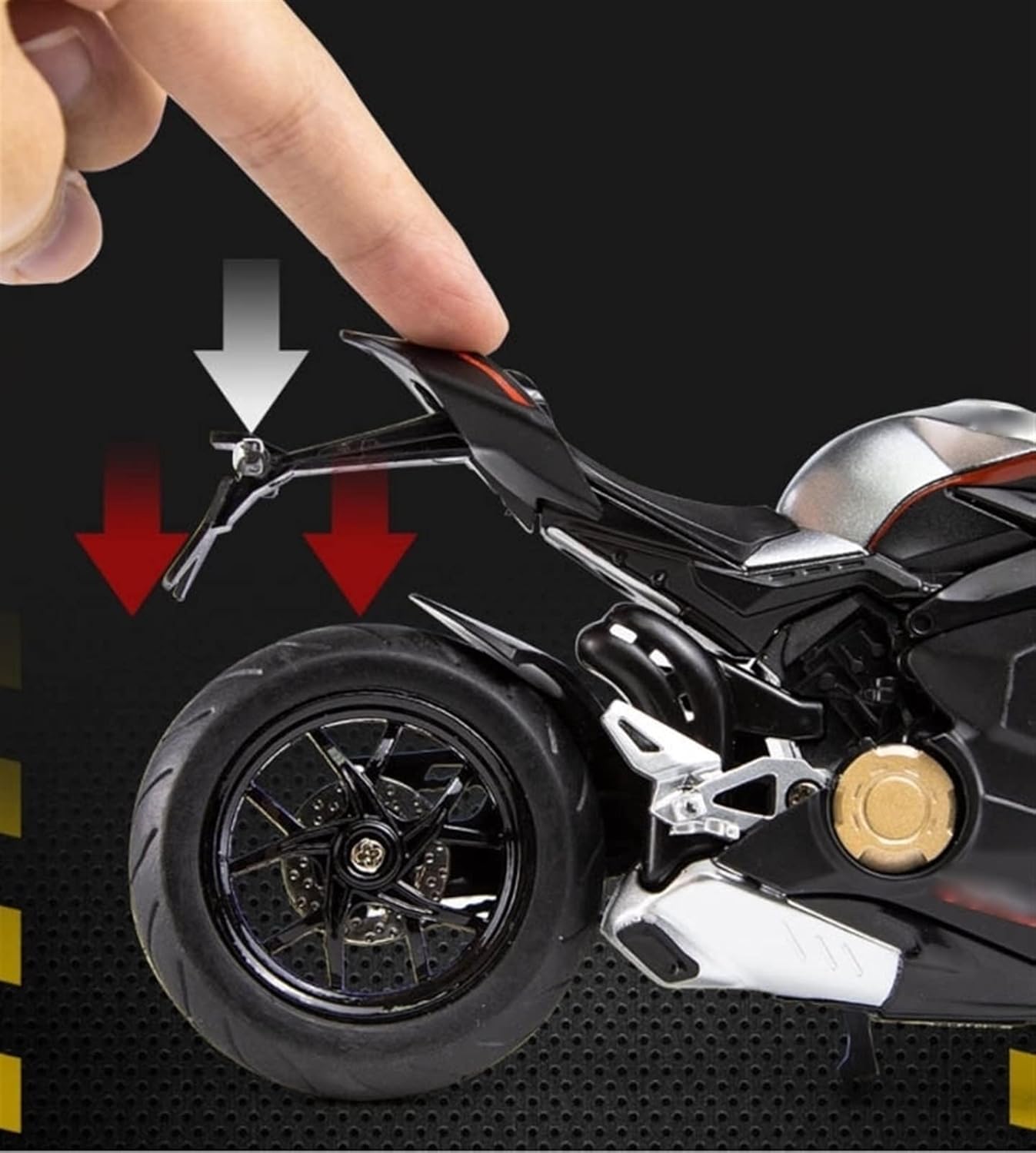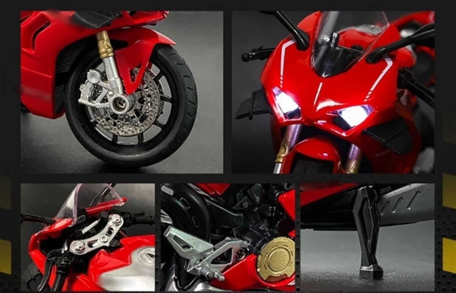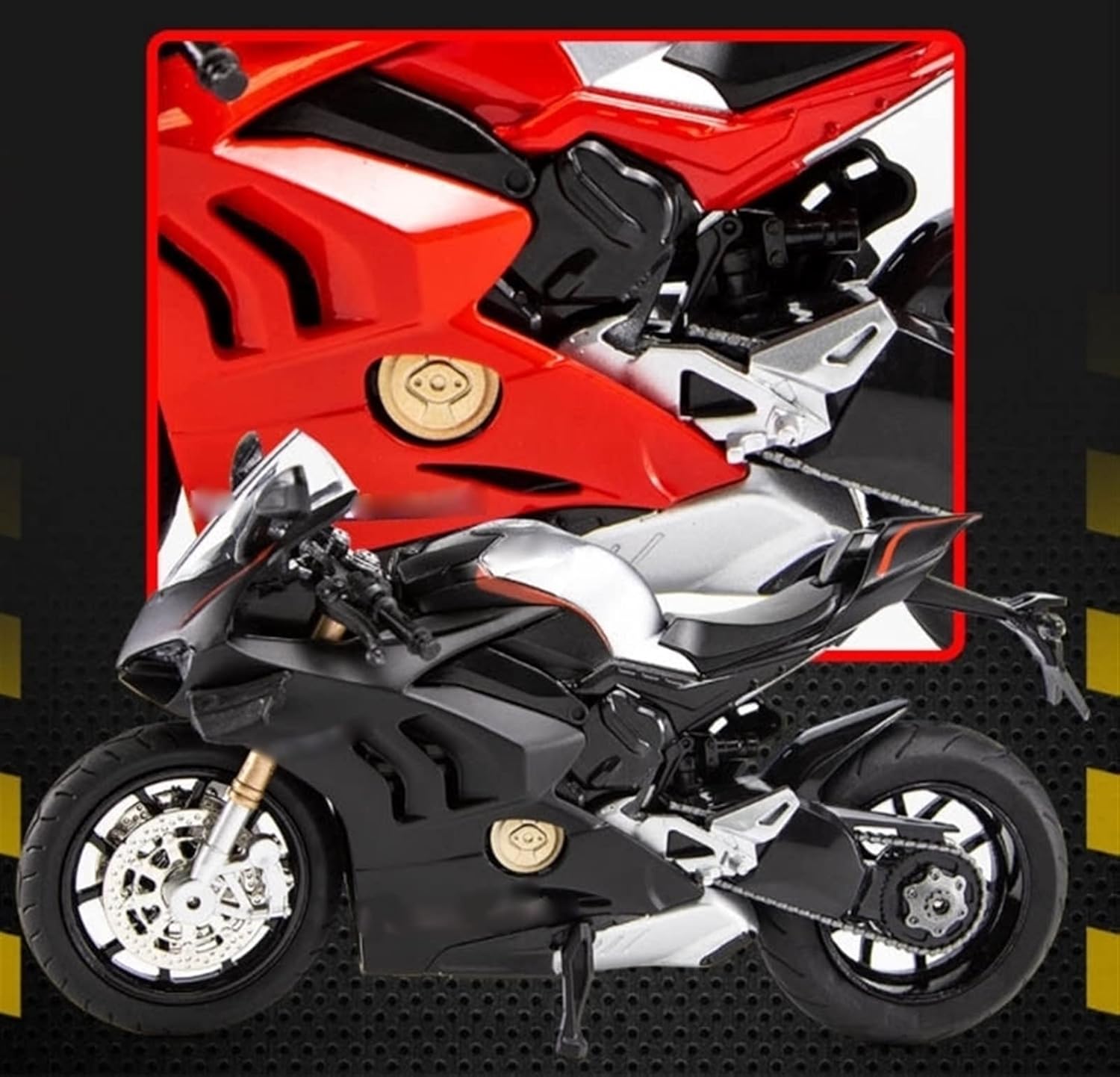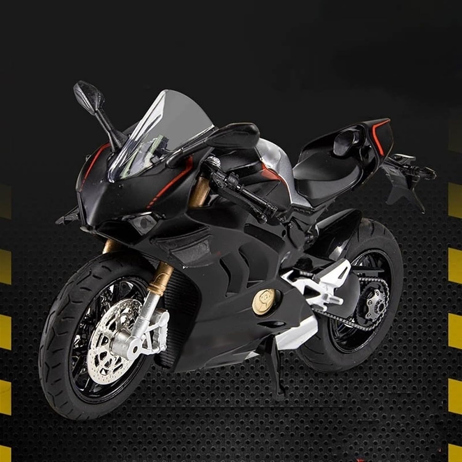 Può essere utilizzato come elemento decorativo o per creare un'atmosfera motociclistica realistica. 1:12 Per V4S pressofusione Modello di Moto Suono E Lega Leggera Locomotiva Giocattolo Da Corsa Collezione Decorazione Regali Per V4S Scala: 1:12 Dimensioni: circa 21,5 * 10,5 * 13,5 cm Ruote flessibili e la ruota posteriore ha una funzione di ammortizzatore a molla I fari possono essere accesi Premi la parte posteriore dell'auto per attivare il suono e la luce I componenti del serbatoio del carburante sono realizzati in lega di zinco-alluminio Design integrato della sospensione della ruota posteriore/della molla Il manubrio controlla lo sterzo delle ruote anteriori La parte motore ripristina fortemente le caratteristiche strutturali dell'auto reale Le ruote anteriori e posteriori dei pneumatici in gomma possono ruotare La struttura robusta è resistente alle cadute e durevole, consentendo un'esperienza di guida divertente.
