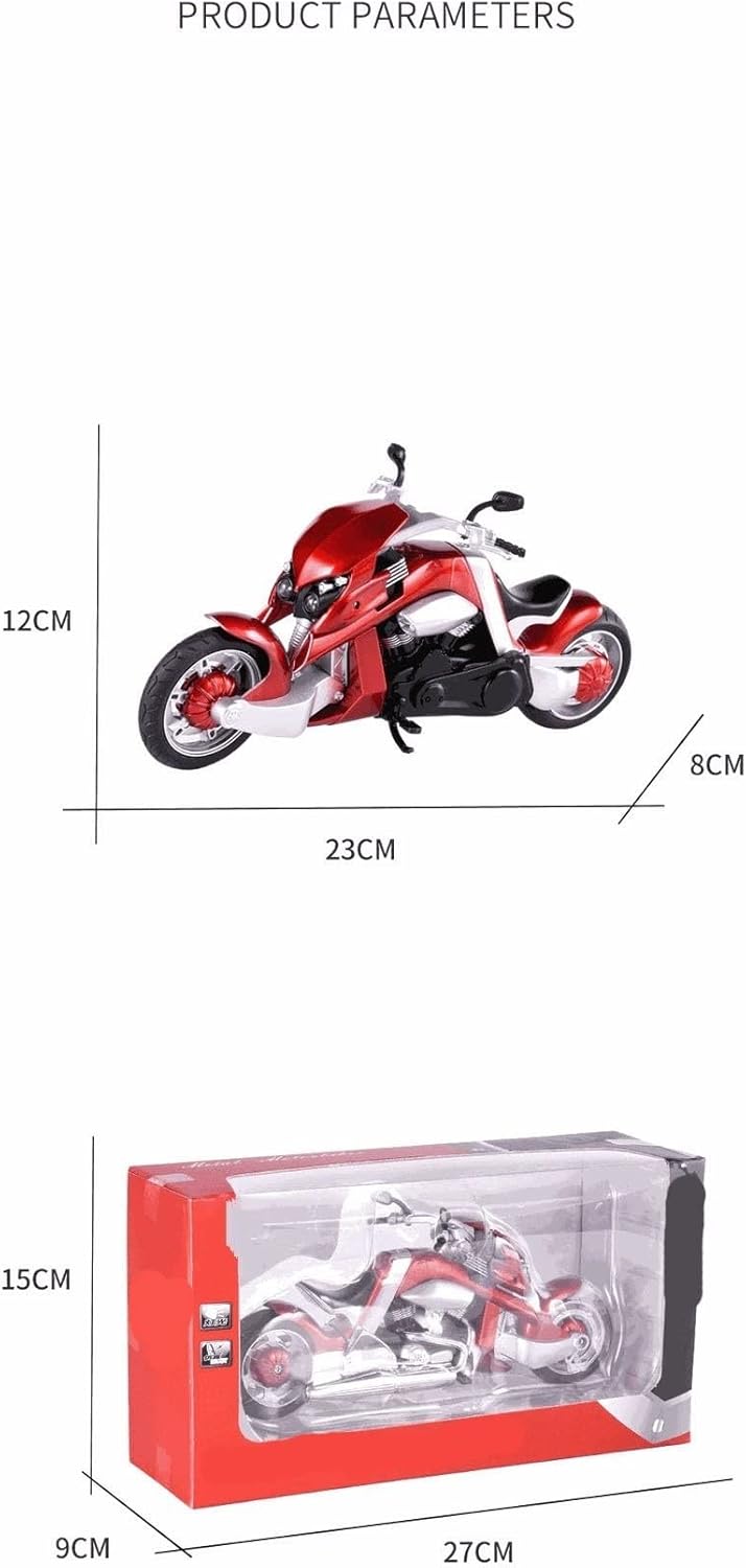 Il modello simula il funzionamento di un veicolo reale, aumentando il divertimento del gioco. 1:12 Per Vrex Modello di Moto Suono E In Lega Leggera Locomotiva Giocattolo Per Bambini Auto Ragazzo Regalo Collezione Ornamenti Per Vrex Proporzione: 1:12 Dimensioni: L23 cm * L12 cm * H8 cm Materiali: lega Colore: nero, rosso La confezione include: 1 modello di moto in lega Caratteristica: luce accesa, suono. Usa: mostre di artigianato, collezioni, regali per bambini, ecc. I componenti del serbatoio del carburante sono realizzati in lega di zinco-alluminio Design integrato della sospensione della ruota posteriore/della molla Il manubrio controlla lo sterzo delle ruote anteriori La parte motore ripristina fortemente le caratteristiche strutturali dell'auto reale Le ruote anteriori e posteriori dei pneumatici in gomma possono ruotare Le dimensioni compatte e leggere del modello lo rendono facile da trasportare senza ingombro.