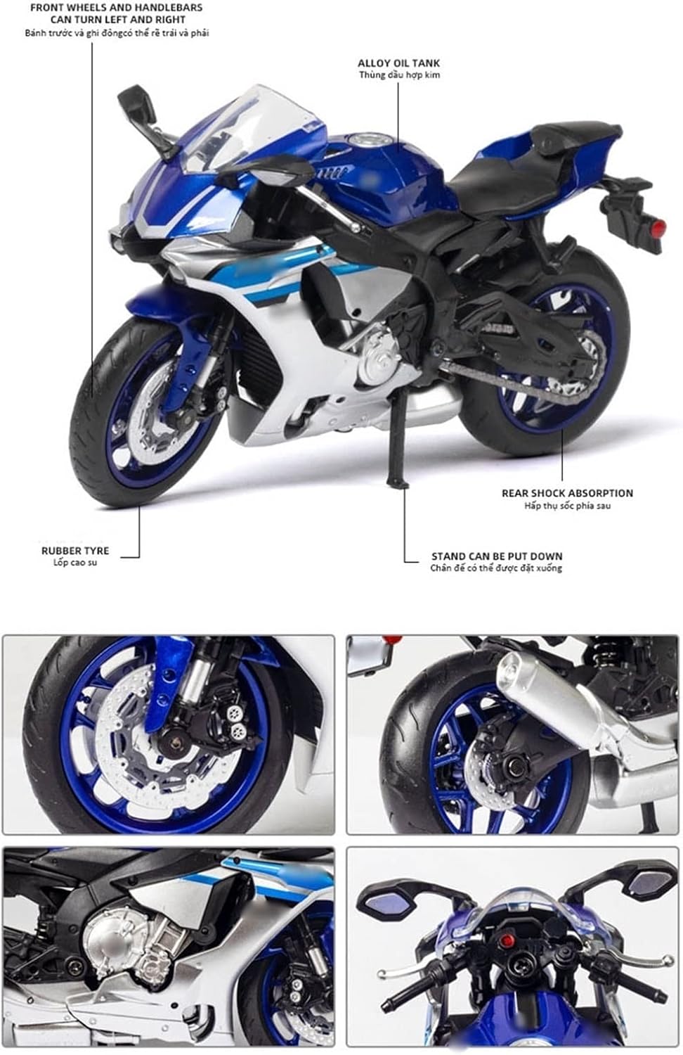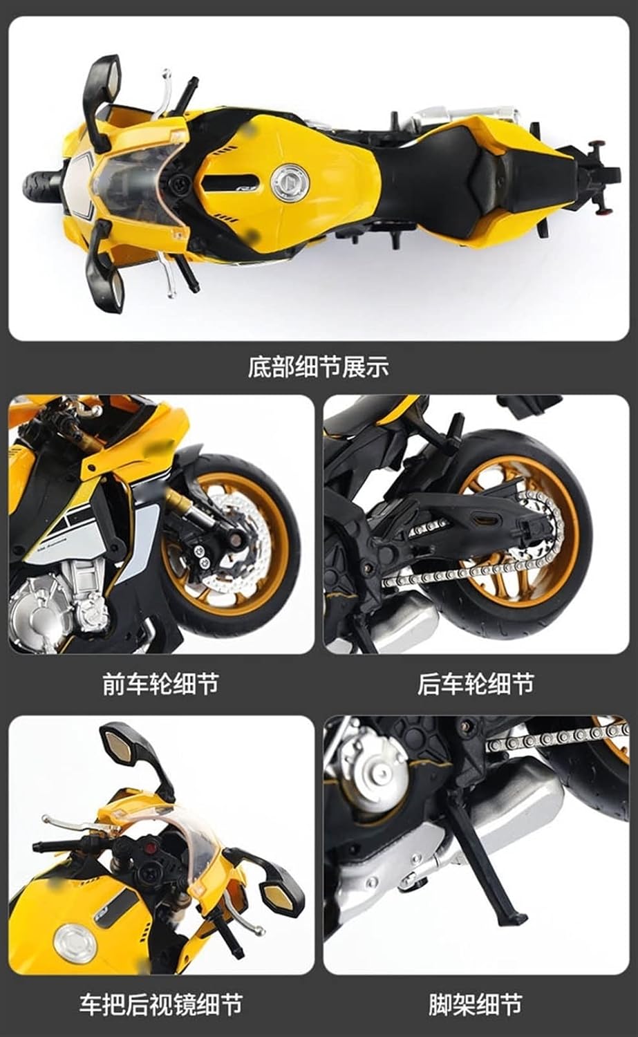 La finitura liscia e senza sbavature e la vernice lucida e uniforme dimostrano una maestria artigianale eccezionale. Questo modello incarna lo stile di una motocicletta, soddisfacendo l'amore degli appassionati per i modelli nostalgici.