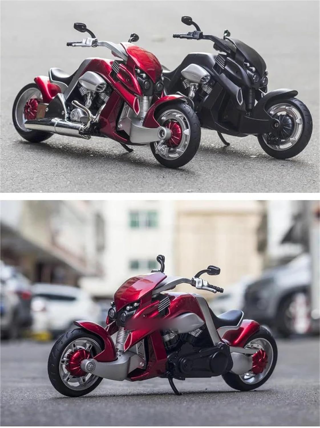 Modello di motocicletta per Travertson V-REX Modello di auto giocattolo in scala 1:12, con suono e luce, sospensione della ruota posteriore, il treppiede può essere posizionato, corpo in lega, resistente e durevole Il modello di motocicletta è un modello squisito realizzato in stretta conformità con la forma, la struttura, il colore, gli interni e altre proporzioni del veicolo originale. È un modello in miniatura del veicolo originale ed è progettato per riprodurre l'aspetto del veicolo originale. Modello di auto di simulazione La finitura liscia e senza sbavature e la vernice lucida e uniforme dimostrano una maestria artigianale eccezionale. Questo modello incarna lo stile di una motocicletta, soddisfacendo l'amore degli appassionati per i modelli nostalgici.