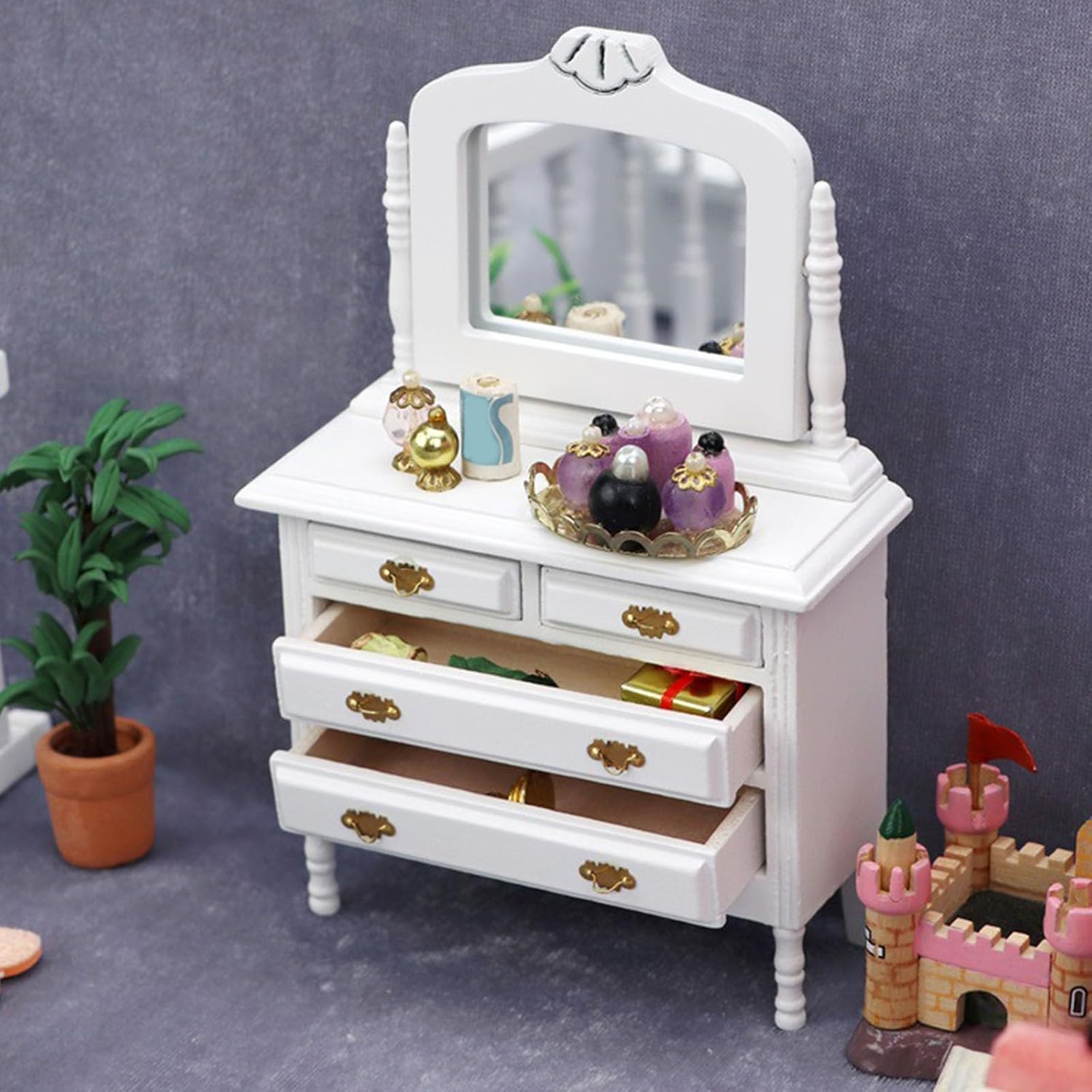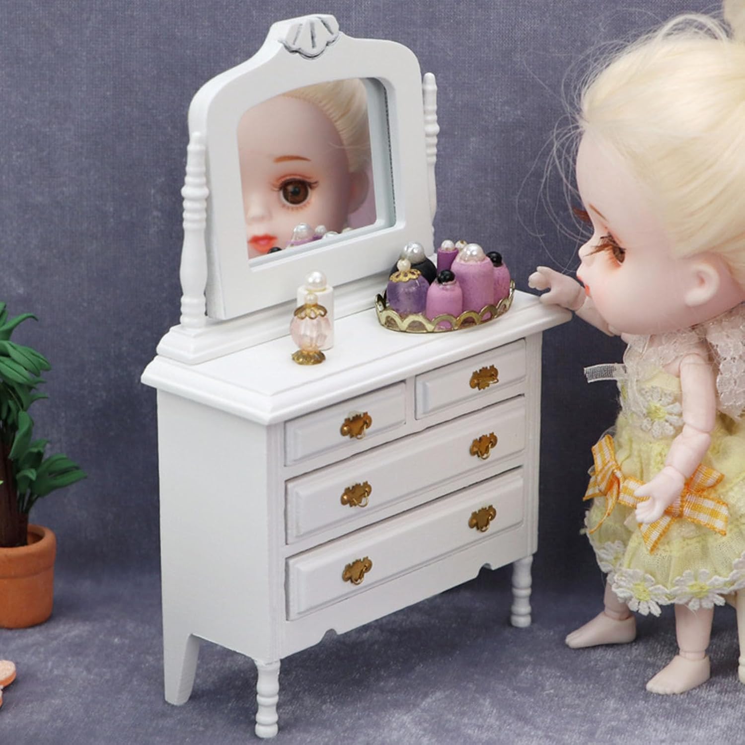Il piccolo comò delle case delle bambole è adatto per case delle bambole in scala 1:12 È molto bello per gli amanti del modello che amano i decoratori fai da te e case delle bambole Gli accessori per case delle bambole in miniatura dall'aspetto realistico, aggiungono facilmente più fascino e divertimento alle tue case delle bambole Realizzato con materiali in legno, questo comò è visivamente accattivante L'eccellente modello di aspetto è molto vicino alla realtà. Ottimi oggetti di scena fotografici