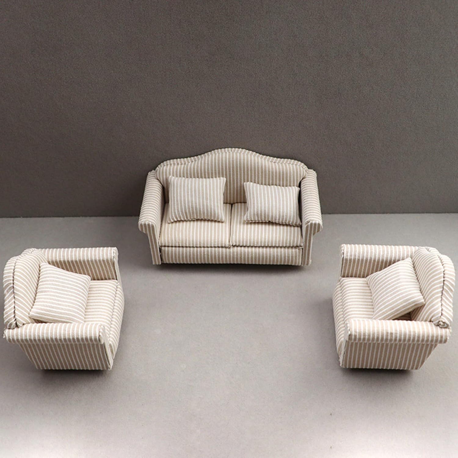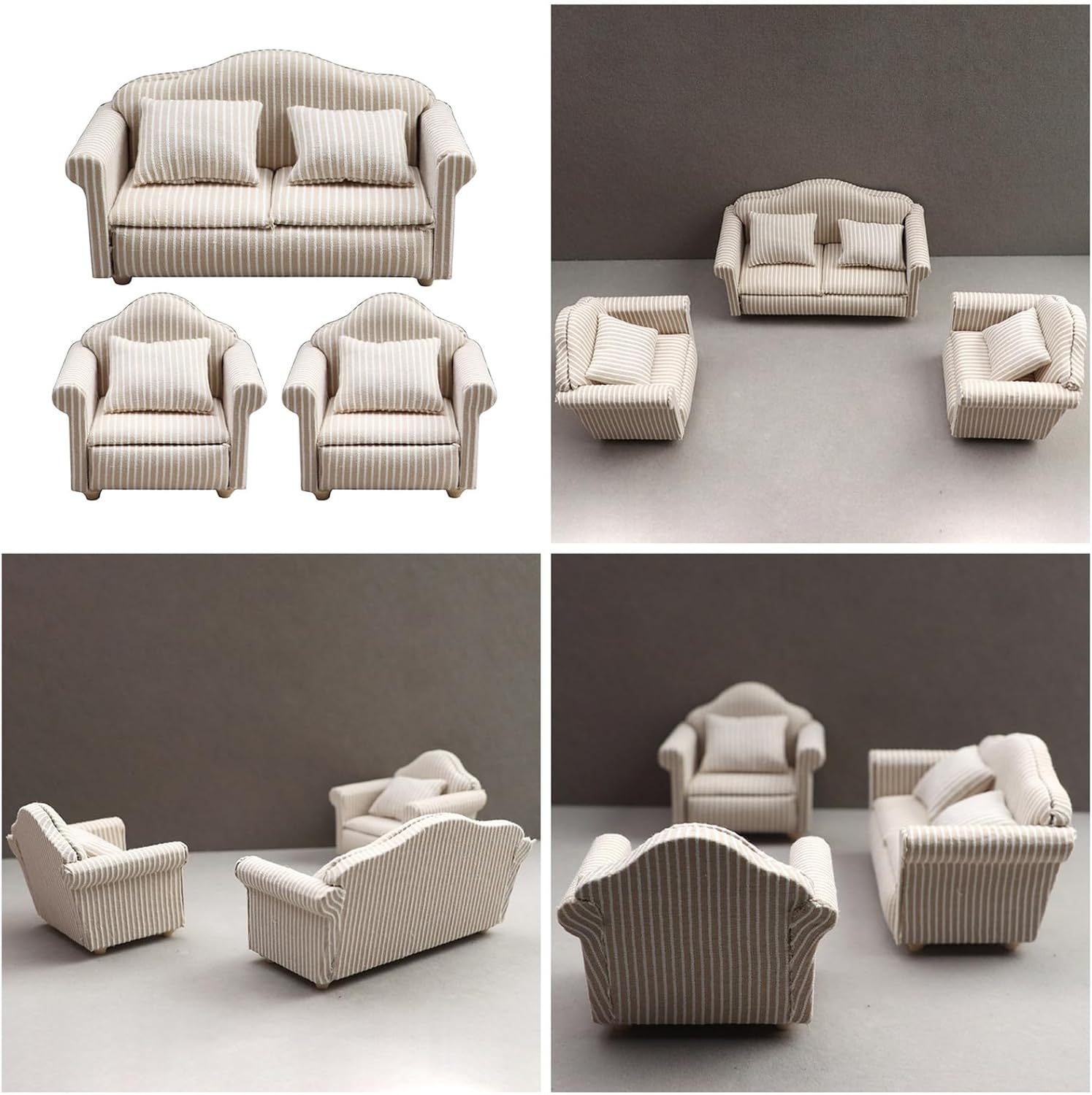 Aggiungi uno strato di raffinatezza al mondo in miniatura; questo set di divani da 3 pezzi non è solo un accesso per la narrazione, ma serve anche come decorazione artistica per gli appassionati di età Migliora la tua casa delle bambole con un set di divani in miniatura, di stili che portano a qualsiasi collezione in miniatura Con meticolosa attenzione ai dettagli, il set presenta una struttura morbida, in tessuto e legno, che rispecchia l'intricato dettaglio di mobili di dimensioni standard Questo set di divani in scala 1 12 per vari ambienti all'interno di una casa delle bambole, dal soggiorno alle eleganti camere da letto o alla sofisticata scena dell'ufficio per i bambini che fantasiosi Giocare con case delle bambole e collezionisti adulti per migliorare le loro esposizioni in miniatura con artigianato