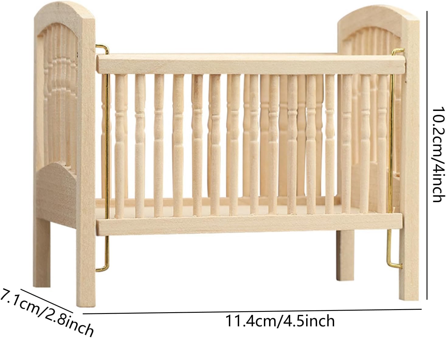 Utilizza legno selezionato, questo presepe in miniatura 1/12 presenta bave liberamente costruzione e design realistico, per migliorare i realismi delle case delle bambole con mobili sicuri per case delle bambole. La culla in legno non verniciato consente la personalizzazione artigianale mantenendo la stabilità strutturale per l'integrazione senza soluzione di continuità degli accessori per case delle bambole. Ideale per bambini dai 6 anni in su che amano il gioco di ruolo creativo, incoraggia la narrazione fantasiosa nel gioco delle case delle bambole e nell'ambientazione di scene in miniatura. Migliora la camera da letto delle case delle bambole, i vivai o l'artigianato con questa miniatura, adatta per case delle bambole in scala 1/12 e progetti artigianali. Grande aggiunta alle collezioni in miniatura, questa culla lucidata a mano elevando case delle bambole realistica mentre serve come un pezzo decorativo unico per gli hobbisti.