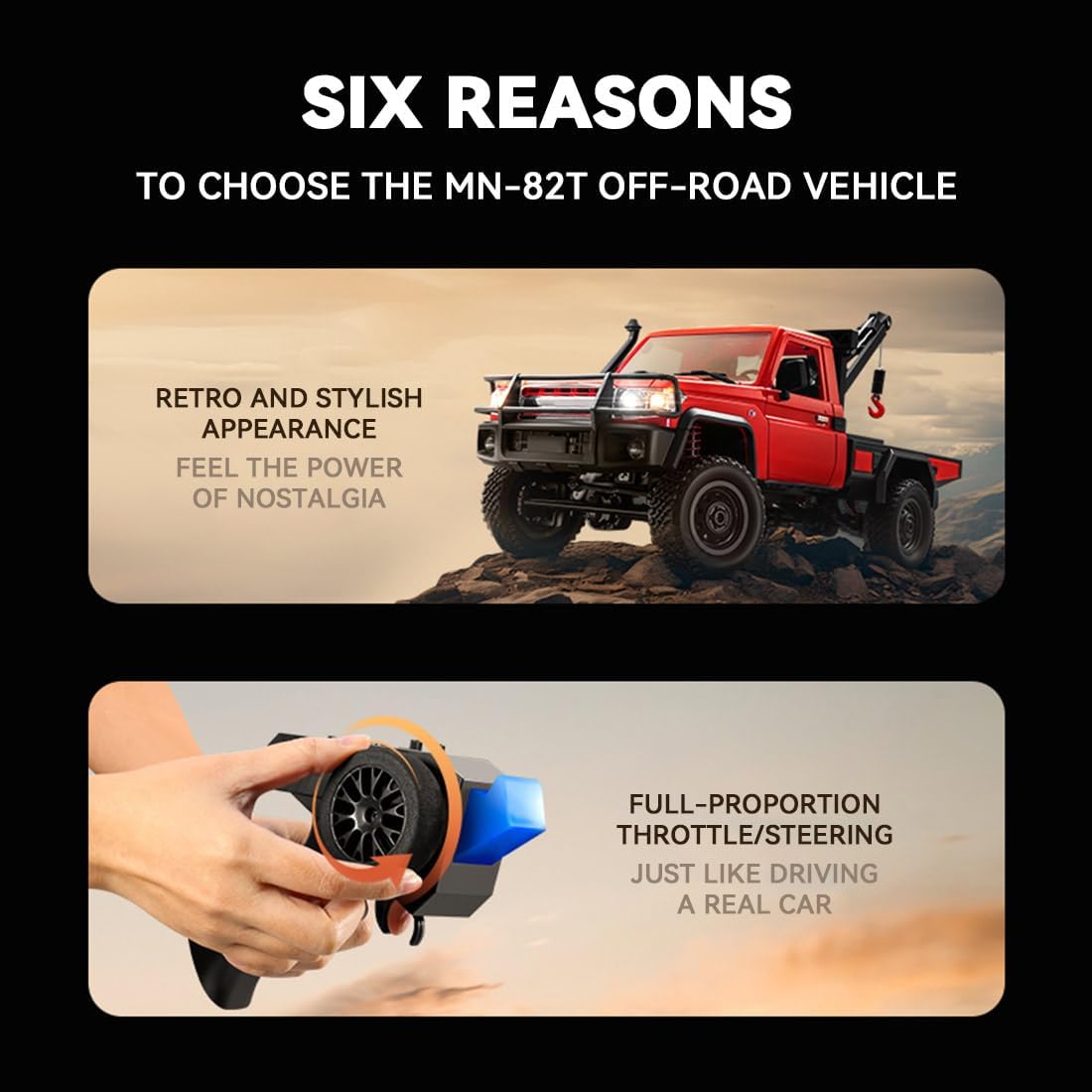 Controllo preciso con telecomando a due stadi completamente proporzionale: perfetto per crawler RC e camion giocattoli: facile regolazione della velocità di guida con controllo preciso e reattivo – ideale per terreni impegnativi o manovre precise. Sistema di illuminazione realistico: vivi la vera atmosfera del veicolo con fari anteriori, indicatori di direzione e luci di retromarcia, un punto forte per qualsiasi modello di gru giocattolo o giocattolo. Sistema di sollevamento funzionale: la gru giocattolo perfetta con corda sollevabile, braccio estensibile e gancio controllabile, per lavori di sollevamento e trasporto realistici come per i modelli di grandi dimensioni. Robusta costruzione all-terra: sia come giocattolo RC Crawler o camion pesante: la costruzione antiurto e gli pneumatici antiscivolo rendono ogni terreno un'avventura. Design orientato alla sicurezza: grazie all'illuminazione sincronizzata, alla costruzione a prova di caduta e ai bordi arrotondati, giocare con questa gru giocattolo o RC Crawler è sicuro e spensierato.