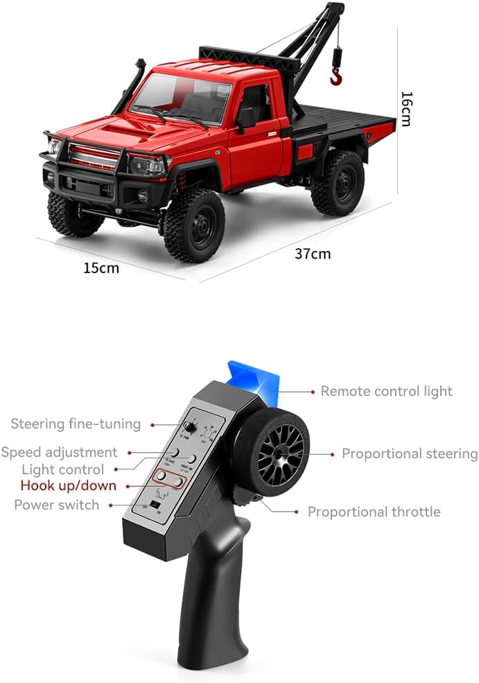1:12 Scala RC Crawler Car – 2,4 G completamente proporzionale 4 WD RC Auto con gru funzionante, gancio sollevabile, 2 marce, regalo per appassionati di tecnologia (RTR)