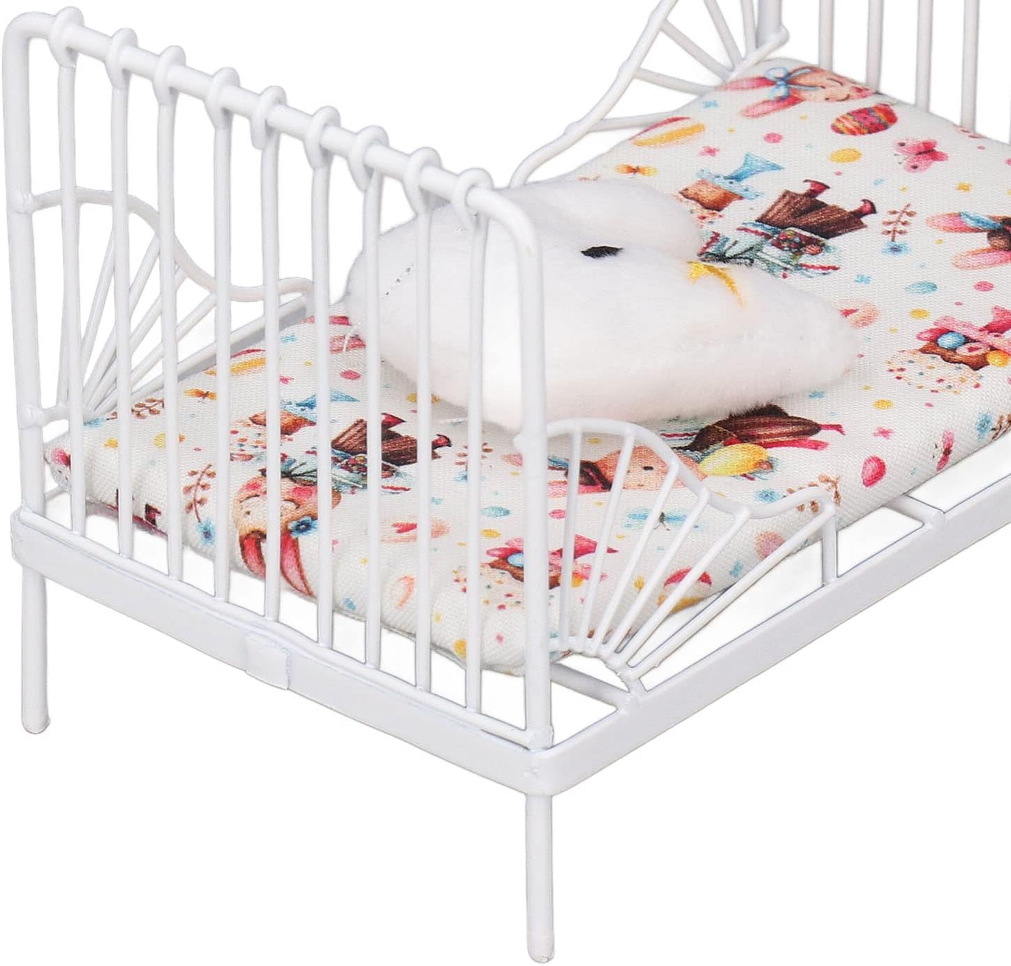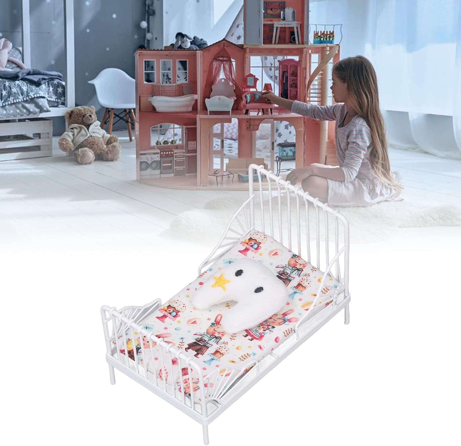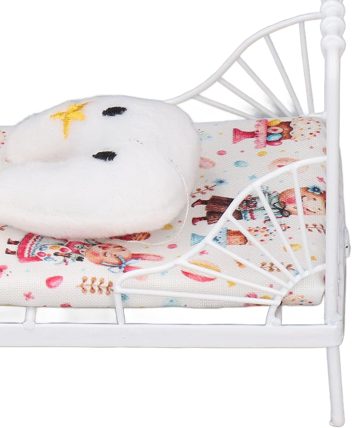 Adatto al gioco di ruolo: questo set da letto per bambole 1:12 in scala migliora il gioco immaginativo, rendendo bello sia gli scenari di gioco di ruolo che per il gioco di ruolo. Frame di metallo premium: realizzato in metallo robusto, questo telaio del letto garantisce la longevità e la sicurezza, la libertà da sostanze chimiche dannose, fornendo tranquillità a genitori e bambini. Attenzione ai dettagli: progettato meticolosamente su una scala 1:12, questo letto in miniatura mette in mostra un'eccezionale artigianato, rendendolo una squisita aggiunta a qualsiasi arredamento delle bambole. Esteticamente gradevole: con il suo design affascinante e le caratteristiche attraenti, questo mini mobile per camere da letto funge da elemento decorativo essenziale per il salotto delle bambole. Carino e accogliente: i deliziosi motivi sui fogli e sul materasso aggiungono un tocco di calore e stile, adattandosi perfettamente a vari temi della casa delle bambole e migliorando l'estetica generale.