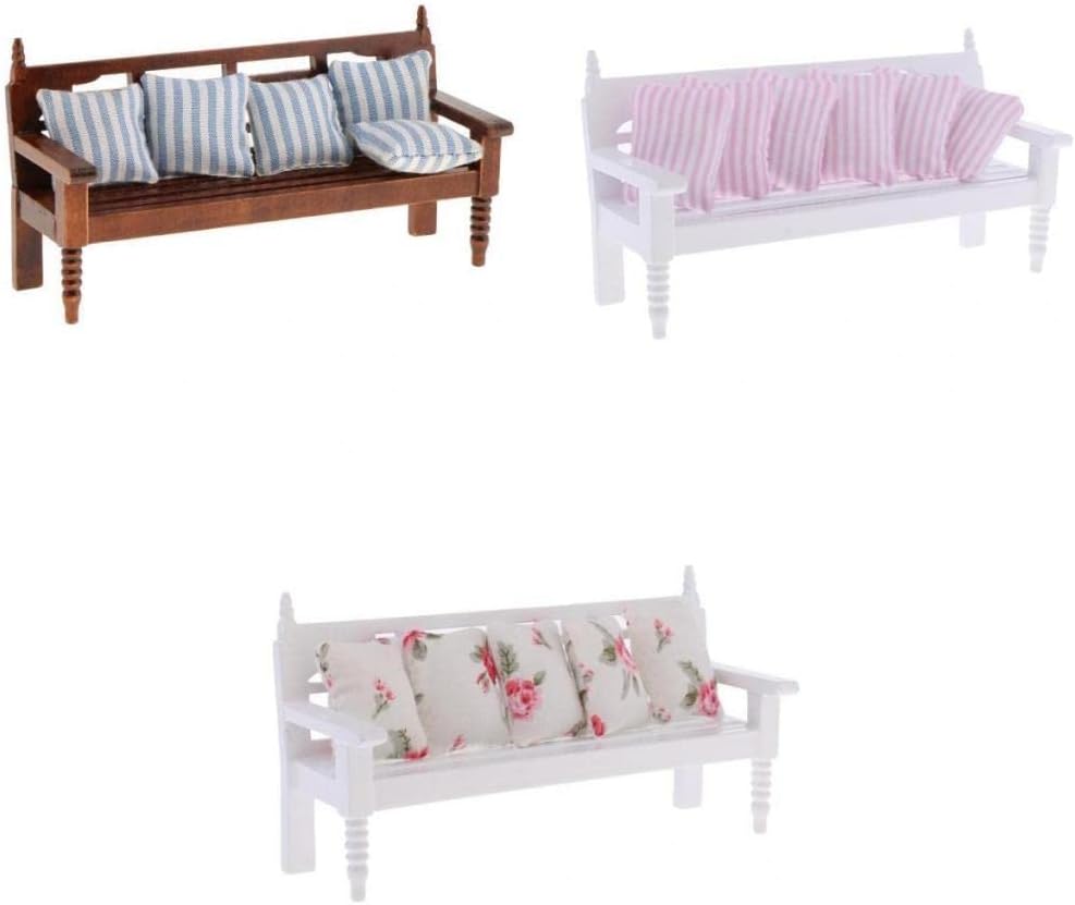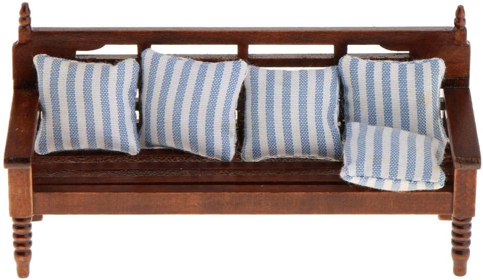 Ben progettato e realizzato, elegante e alla moda Ideale per decorare la casa delle bambole Adatto per casa delle bambole 1/12 Set di mobili da salotto in miniatura per casa delle bambole con 5 cuscini Materiale: legno