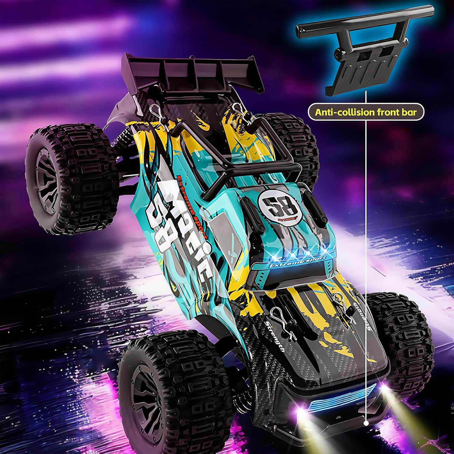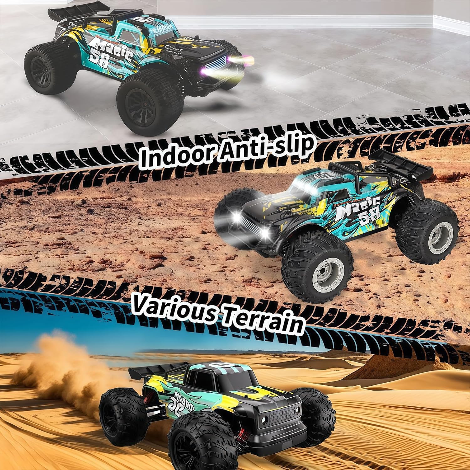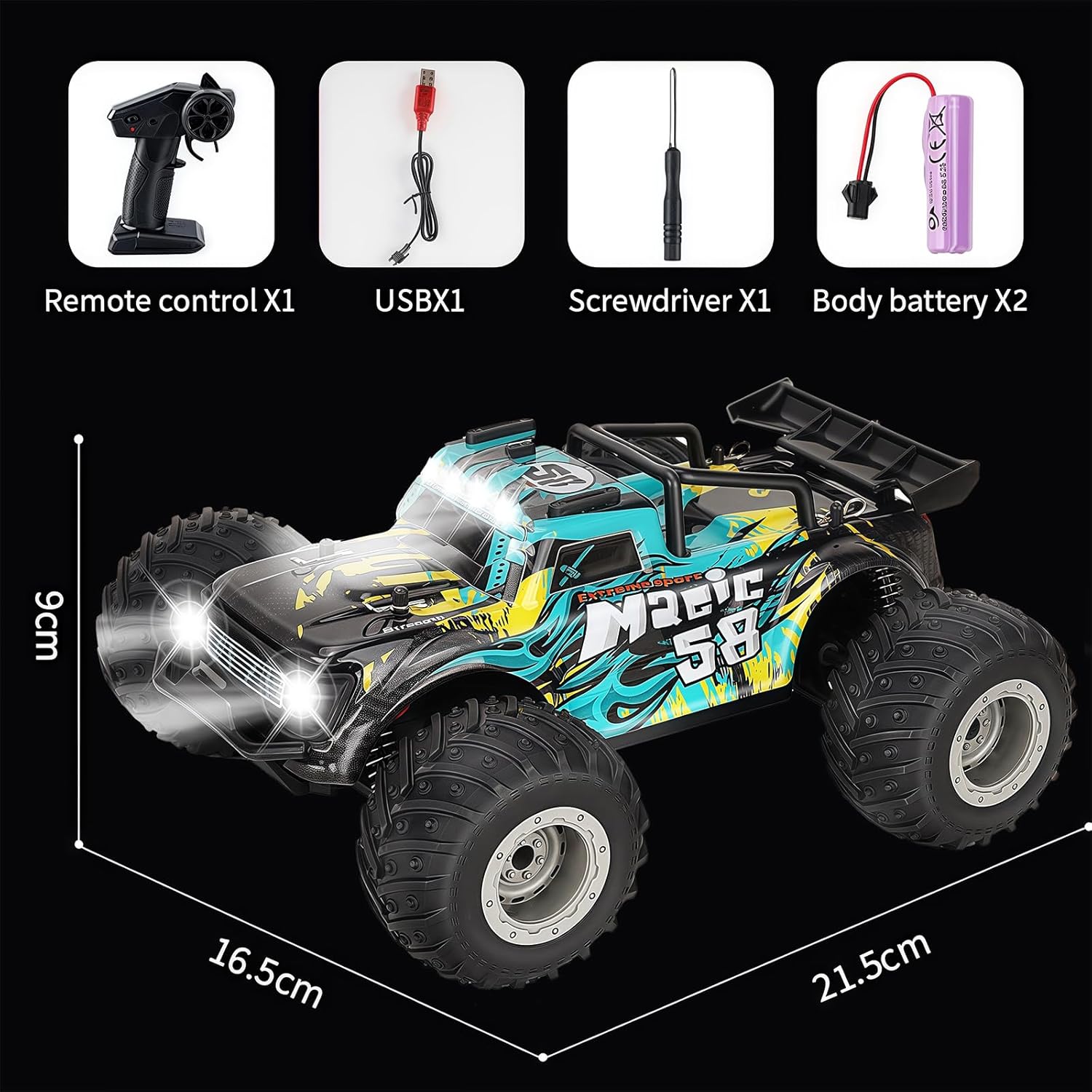 Ammortizzatori in Alluminio Riempiti d'Olio: Migliore riduzione della resistenza al vento nelle gare fuoristrada, nonché deportanza dell'alettone posteriore durante l'accelerazione rapida, la sospensione posteriore può supportare meglio il veicolo per mantenere l'equilibrio.Allo stesso tempo, quando si salta fuoristrada, l'ammortizzatore posteriore assicura che il telaio non tocchi il terreno. Ideale per la guida su sabbia, erba e superfici in cemento e ghiaia Trasmissione Durevole ed Efficiente: Ingranaggi in metallo e differenziali in metallo distribuiscono meglio la potenza per ottenere una perfetta trazione integrale, di cui l'albero da 5,5 mm di diametro e il dado M4 contribuiscono notevolmente.L'effetto levigante di 16 cuscinetti a sfera riduce la perdita di potenza, rendendo la potenza di questa vettura fluida Motore 4200kV: Questa macchina telecomandata per bambini auto macchina telecomandate RC Off Road Hobby senza spazzole è alimentata da un motore 4200KV ad alta coppia, progettato con dissipatore di calore in alluminio. Lapotenza super esplosiva è perfetta per grandi salti, impennate e acrobazie all'indietro Trasmettitore Radio da 2,4 GHz: Questa auto telecomandata veloce auto RC può essere controllata entro 400 piedi tramite sistema radio da 2,4 GHz e può competere con molte auto da corsa senza alcuna interferenza di segnale. Il suo controllo della gamma dell'acceleratore è adatto a diverse curve e piste. Questa auto RC adotta un servo digitale indipendente a 3 fili da 2,5 kg, che ha eccellenti prestazioni di sterzata Giocattoli da corsa Professionali: L'auto macchina telecomandata 4x4 da corsa fuoristrada Evmore ha un'aderenza elevata, una manovrabilità affidabile e un'eccellente durata, ed è reattiva in azione.La potente potenza brushless può essere trasmessa all'infinito ad alta velocità.