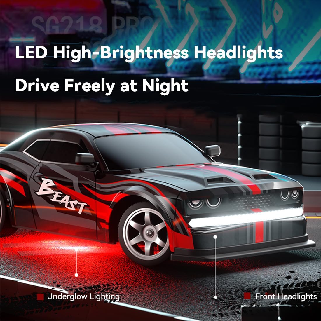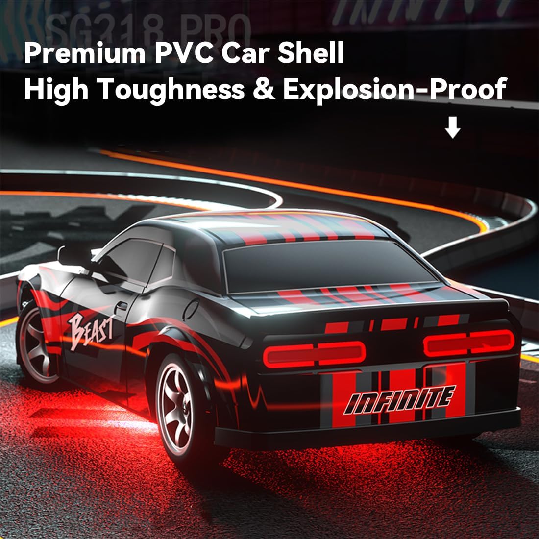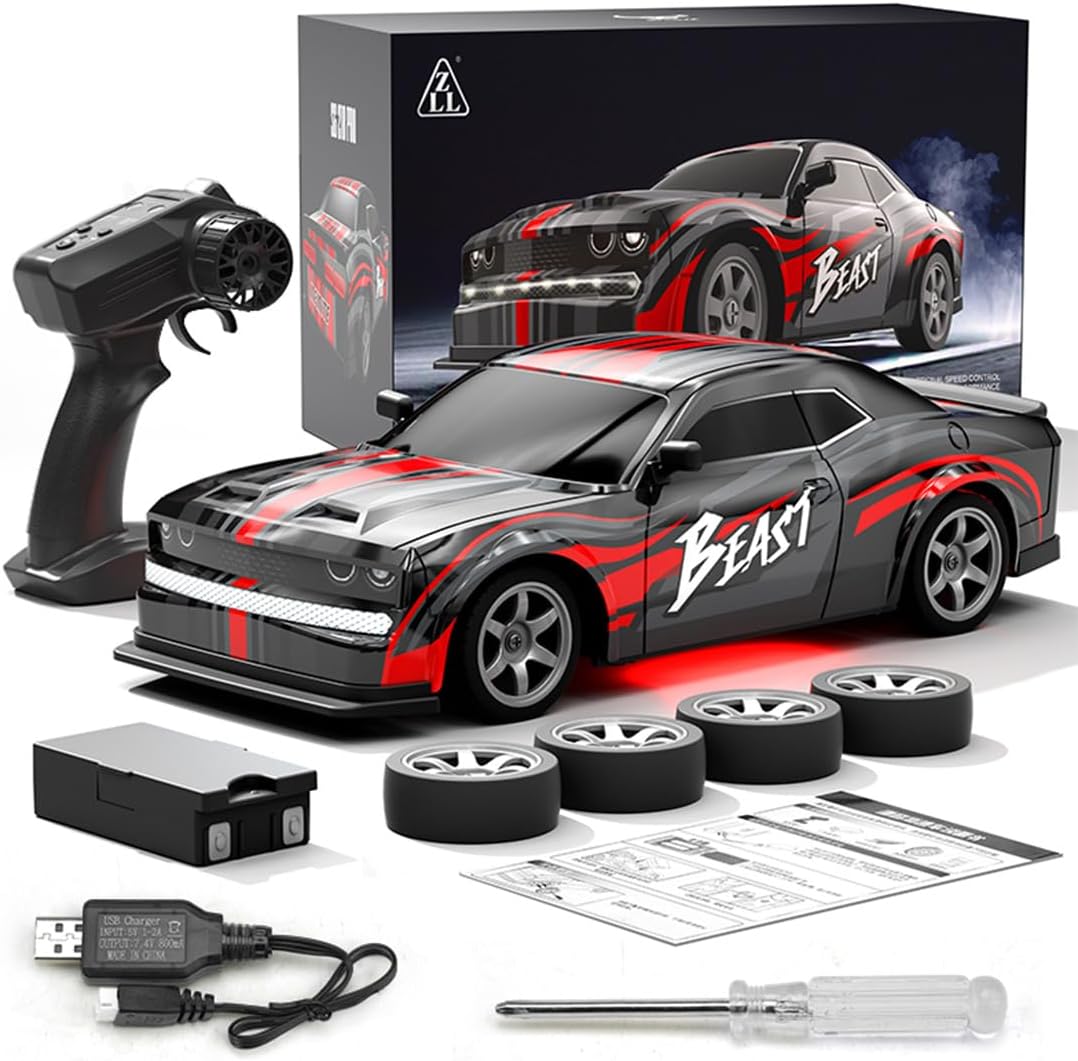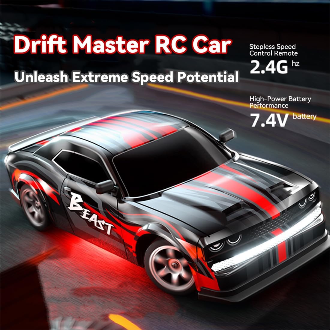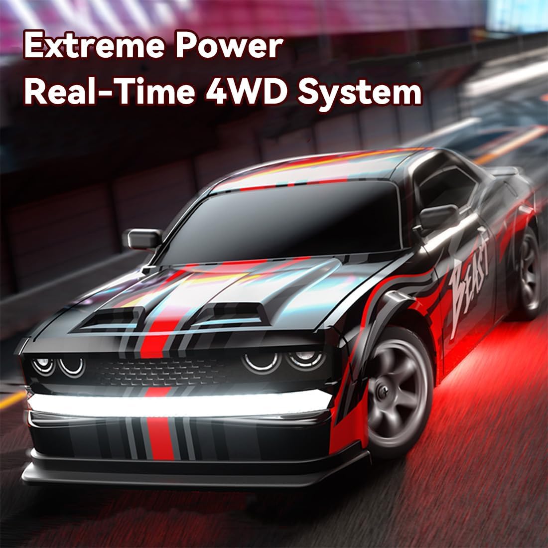 Auto RC 4WD multifunzionale: in grado di girare avanti, indietro, sinistra e destra con potente trasmissione a quattro ruote motrici. Dispone di batteria ricaricabile modulare, luci a LED sia sulla parte anteriore che posteriore e pneumatici facilmente intercambiabili per drifting o corsa Guscio durevole e resistente agli urti: costruito con materiale in PVC di alta qualità, resistente alle esplosioni, questa auto RC deriva è progettata per gestire gare difficili, urti e crash, mantenendo il suo aspetto elegante e realistico Opzioni a doppio pneumatico per una guida versatile: il set include due tipi di pneumatici: da corsa e drift. Gli pneumatici da corsa offrono aderenza e stabilità per la velocità in linea retta, mentre i pneumatici da deriva riducono l'attrito per curve strette e slitte controllate, dandoti flessibilità per adattarsi al tuo stile di guida Visibilità migliorata con luci a LED: viene fornito con luci LED anteriori e posteriori che forniscono un'eccellente visibilità, consentendo di godere di emozionanti corse notturne e drifting con maggiore realismo e stile Lungo tempo di gioco: questa auto da corsa RC è dotata di una batteria ricaricabile agli ioni di litio da 7,4 V conservata nel vano batteria montato sul fondo per una maggiore resistenza e potenza costante per un tempo di gioco prolungato