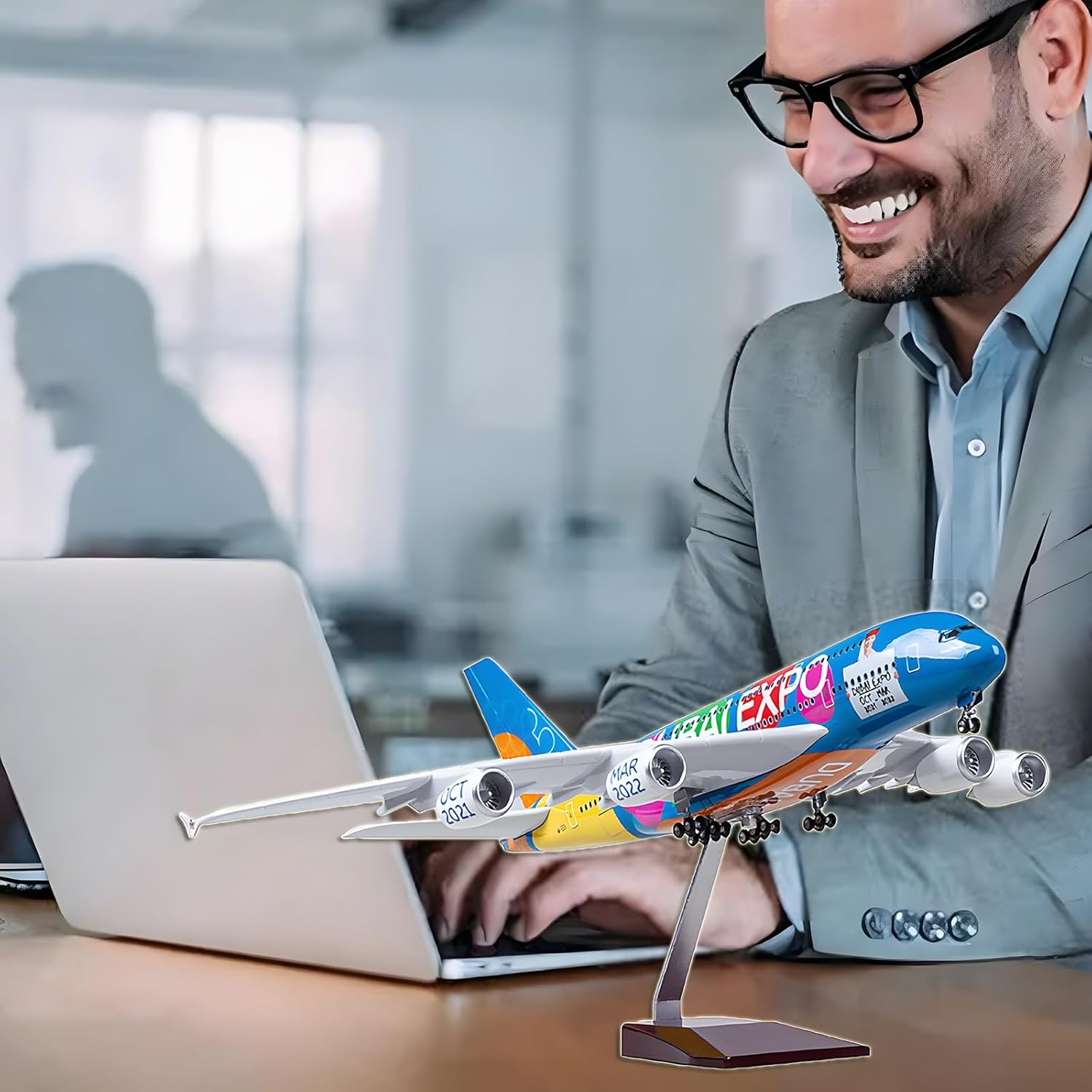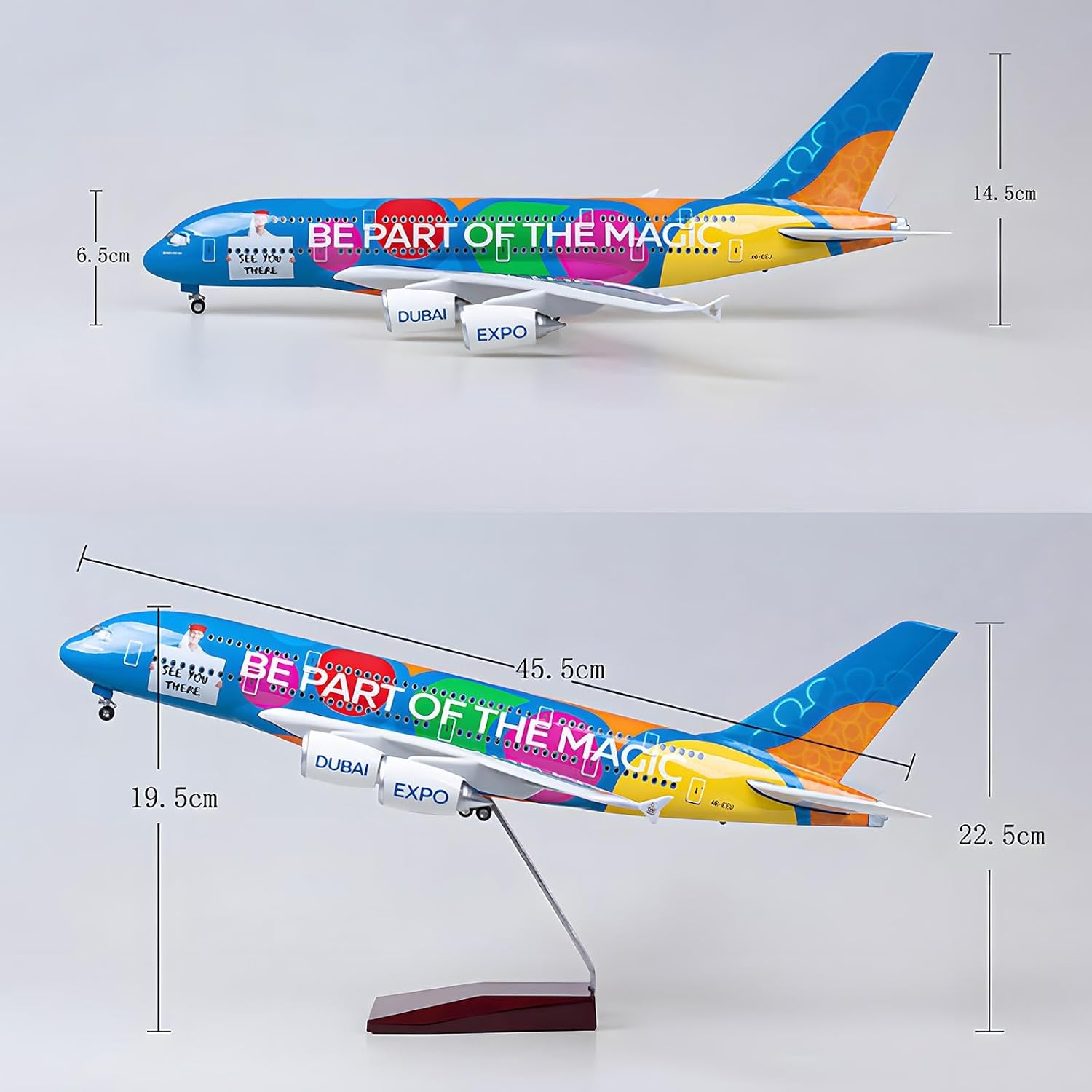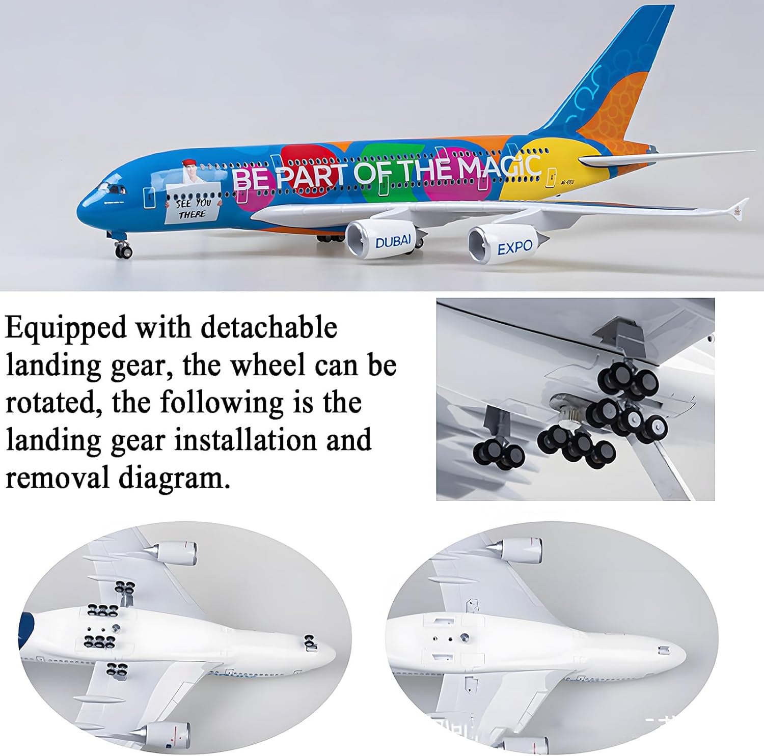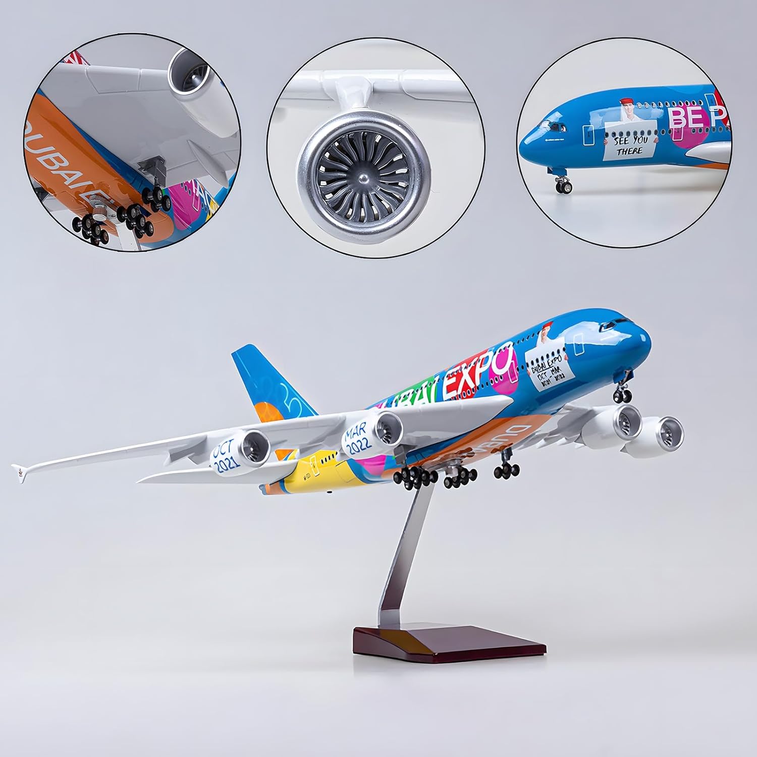 Modellino di aereo di alta qualità: ammirate gli straordinari dettagli del nostro modello di aereo civile A380, realizzato in scala 1:160, con una lunghezza di 47 cm e un peso di circa 1,5 kg. Questo modello presenta un aspetto simulativo perfetto, rendendolo un pezzo forte ideale for gli appassionati di aviazione. Materiali di alta qualità utilizzati: il nostro modello di aereo è caratterizzato da un corpo in resina di alta qualità, sostenuto da una solida base trapezoidale in legno e da una robusta staffa in metallo. La resina rinforzata ad alta densità garantisce stabilità, offrendo al contempo una finitura durevole che resiste alla prova del tempo. Facile da montare: goditi un montaggio senza problemi con il nostro modello di aereo A380. Può essere assemblato in soli tre semplici passaggi, con componenti ad alta precisione che esaltano la realtà visiva dell'aereo, permettendoti di apprezzarne le complessità. Caratteristiche interattive: questo modello di aereo è dotato di affascinanti luci che si illuminano al tocco o al suono. Le luci aggiungono un elemento accattivante, spegnendosi automaticamente dopo 20 secondi. Include anche una pratica ricarica USB. Design realistico for la decorazione: realizzato for rispecchiare le proporzioni di un vero aereo, questo modello è uno splendido elemento decorativo for il tuo ufficio, la tua casa o il tuo negozio. È un regalo eccellente for compleanni, feste o occasioni di lavoro, grazie ai dettagli intricati come i finestrini della cabina di pilotaggio in vetro cavo e il carrello di atterraggio rimovibile.