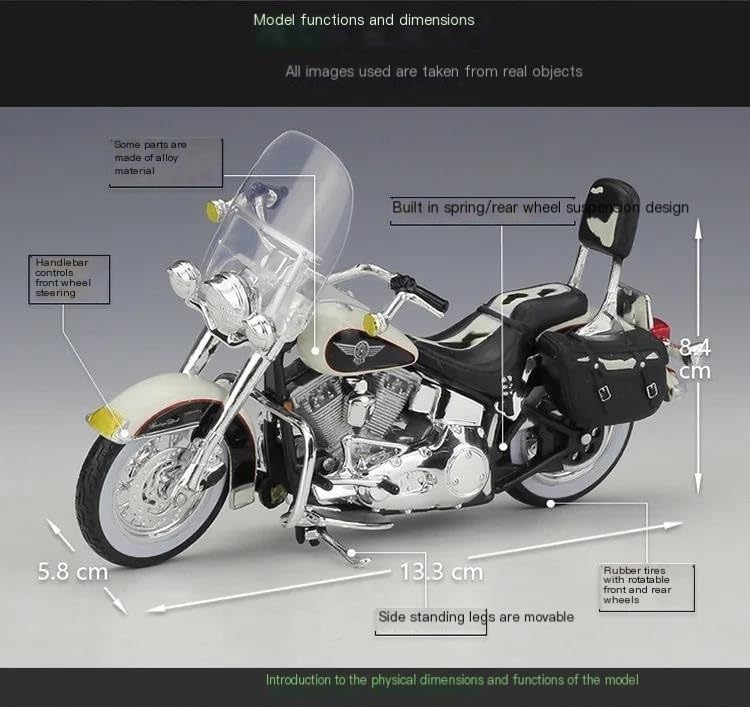 Modello di motocicletta per 2001 FXDWG Dyna Wide Glide Modelli di auto giocattolo per motociclette 1:18, le ruote anteriori e il manubrio possono oscillare da un lato all'altro. Portapacchi per attività, sospensioni posteriori a molla, ruota libera Modello di motocicletta di simulazione, con uno stile retrò classico, la modalità di simulazione della motocicletta è piena di personalità, così cool. Realizzato in resistente lega di zinco, è resistente alle cadute e all'usura, garantendo la durevolezza del modello e la sua lunga conservazione. La finitura della vernice è uniformemente liscia, con colori vivaci e duraturi che resistono allo sbiadimento e alle scheggiature, garantendo un aspetto costantemente brillante.