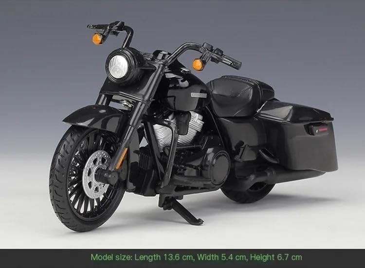 Modellini di moto giocattolo in scala 1:18, parti squisite progettate secondo le proporzioni originali dell'auto, cruscotto, pedali del freno e dell'acceleratore sono progettati per essere realistici e precisi. la modalità di simulazione della motocicletta è piena di personalità, così bella. Ottima per la collezione e l'arredamento dell'ufficio domestico. Modello di motocicletta per 2017 Road King Special Realizzato in resistente lega di zinco, è resistente alle cadute e all'usura, garantendo la durevolezza del modello e la sua lunga conservazione. La finitura della vernice è uniformemente liscia, con colori vivaci e duraturi che resistono allo sbiadimento e alle scheggiature, garantendo un aspetto costantemente brillante.