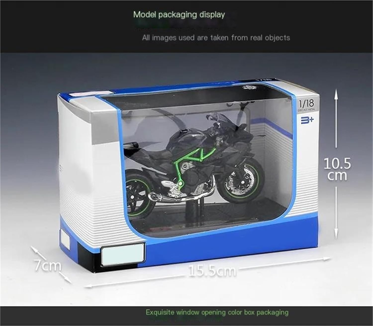 Modello di moto per H2 R H2R per Ninja Modelli di moto giocattolo in scala 1:18, le ruote anteriori e il manubrio possono oscillare da un lato all'altro. Porta-attività, sospensione posteriore a molla. Ruota libera Il modello di moto è un modello squisito realizzato in stretta conformità con la forma, la struttura, il colore, gli interni e altre proporzioni del veicolo originale. È un modello in miniatura del veicolo originale ed è progettato per riprodurre l'aspetto del veicolo originale. Realizzato in resistente lega di zinco, è resistente alle cadute e all'usura, garantendo la durevolezza del modello e la sua lunga conservazione. La finitura della vernice è uniformemente liscia, con colori vivaci e duraturi che resistono allo sbiadimento e alle scheggiature, garantendo un aspetto costantemente brillante.
