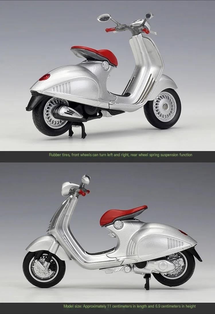 Modello di motocicletta per per 2014 946 Modelli di motociclette giocattolo in scala 1:18, parti squisite progettate secondo le proporzioni originali dell'auto, cruscotto, pedali del freno e dell'acceleratore sono progettati per essere realistici e precisi. Con il classico stile retrò, la modalità di simulazione della motocicletta è piena di personalità, così cool. Realizzato in resistente lega di zinco, è resistente alle cadute e all'usura, garantendo la durevolezza del modello e la sua lunga conservazione. La finitura della vernice è uniformemente liscia, con colori vivaci e duraturi che resistono allo sbiadimento e alle scheggiature, garantendo un aspetto costantemente brillante.