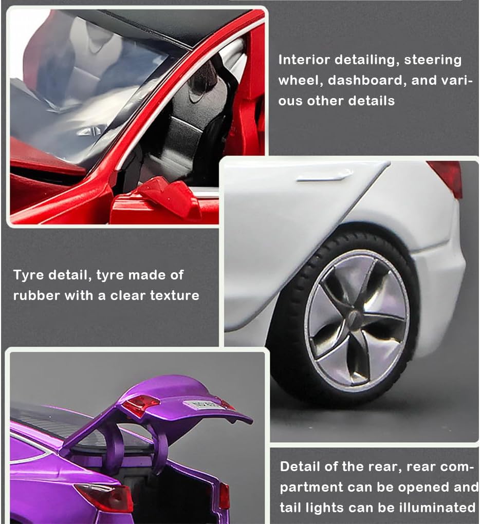Materiale: il corpo è realizzato in lega di zinco, durevole e resistente all'usura Funzione di ritorno: il desktop quadrato può essere trascinato indietro e quindi rilasciato per andare avanti Pneumatici: i pneumatici sono realizzati in gomma con trame chiare Posteriore: Il vano posteriore può essere aperto e le luci posteriori possono essere accese Altro: fari morbidi per auto, effetti sonori simulati e attivazione di effetti sonori e luminosi premendo la carrozzeria dell'auto