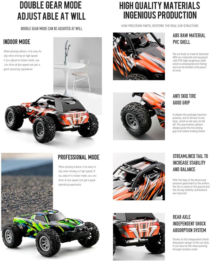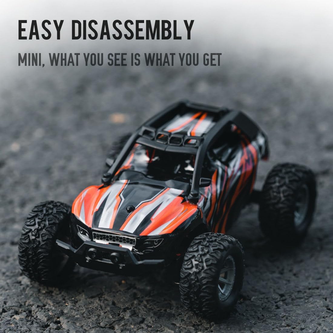 Design RTR compatto: misura solo 11 × 8,6 × 5,9 cm, questa auto da deriva fuoristrada di dimensioni palme viene fornita completamente assemblata (RTR) con una batteria al litio ricaricabile e un caricabatterie USB, pronta per un divertimento di guida istantaneo. Sistema 4WD ad alte prestazioni: controllo proporzionale completo 2.4G con sospensioni indipendenti, acceleratore/sterzo su vasta scala e velocità fino a 20+KM/H per un funzionamento preciso interno ed esterno. Struttura e materiali durevoli: corpo principale in ABS con guscio in PVC, albero di trasmissione universale in metallo, cuscinetti a sfera e ammortizzatori a molla indipendenti per una maggiore stabilità e un uso duraturo. Forte capacità fuoristrada: telaio multi-link con eccellenti prestazioni di arrampicata e design del corpo anti-vibrazione, in grado di gestire sabbia, ghiaia, erba e altri terreni con facilità. Prestazioni sicure e affidabili: dotato di protezione da sovraccarico della batteria, protezione da sovracorrente e motore a tazza cava ad alte prestazioni per una guida fluida, coerente e sicura.