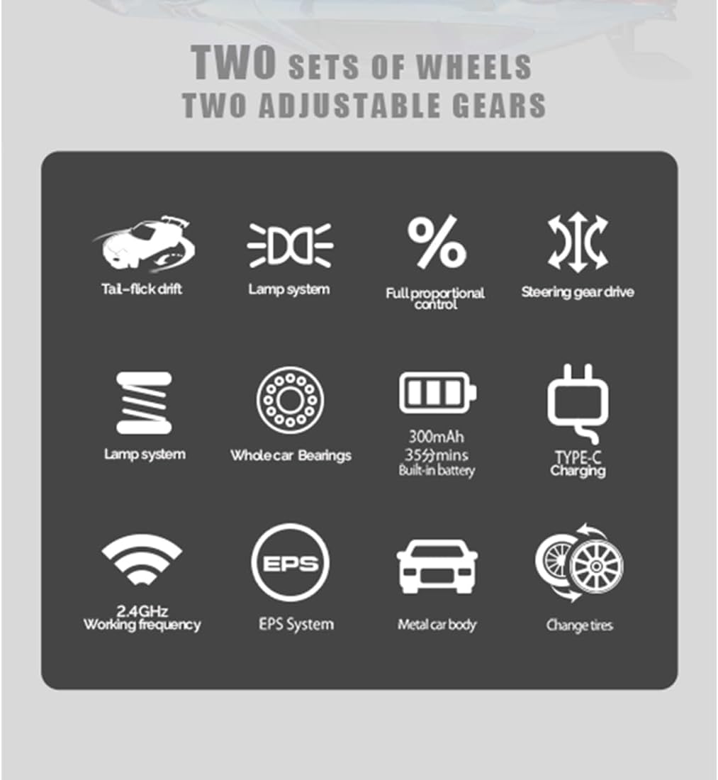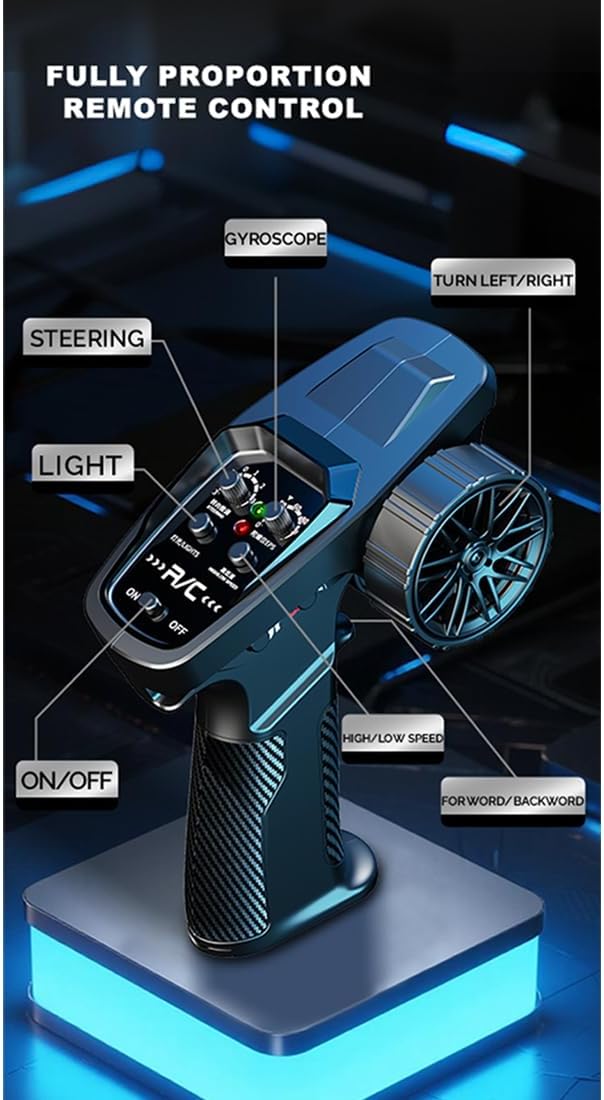 **Sistema di sterzo preciso: dotato di un servo a 3 fili da 2 g per prestazioni di sterzo affidabili e controllo della direzione regolare. **Potente nucleo motrice: dotato di un motore a nucleo in ferro N20 che fornisce la forza motrice principale per prestazioni stabili ed efficienti. **Design silenzioso: dotato di cuscinetti silenziosi in tutto il veicolo, che riducono il rumore di funzionamento e migliorano l'esperienza di guida complessiva. **Impostazioni di controllo versatili: supporta la regolazione elettronica proporzionale dello sterzo, la regolazione della sensibilità giroscopica e il controllo della velocità per una maneggevolezza flessibile e personalizzabile. **Sistema di illuminazione indipendente: le luci anteriori, posteriori e posteriori possono essere controllate separatamente, consentendo di regolare le impostazioni di illuminazione dinamica in base a diversi ambienti e scenari.