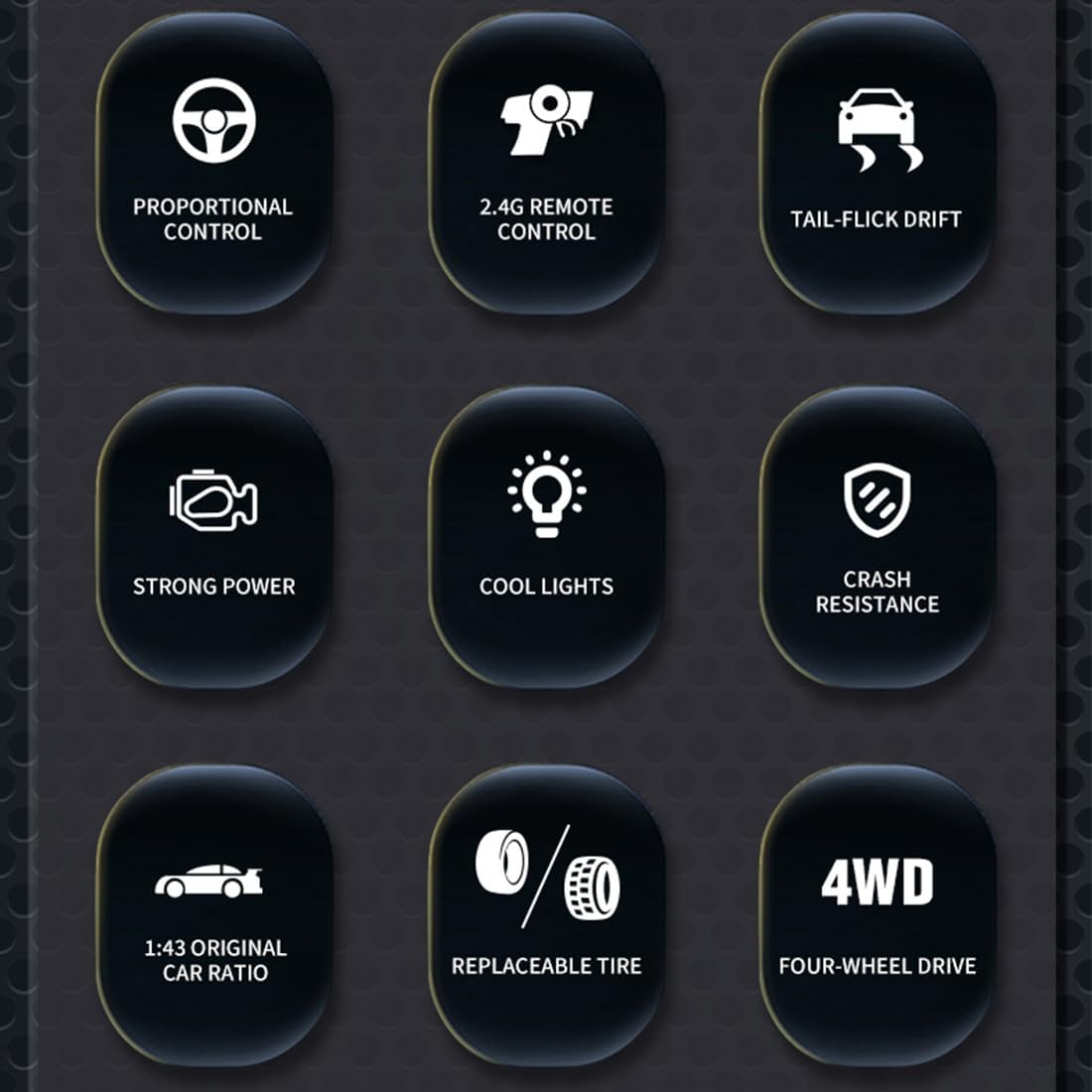Look da corsa autentico: design del corpo ad alta fedeltà, verniciatura realistica e sistema 4WD creano un'esperienza di corsa realistica Drifting fluido e potente: telaio specializzato e cuscinetti a basso attrito consentono un'azione di deriva rapida e stabile con protezione integrata da sovraccarico Controllo reattivo della guida: il telecomando a 2,4 GHz proporzionale offre un'accelerazione fluida, frenata e sterzo preciso fino a 15 km/h. Navigare in avanti, indietro, girare a sinistra o a destra e frenare con facilità Pronto per giocare in qualsiasi momento: pre-assemblato con una batteria al litio ricaricabile e un caricabatterie USB: basta accenderlo e iniziare a guidare Regalo perfetto per ogni occasione: perfetto per hobbisti e appassionati di RC, è anche un ottimo regalo per familiari e adulti. Ideale per compleanni, Natale o semplicemente perché vuoi condividere il divertimento della deriva