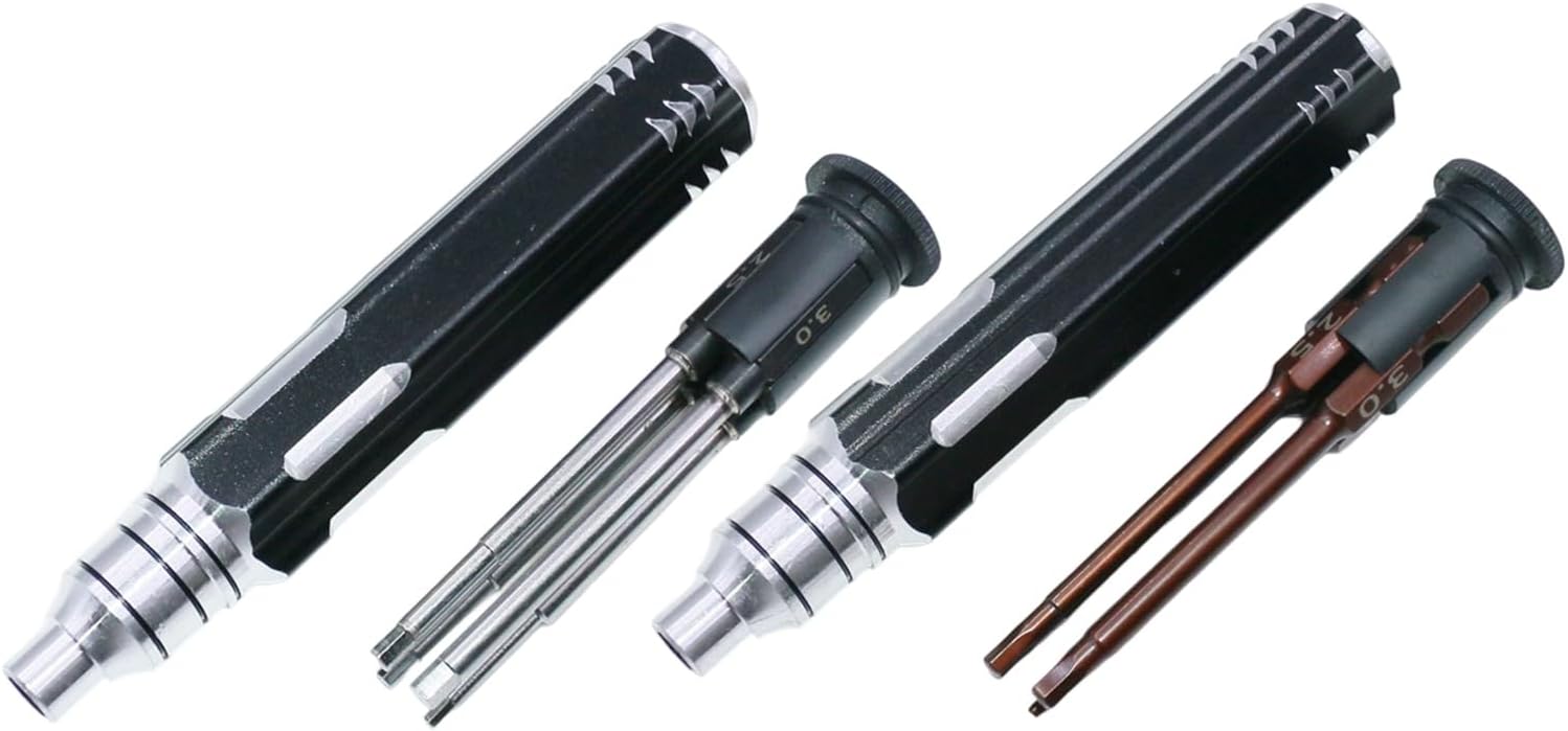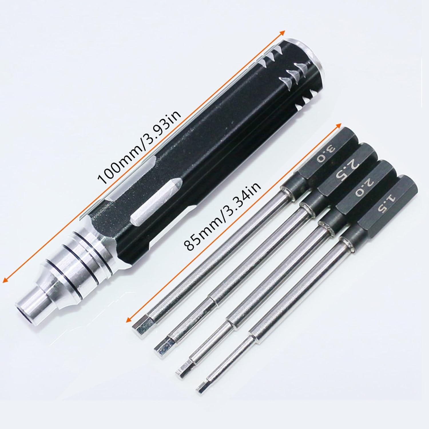 Il nostro set di cacciaviti 4 in 1 con punte da 1,5, 2,0, 2,5 e 3 mm offre precisione multiuso per kit di modelli e assemblaggio di statuette, eliminando la necessità di più strumenti Progettato con punte e impugnatura antiscivolo, questo kit di utensili per modelli migliora l'efficienza operativa mantenendo la portabilità per la manutenzione dei modelli in movimento Gli alberi in acciaio garantiscono una maggiore resistenza all'usura e protezioni contro la corrosione, abbinati al manico ergonomico in lega di alluminio per operazioni facili durante l'uso prolungato Soddisfa complesse attività di assemblaggio in postazioni di lavoro artigianali, eventi all'aperto o configurazioni di competizioni con questo kit di attrezzi tascabile compagno Progettato specificamente per hobbisti, collezionisti in miniatura e costruttori di modelli di telecomandi che richiedono un ottimo strumento per una delicata regolazione della vite