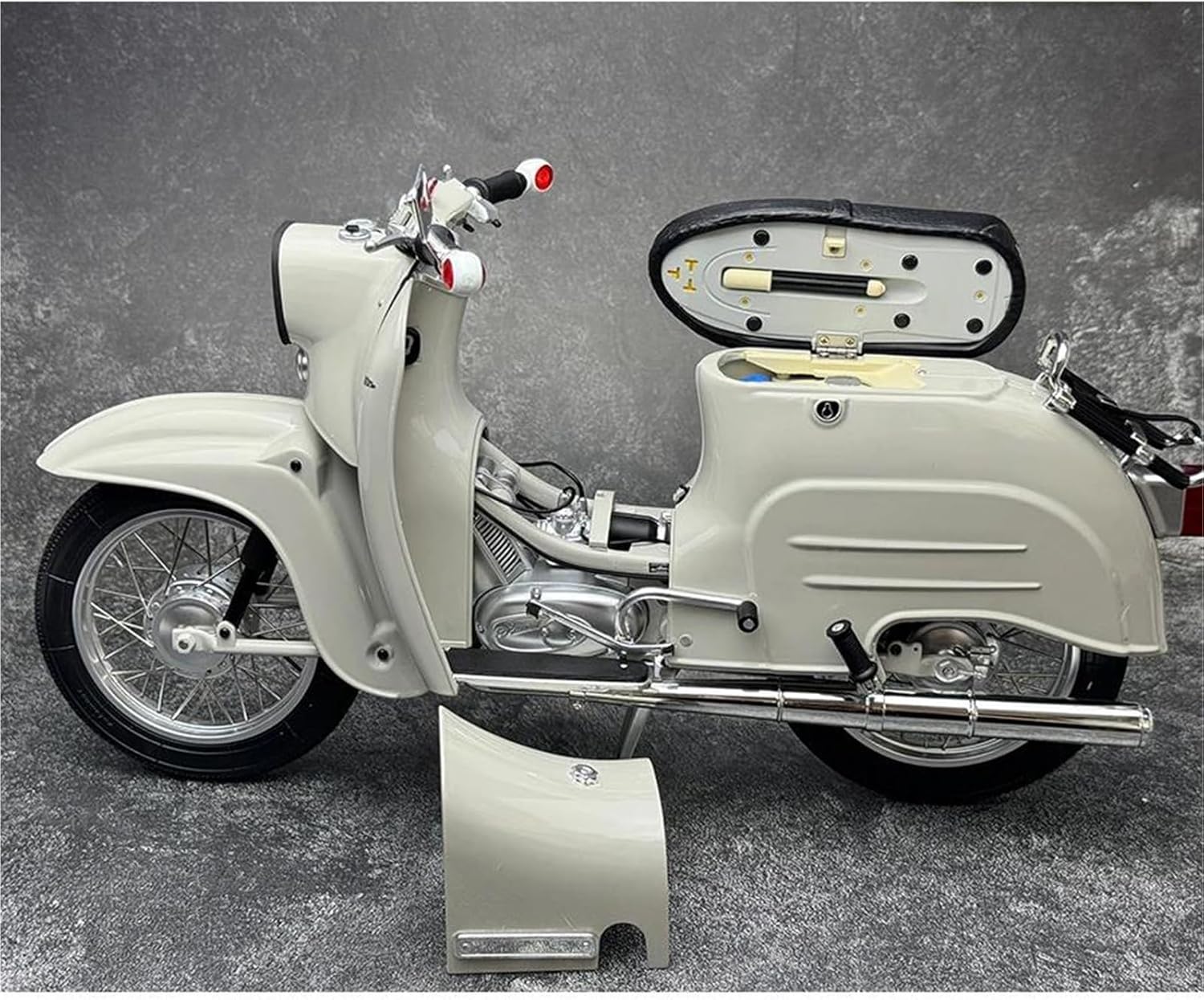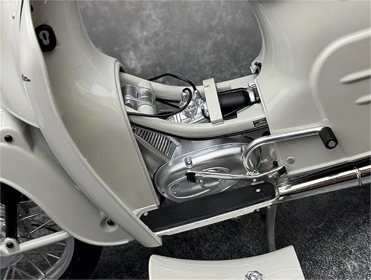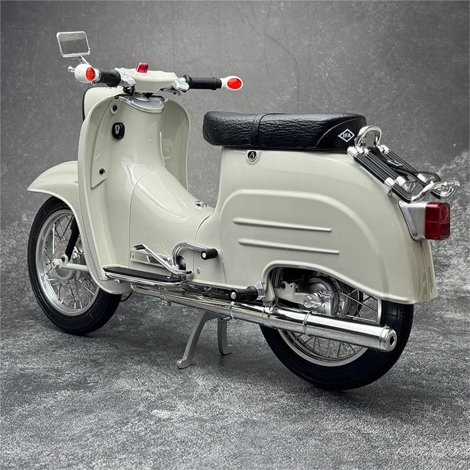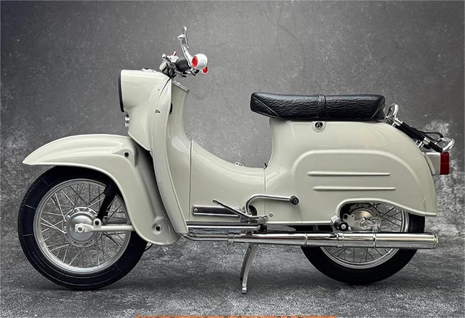 Modello di motocicletta per Simson Schwalbe KR51, le ruote possono girare, le ruote anteriori possono girare, i sedili e il cofano possono essere aperti, le gambe possono essere aperte. Modello di auto giocattolo in scala 1:5, il modello è durevole e duraturo. La costruzione robusta consente di esporlo con orgoglio anno dopo anno senza rompersi. Il modello di motocicletta è un modello squisito realizzato in stretta conformità con la forma, la struttura, il colore, gli interni e altre proporzioni del veicolo originale. È un modello in miniatura del veicolo originale ed è progettato per riprodurre l'aspetto del veicolo originale. Modello di auto di simulazione La finitura liscia e senza sbavature e la vernice lucida e uniforme dimostrano una maestria artigianale eccezionale. Questo modello incarna lo stile di una motocicletta, soddisfacendo l'amore degli appassionati per i modelli nostalgici.