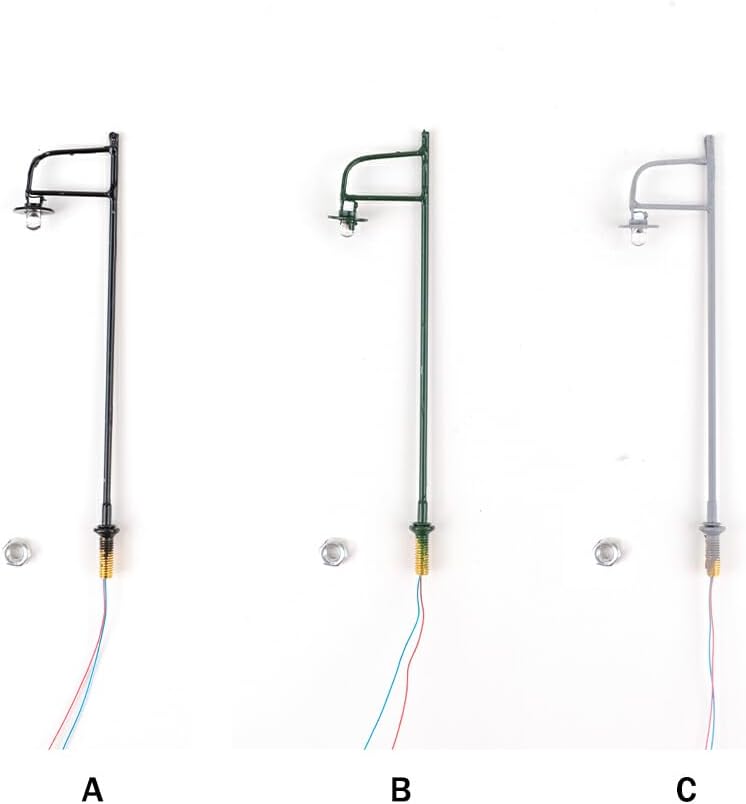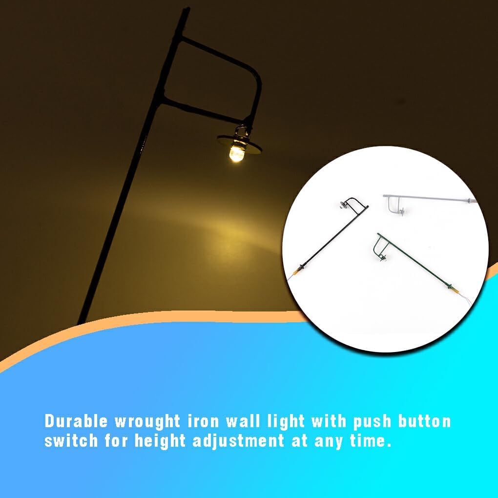 Materiale premium: il lampione in miniatura è realizzato in metallo di alta qualità e ABS, che gode di una buona durata Facile da installare: la mini lampada viene fornita con cavi e lampadine, comodi da usare e installare Miniatura: la lampada in miniatura è di piccole dimensioni e presenta pregevole fattura e dettagli squisiti Antiabbagliante: il lampione ha un'illuminazione morbida che non abbaglia e può proteggere i tuoi occhi Ampiamente usato: la lampada è adatta per tavoli di sabbia, strade, edifici, giardini, muschio, parchi, treni e strutture ferroviarie