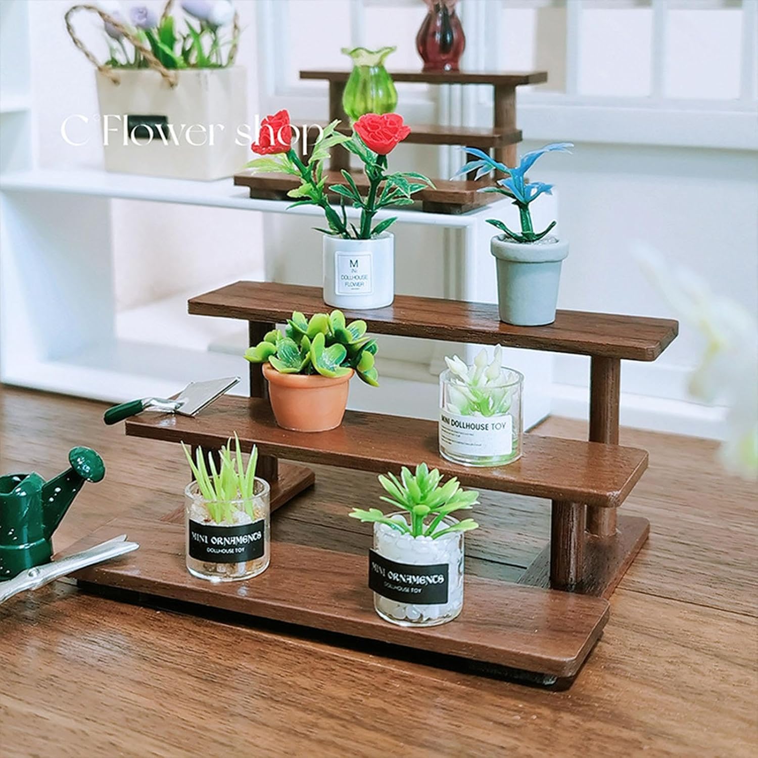 Regalo unico: il mini modello di rack per fiori è un regalo ideale per gli amanti della casa e la famiglia o gli amici che amano la decorazione in miniatura fai da te. Materiale di alta qualità: il mini vaso da giardino è realizzato con materiali in legno di qualità, ecologico, con superficie liscia e delicata, consistenza chiara e durata. Design unico: il supporto per piante per casa delle bambole adotta un ottimo design in miniatura, proporzioni coordinate e design a struttura multistrato, fornendo spazio sufficiente per posizionare vari oggetti in miniatura. Multifunzione: la mensola in miniatura può essere utilizzata come ornamento per mobili in una casa delle bambole, o può essere posizionata da sola su una libreria, una scrivania o una vetrina per diventare un grande artigianato in miniatura. [suggerimenti di adattamento] : mini supporto per casa delle bambole per casa delle bambole in scala 1:6 1:12 e bambole.