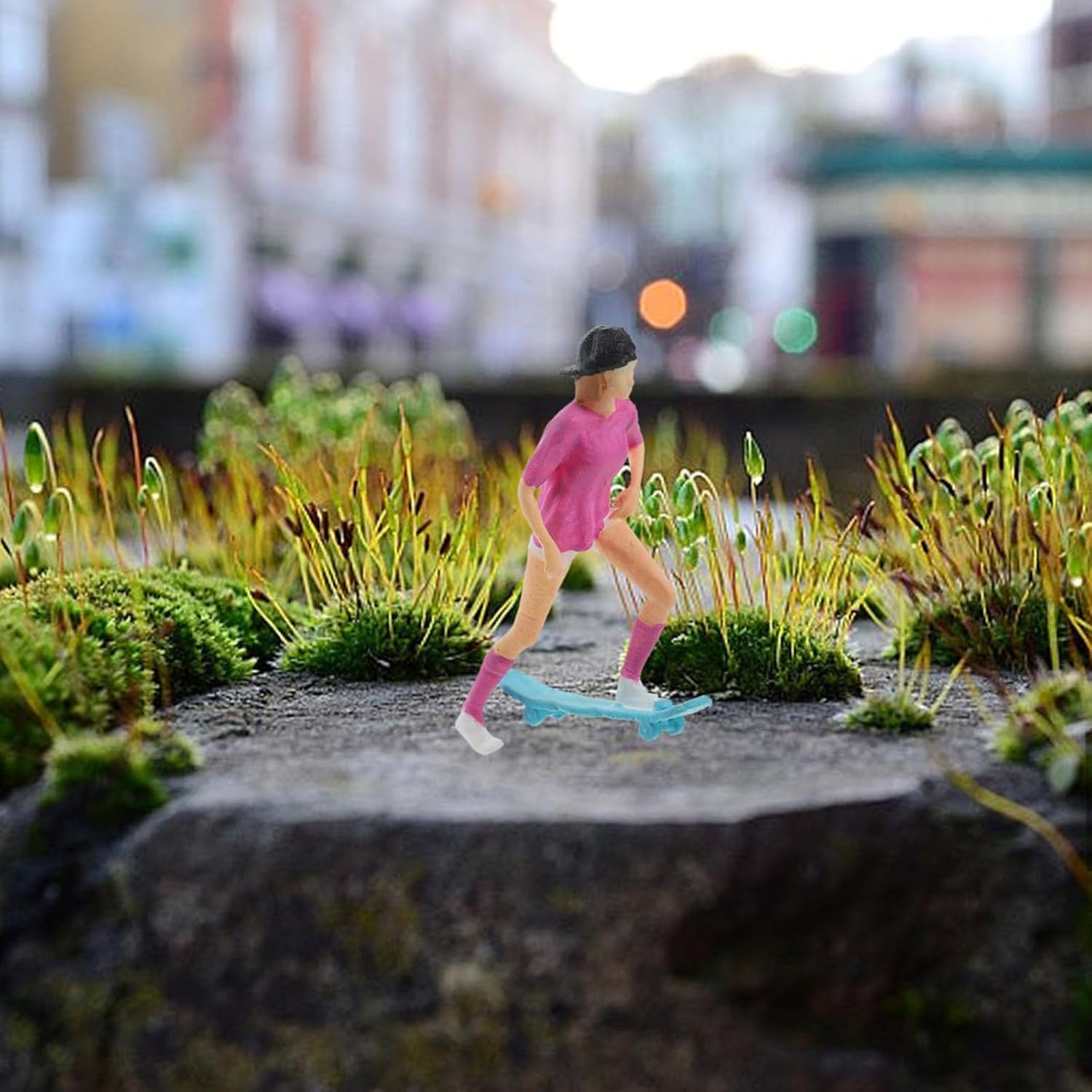 Eleva campi di battaglia sandtable, vignette da giardino o scatola ombre a tema skatepark con questo pezzo decorativo che aggiunge carattere a qualsiasi modello di scena compatibile in scala Disegni per appassionati di modellini, decoratori di case delle bambole e adulti cercano miniature per creare paesaggi in miniatura coinvolgenti o personalizzare progetti di modelli Realizzato con resine, la figura presenta una posa dinamica e strutturata, ideale per integrarsi perfettamente in layout di modellini di treno o display architettonici Con precisione artigianale e sottili effetti atmosferici, questo ponte in miniatura da collezione hobby artigianato e esposizione artistica in ambiente scala case delle bambole Questa statuetta da skateboard dipinta a mano in scala 1:64 vanta dettagli intricati e realistici, per migliorare il paesaggio in miniatura, la scena ferroviaria o la costruzione di modelli con un tocco di realismo urbano