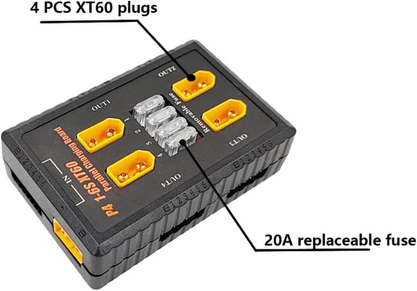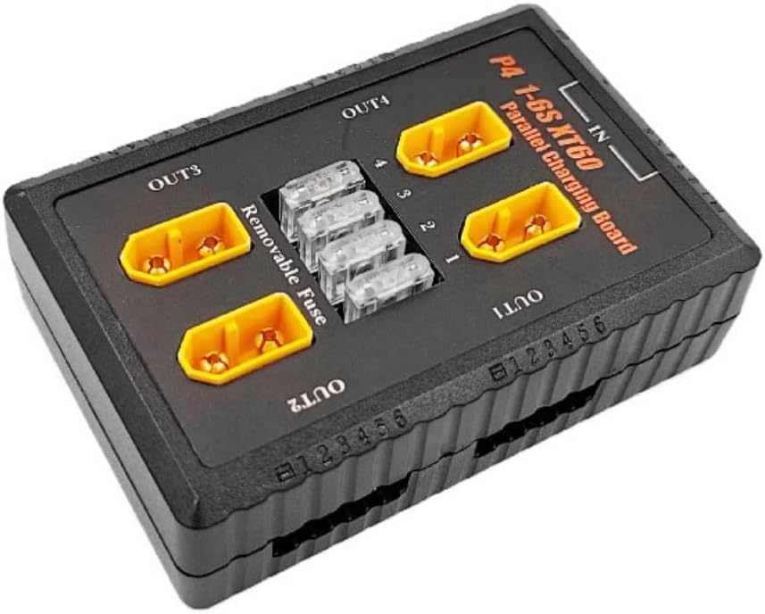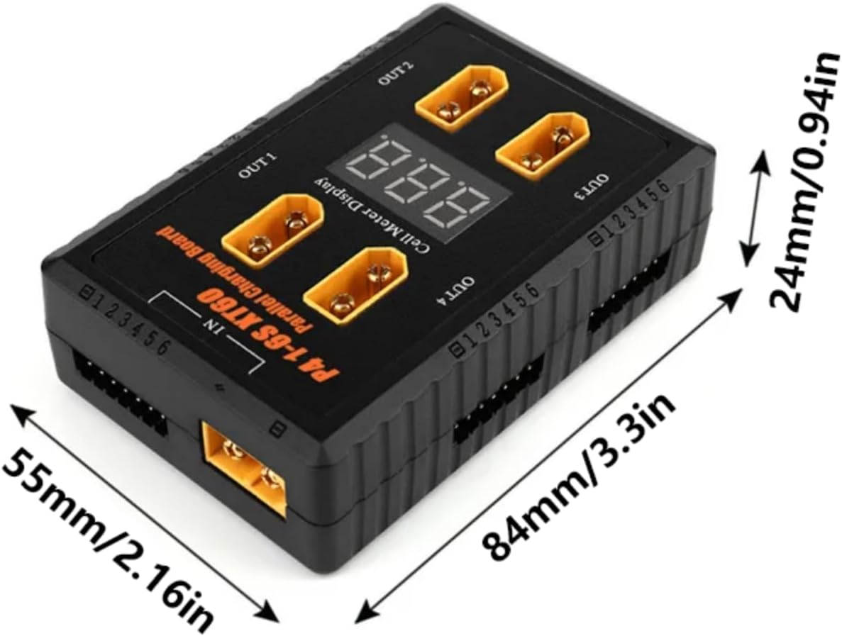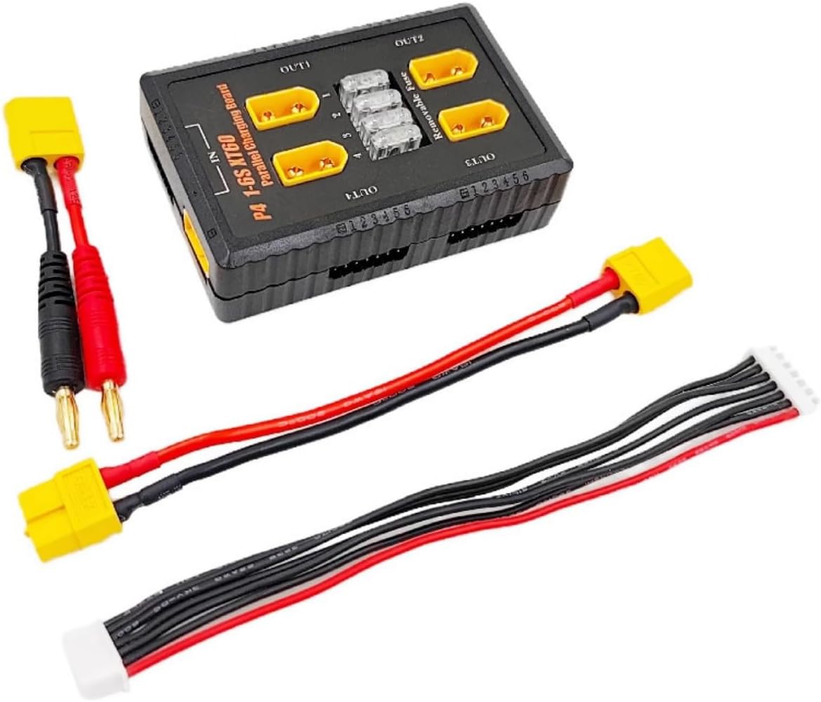 Il caricatore 1-6S XT60 offre un'elevata compatibilità, supporta batterie al litio parallele da 1 a 6 secondi, che consente per molti tipi di batterie e requisiti di ricarica Adatto per scenari di più batterie droni contemporaneamente, con l'alimentazione dei veicoli a distanza o fornendo una soluzione di ricarica efficiente per progetti di batterie Perfetto per gli appassionati di droni, giocatori di modella remota e hobbisti elettronici che richiedono una ricarica rapida e una soluzione di gestione della batteria Con una funzione di ricarica equilibrata, questa tavola garantisce sicurezza Selezionato da materiali ABS e dotato di caratteristiche di sicurezza come sovratemperatura, brevi distanze. Questa piastra di ricarica portatile è adatta per attività all'aperto e uso professionale