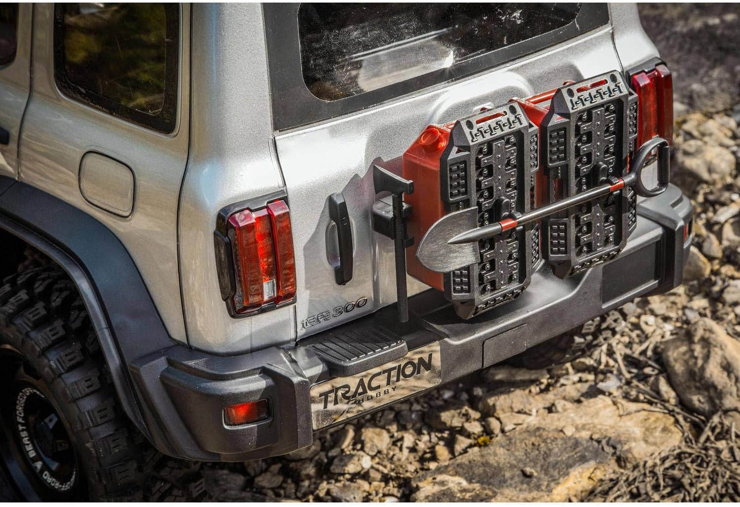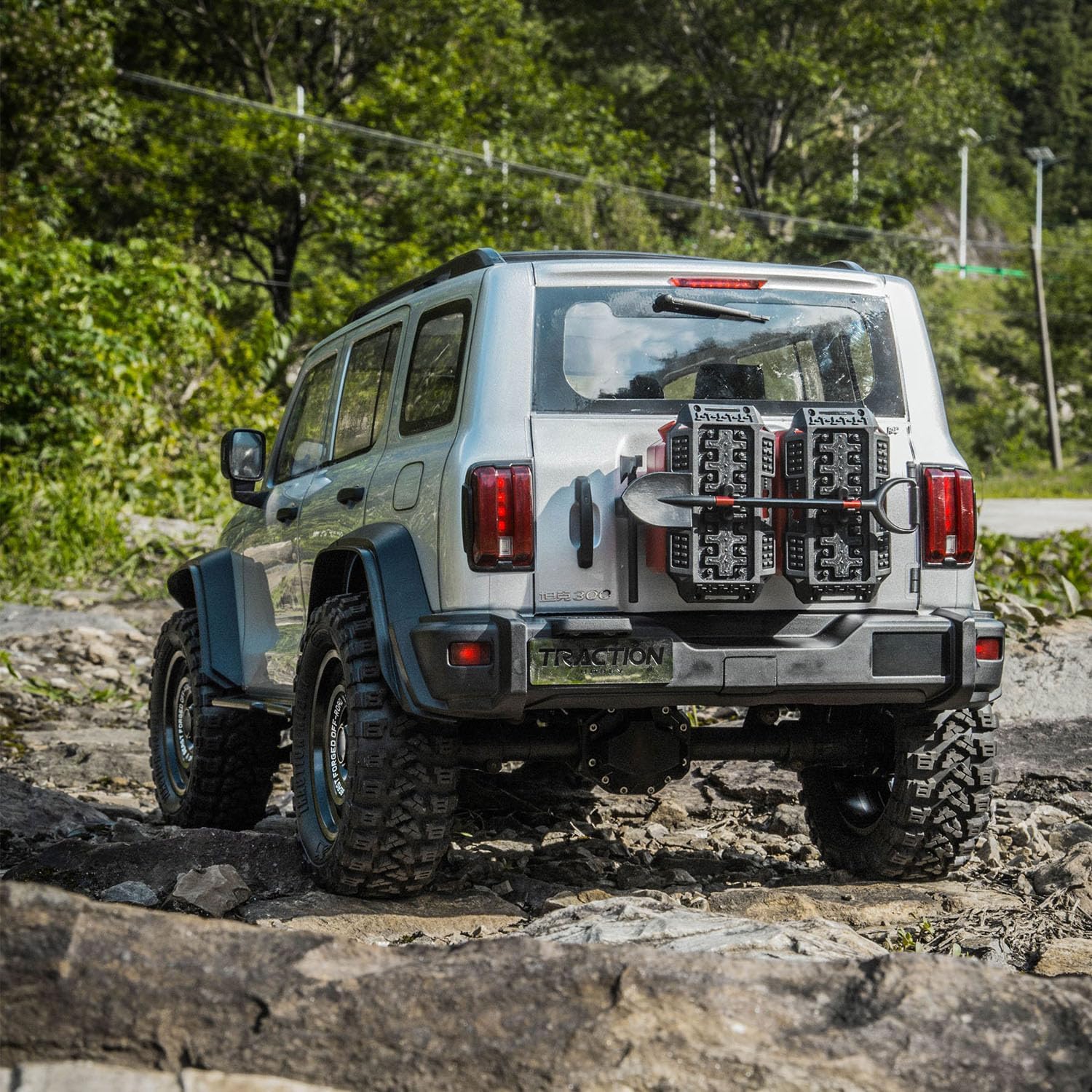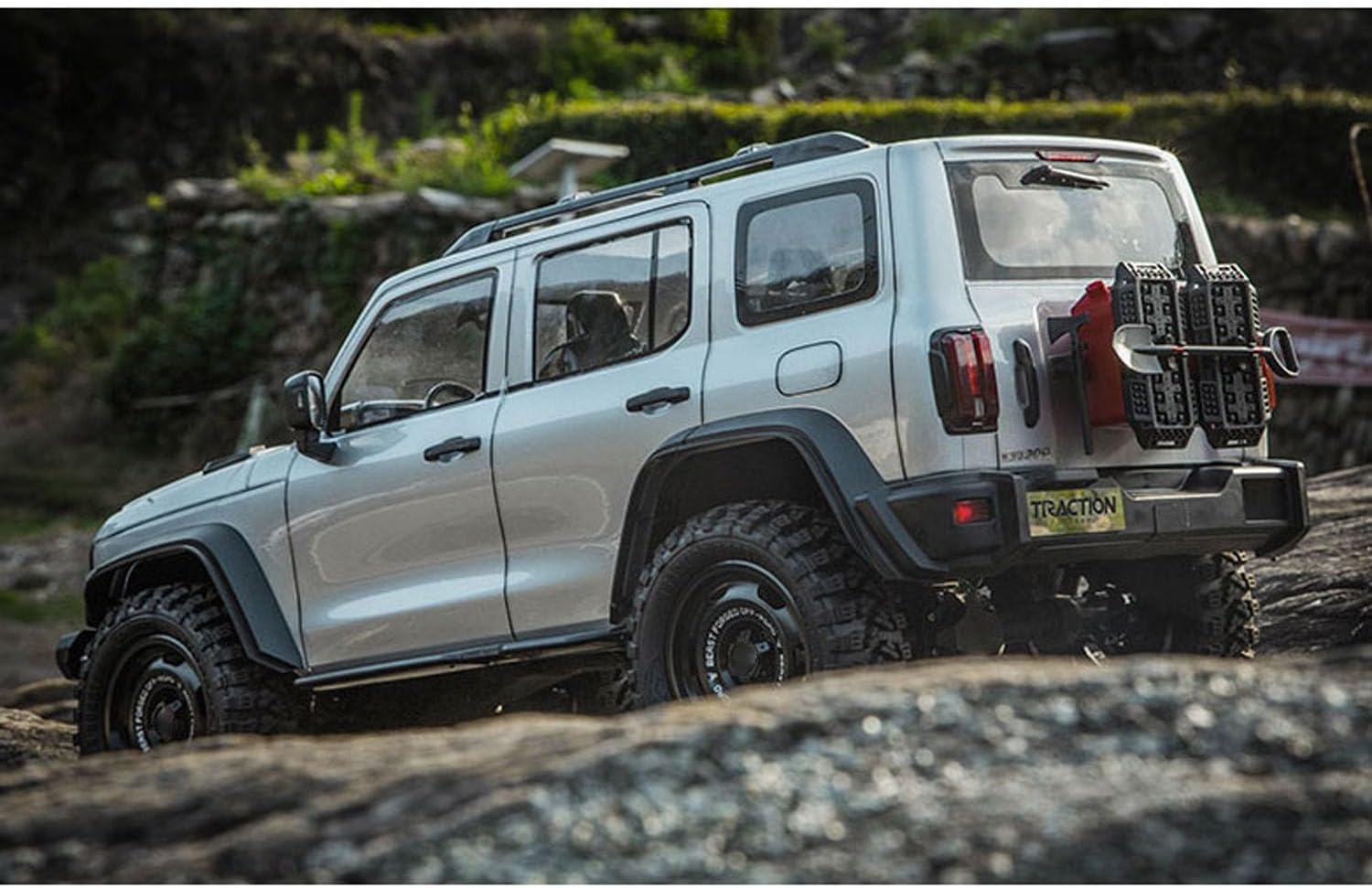 Questo rock crawler è dotato di un motore spazzolato 775 e di un regolatore di velocità elettronico a prova di spruzzi 880. Inoltre, adotta un albero motore ad alta resistenza interamente in metallo per garantire prestazioni e resistenza. La marcia alta può raggiungere circa 40 km/h, mentre la marcia bassa può raggiungere circa 20 km/h (le velocità sono solo di riferimento). Supporta la commutazione del telecomando tra tre modalità di guida: trazione anteriore, trazione posteriore e trazione integrale, catering per vari scenari. Il telaio presenta una sospensione anteriore indipendente e un design dell'asse posteriore dritto. Ciò riduce al minimo le interferenze delle ruote durante lo sterzo, consentendo alle ruote di adattarsi in modo indipendente al terreno per una maggiore flessibilità di controllo. Inoltre, riduce il baricentro, riducendo al minimo il rischio di inclinazione laterale durante l'arrampicata. L'asse posteriore diritto mantiene una migliore stabilità del passo su terreni ondulati, prevenendo le sospensioni a ruota singola e riducendo la deformazione indotta dalla collisione. L'asse incorpora un alloggiamento dell'asse in nylon ad alte prestazioni, una copertura differenziale CNC e un set di ingranaggi in metallo. Inoltre, è dotato di serrature differenziali anteriori e posteriori controllate indipendentemente per soddisfare i requisiti ad alta intensità dell'uso fuoristrada. Il telaio del veicolo utilizza ammortizzatori coilover interamente in metallo riempiti con olio per ammortizzatori 1000#, migliorando significativamente l'effetto di assorbimento degli urti del telaio. Inoltre, il telaio è dotato di tiranti di sospensione in acciaio, resistenti all'usura e alla ruggine. Questi tiranti riducono ulteriormente il baricentro migliorando la durata e la resistenza agli urti.