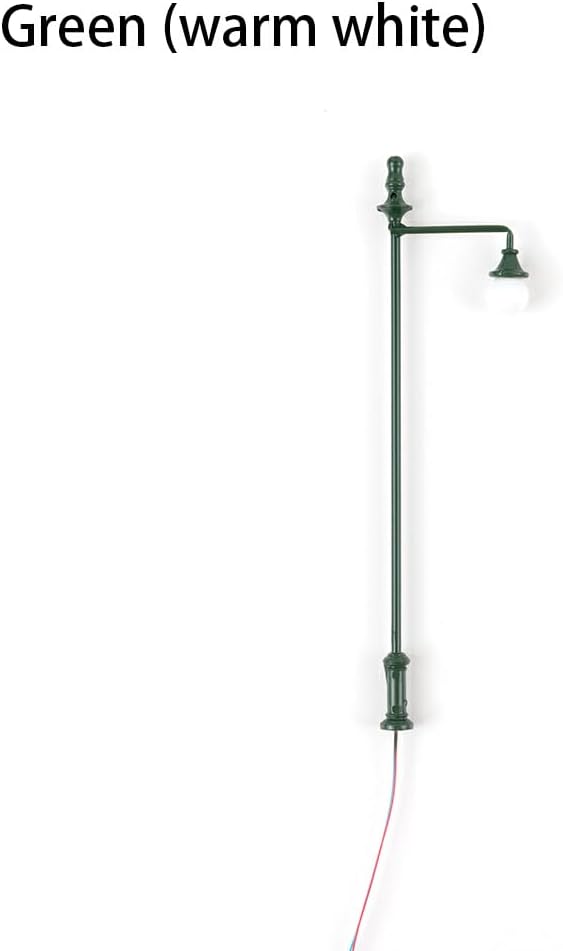 Materiale premium: il lampione in miniatura sceglie metallo e ABS di prima qualità, che godono di una buona durata Set di accessori: la mini lampada viene fornita con cavi e lampadine, che sono comodi da usare e da illuminare Dettagli fini: la lampada in miniatura è di piccole dimensioni e presenta pregevole fattura e dettagli squisiti Luce soffusa: il lampione ha un'illuminazione morbida che non abbaglia e può proteggere i tuoi occhi Ampiamente usato: la lampada è adatta per decorare strade, treni, edifici, giardini, muschi, parchi e strutture ferroviarie
