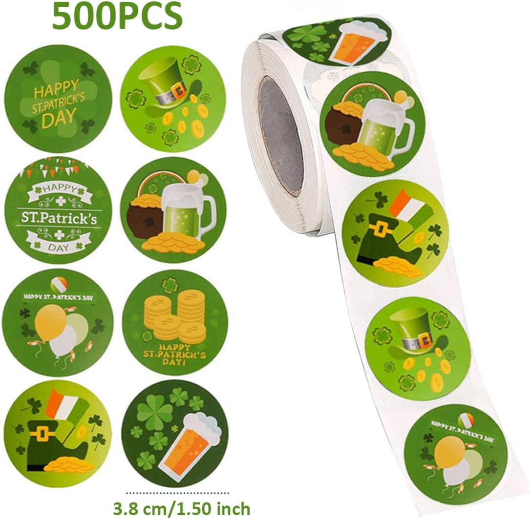 Materiale: gli adesivi del giorno di San Patrizio sono fatti di carta e stampati con motivi chiari, il retro con nastro adesivo, facile da staccare e attaccare alla superficie della maggior parte degli oggetti, non lascerà traccia dopo la rimozione, si prega di sentirsi a proprio agio. Modello diverso: questi adesivi rotondi sono progettati per il giorno di San Patrizio, includono trifoglio, birra, macchina di trifoglio, monete, cappello e altri elementi di colore verde, è molto adorabile, i bambini li adoreranno. Ampie applicazioni: questo adesivo per il giorno di San Patrizio è carino nel colore e abbondante in quantità. Non solo la bellissima decorazione di regali per feste di San Patrizio, regali di festa, quaderni, scatole regalo, borse, biglietti d'invito, ecc., ma adatta anche per decorare camere da letto, soggiorni, scuole, uffici o altri luoghi. Adesivi per il giorno di San Patrizio felice: riceverai 500 adesivi rotondi per il giorno di San Patrizio per bambini, 8 design diversi, la quantità soddisferà le tue diverse esigenze.