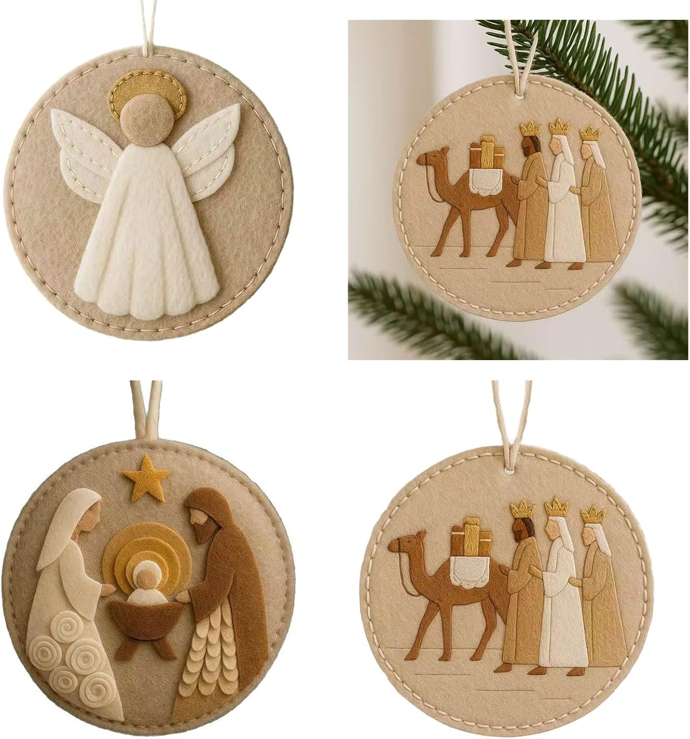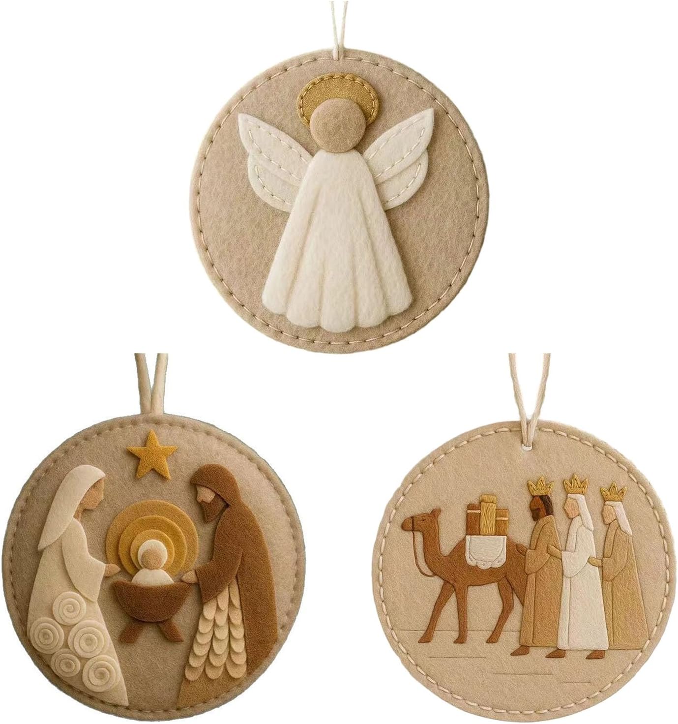 Ornamento da appendere per presepe artigianale Decorazione per albero Natale con questo materiale artigianale in feltro lana, caratterizzato da un morbido panno peluche che conferisce fascino religioso e resistenza alle tue decorazioni natalizie fatte a mano Adatto agli appassionati artigianato, alle famiglie cristiane o ai gruppi ecclesiali alla ricerca progetti artigianali significativi, questo set funge da regalo premuroso per celebrazioni religiose o riunioni festive Progettate per simboleggiare speranza e divertimento, queste creazioni in feltro fatte a mano fondono l'artigianato tradizionale con motivi religiosi, ideali per commemorare le celebrazioni del festival Natale Mostra tuo ornamento del presepe in feltro finito sull'albero Natale, sui caminetti, sulla porta d'ingresso, sulle scale, sulla ghirlanda natalizia o come parte un tableau stagionale del festival per migliorare la decorazione della casa con un artigianato ispirato alla fede set per ricamo include un pezzo feltro pretagliato, istruzioni passo passo facili da seguire per un assemblaggio senza soluzione continuità, garantendo finitura per ornamenti natalizi da appendere, decorazioni per alberi Natale o espositori mensole