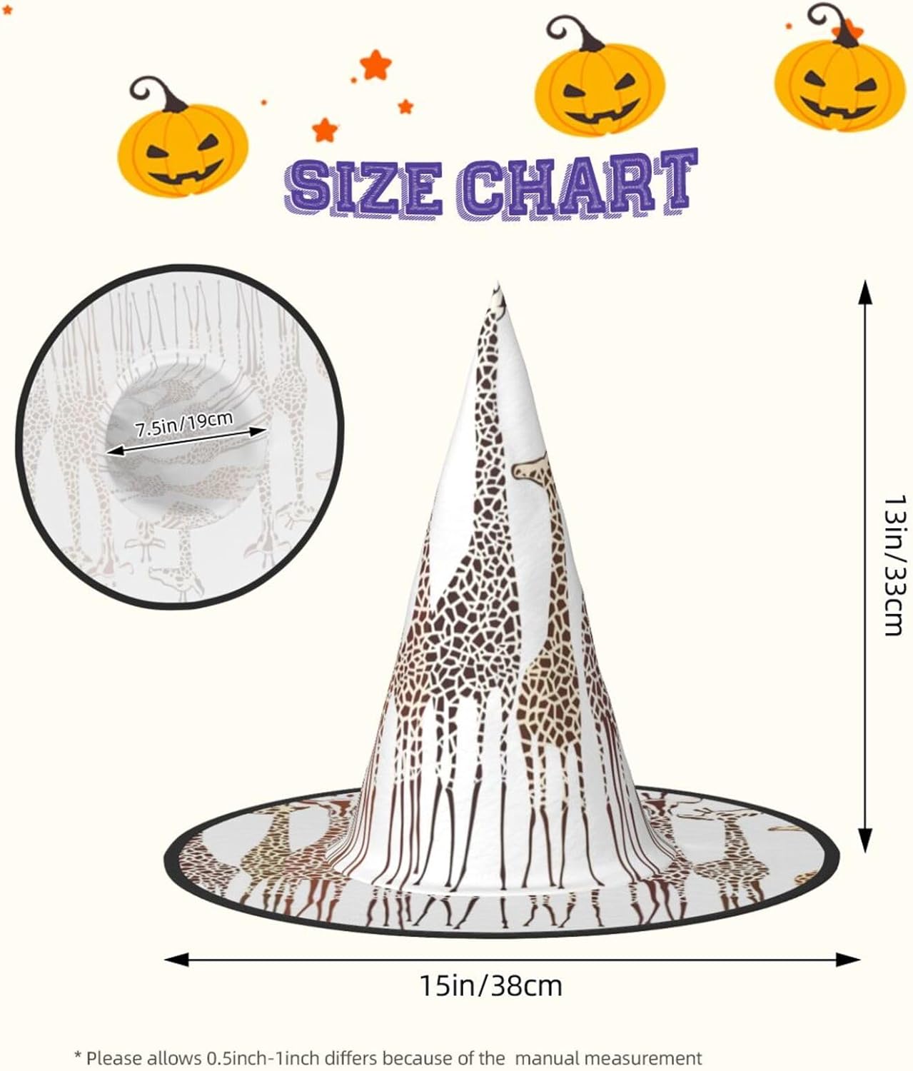 Simpatico e divertente cappello da strega giraffe di Halloween per adulti. \rIl cappello da strega è un ottimo accessorio per il costume di Halloween. Materiale: realizzato in resistente tessuto Oxford, morbido, confortevole e caldo. Dimensioni: standard. Dimensioni del prodotto: 33 x 38 cm. Perfetto per Halloween, Natale, balli in maschera, cosplay, riunioni, carnevali