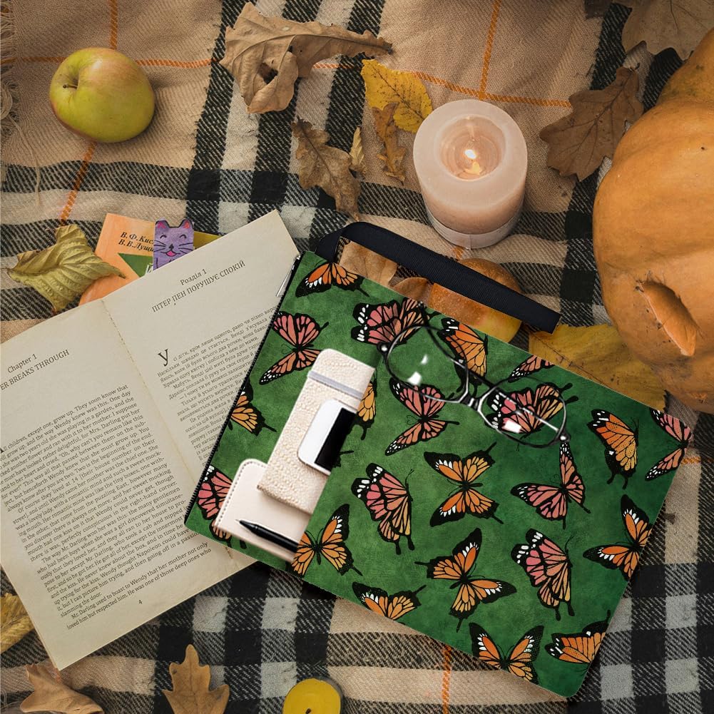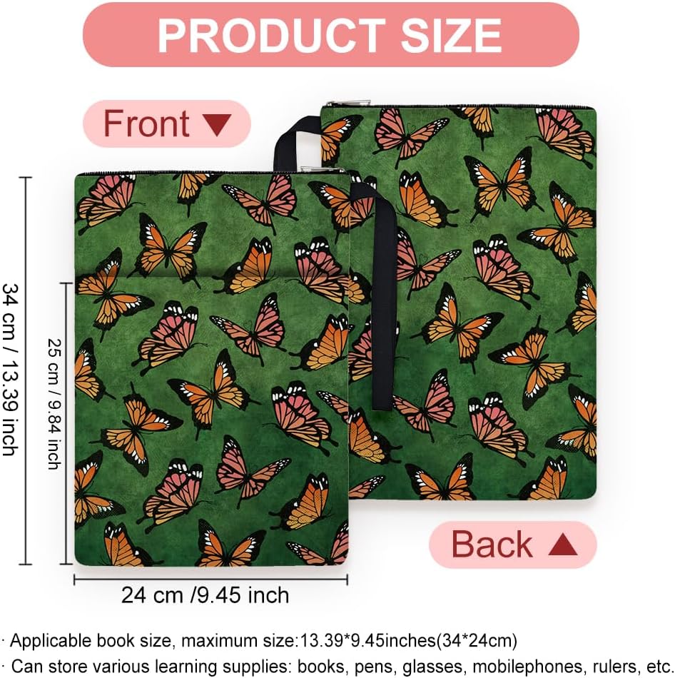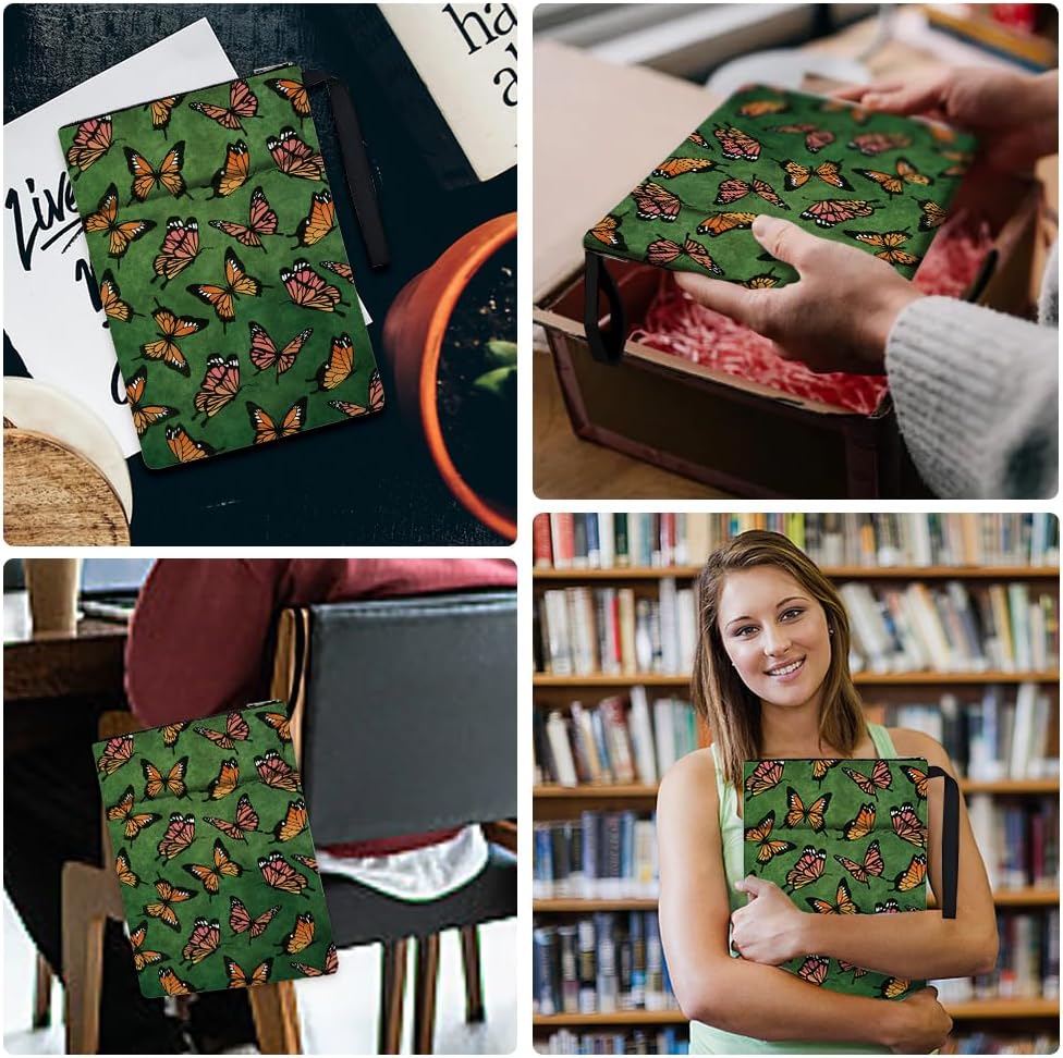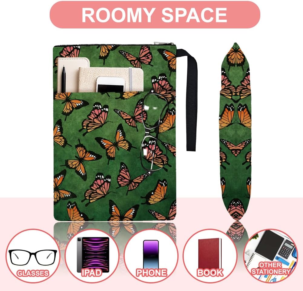 Design a farfalla: la custodia per libro è progettata con un motivo a farfalla, i colori vivaci e i motivi vivaci conferiscono alla copertina un tocco di moda, che aumenterà il vostro interesse di lettura. Dimensioni: la confezione include 1 copertina per libri tascabili, la dimensione è lunga 34 cm e larga 24 cm, spaziosa per copertina rigida, libri tascabili, libri morbidi, pad, romanzi e la maggior parte dei libri in formato standard. Materiale in poliestere: la copertina per libri è realizzata in poliestere con imbottitura impermeabile e leggera, resistente e può proteggere i tuoi libri o altri oggetti da polvere e acqua. Con chiusura lampo e tasca esterna: la tasca per libro si chiude con una cerniera liscia, in modo che il libro non scivoli accidentalmente dalla copertina del libro e allo stesso tempo migliorando la tenuta e la sicurezza. Ha una tasca aggiuntiva e la dimensione è lunga 25 cm e larga 14 cm, dove è possibile riporre piccoli oggetti per mantenere più ordine. Ampia applicazione: la protezione per libri ha una corda portatile che è comoda da trasportare, così gli accessori per libri non servono solo come protezione per i libri, ma anche come borsa per il trasporto, ma come borsa da viaggio, trousse per cosmetici, regali a tema club del libro, organizzazione di forniture per ufficio, grande tasca con cerniera e così via.