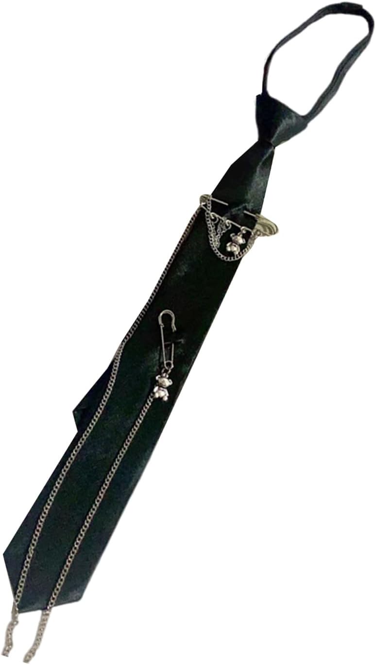 1. Cravatte punk uniformi con catena d'argento per donne ragazze scuola cosplay pre-legato accessori cravatta regolabile Caratteristiche: Realizzato in tessuto di poliestere. Morbido e confortevole. Cravatta classica, con abbigliamento migliore; facile da regolare, adatta a varie dimensioni della scollatura. Cravatta per occasioni: uniforme scolastica, matrimoni, feste, affari, balli, cerimonie scolastiche o altre occasioni. Cravatta regolabile per il collo, una taglia per la maggior parte. Ideale per studenti, eventi, matrimoni, feste e qualsiasi altra occasione casual. Specifiche tecniche: Componente: poliestere. Dimensioni: circa 38 cm. Tipo: 2 Opzione Quantità: 1 pezzo. La confezione include: 1 cravatta. Nota: 1. Si prega di considerare un margine di errore di 1-2 cm dovuto alla misurazione manuale. 2. A causa delle differenze tra i diversi monitor, l'immagine potrebbe non riflettere esattamente il colore dell'articolo.