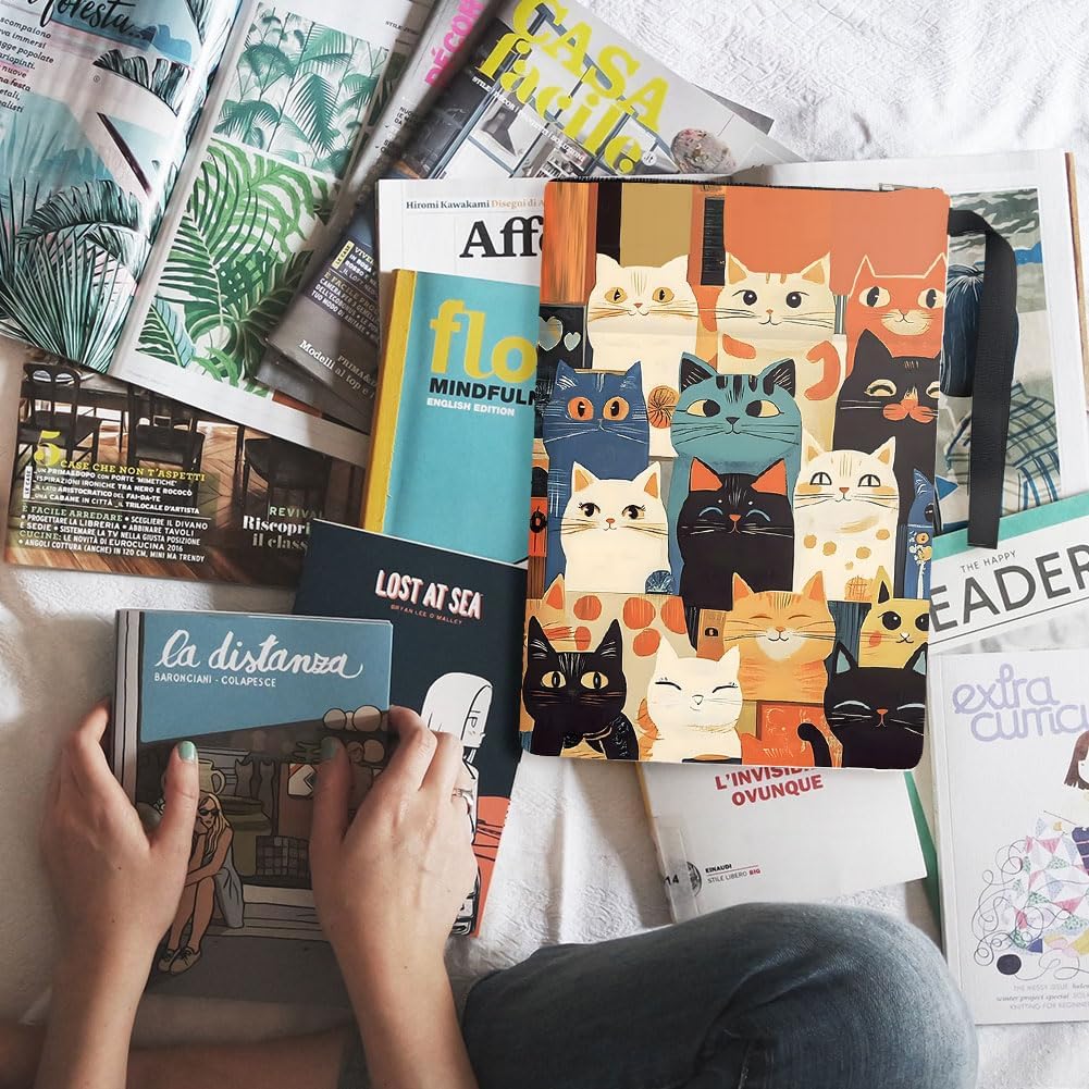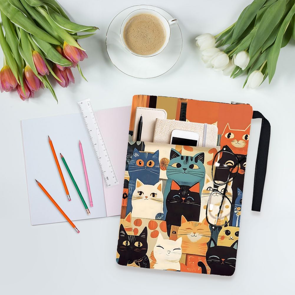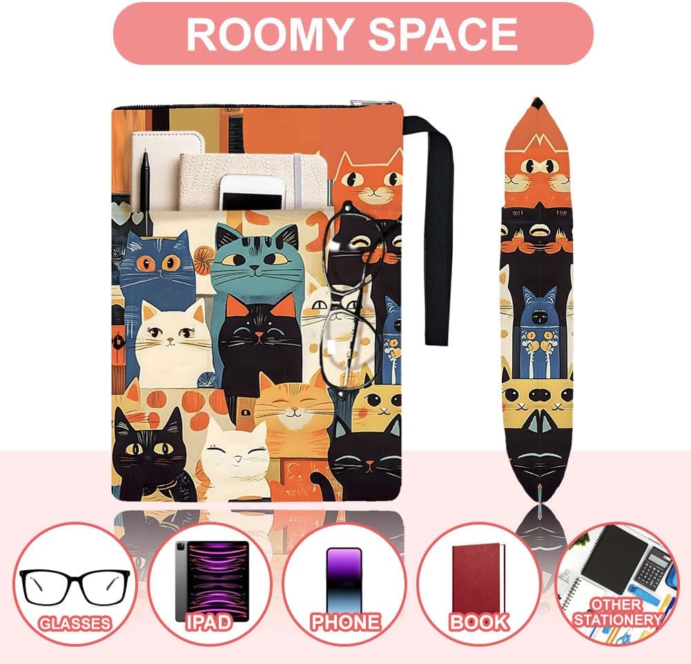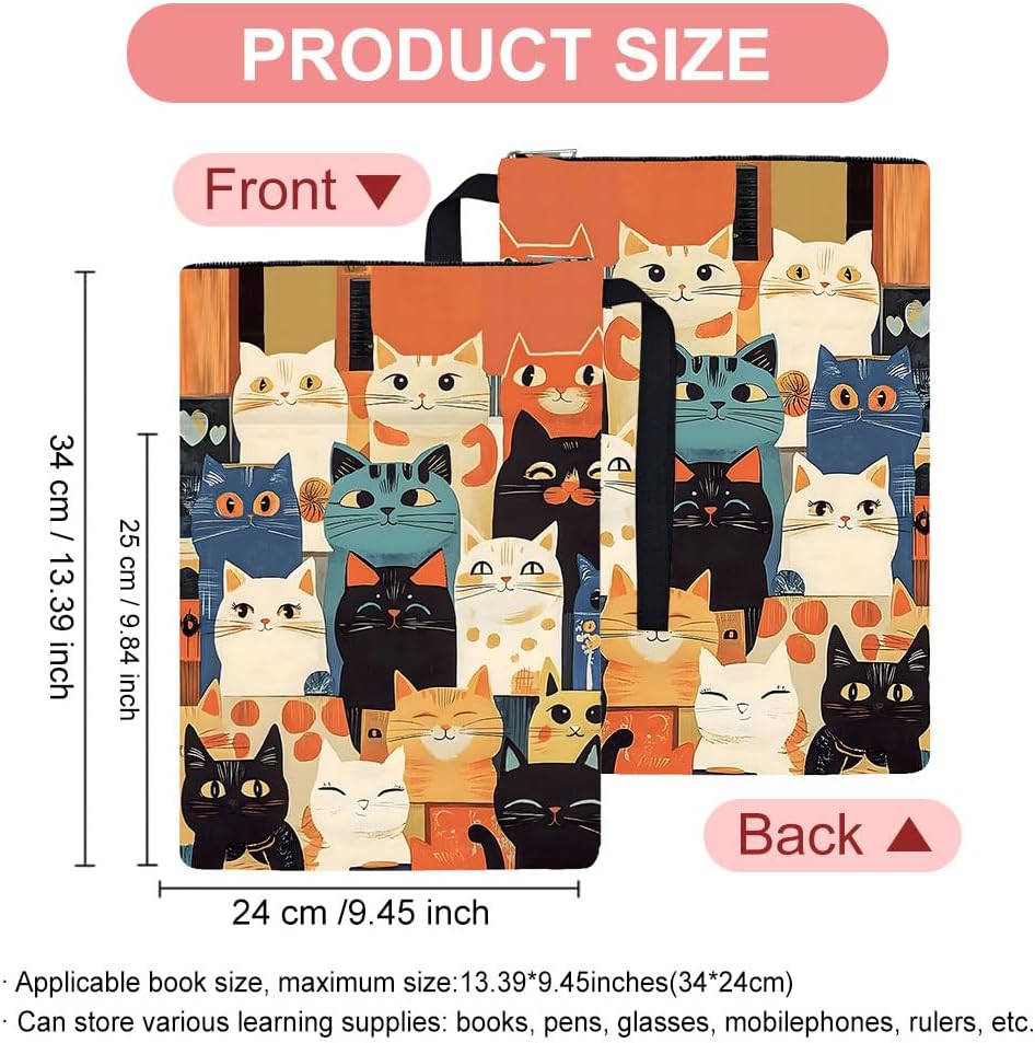 Design con gatto: la custodia a libro con cerniera è stampata con molti motivi di gatti dai colori accesi, che è molto carino. I disegni unici aggiungono un tocco di moda alla copertina del libro. Dimensioni: la confezione include 1 protezione per libri, la dimensione è lunga 34 cm e larga 24 cm, che è spaziosa per copertina rigida, libri tascabili, libri morbidi, pad, romanzi e la maggior parte dei libri di dimensioni standard. Con cerniera e tasca esterna: la custodia per libri si chiude con cerniera liscia in modo che il libro non scivoli accidentalmente dalla custodia del libro migliorando la tenuta e la sicurezza. Ha una tasca extra e la dimensione è lunga 25 cm e larga 14 cm, che può contenere alcuni piccoli oggetti per renderlo più organizzato. Materiale: la copertina è realizzata in poliestere con imbottitura leggera impermeabile che è stata resistente e può proteggere i tuoi libri o altri oggetti da polvere e acqua. Ampia applicazione: le copertine in brossura hanno una corda portatile che comoda da trasportare, quindi gli accessori per libri non sono utilizzati solo come custodia per il trasporto di libri, ma come borsa da viaggio, borsa cosmetica, regali a tema club di libri, organizzazione di forniture per ufficio, grande sacchetto con cerniera e così via.