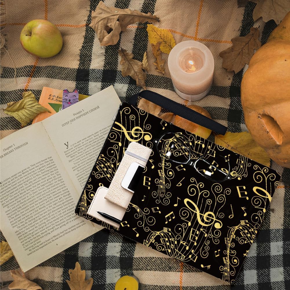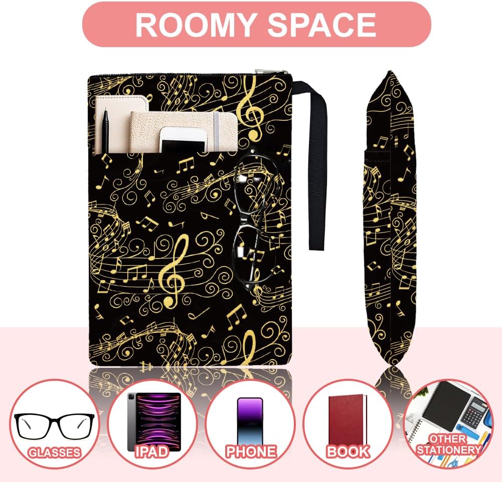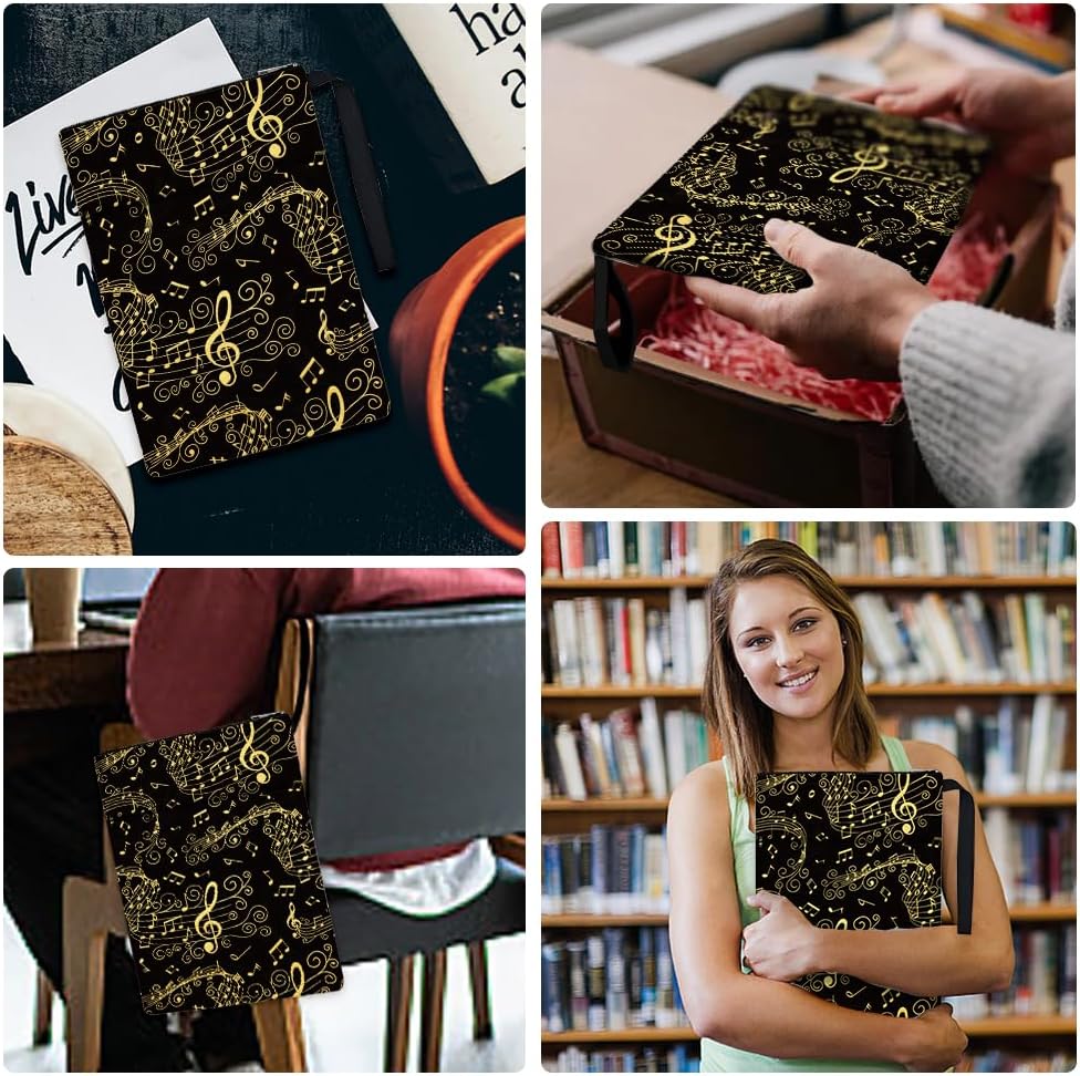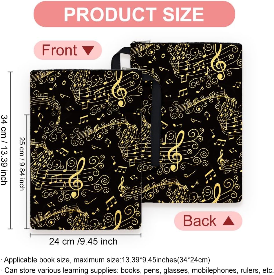 Design delle note musicali: la copertina del libro è stata progettata come un variegato motivo di note musicali in nero, le note musicali sono di colore dorato, il che lo rende più accattivante e luminoso, è come se le note danzassero. I colori classici e il design unico conferiscono alla copertina del libro un tocco alla moda. Dimensioni: la confezione contiene 2 copertine di libri con diversi design di note musicali, le dimensioni sono 34 cm di lunghezza e 24 cm di larghezza, spaziose per copertine rigide, copertine rigide, tascabili, copertine morbide, blocchi, romanzi e la maggior parte dei libri in formato standard. Materiale in poliestere: la copertina del libro è realizzata in poliestere con imbottitura impermeabile e leggera, che è durevole e può proteggere i tuoi libri o altri oggetti da polvere e acqua. Con cerniera e tasca esterna: la copertina del libro si chiude con una cerniera liscia, in modo che il libro non scivoli accidentalmente dalla copertina, migliorando al tempo stesso l'impermeabilità e la sicurezza. Ha una tasca extra e le dimensioni sono 25 cm di lunghezza e 14 cm di larghezza, puoi riporre piccoli oggetti per avere più ordine. Ampia Applicazione: La copertina del libro ha una corda portatile che è comoda da trasportare, quindi l'accessorio del libro serve non solo come protezione del libro, ma anche come borsa per il trasporto, ma anche come borsa da viaggio, borsa per il trucco, regali a tema club del libro, organizzazione di forniture per ufficio, grande tasca con cerniera e così via.