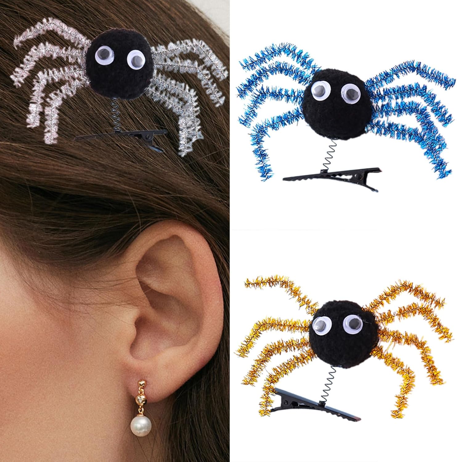 Ragni di Halloween Clip per capelli per bambini presenta un design di ragni rimbalzanti con base in metallo leggero e fibra di poliestere, garantendo un'usura sicura creando movimenti accattivanti durante i costumi. Afferra saldamente i capelli senza scivolare, pratico ma comodo fermaglio per capelli per feste di Halloween. Per bambini creativi dai 3 anni in su che amano giocare di ruolo come streghe, vampiri o dettagli divertenti a feste a tema, eventi scolastici o date di gioco fantasiose. Accessorio ideale per dolcetto o scherzetto, avventure, concorsi in costume o aggiungere divertimento agli abiti quotidiani durante la stagione autunnale. Questi accessori unisex per capelli ragni mescolano un colore unico con dettagli testurizzati, incoraggiando i bambini a mostrare la loro personalità.