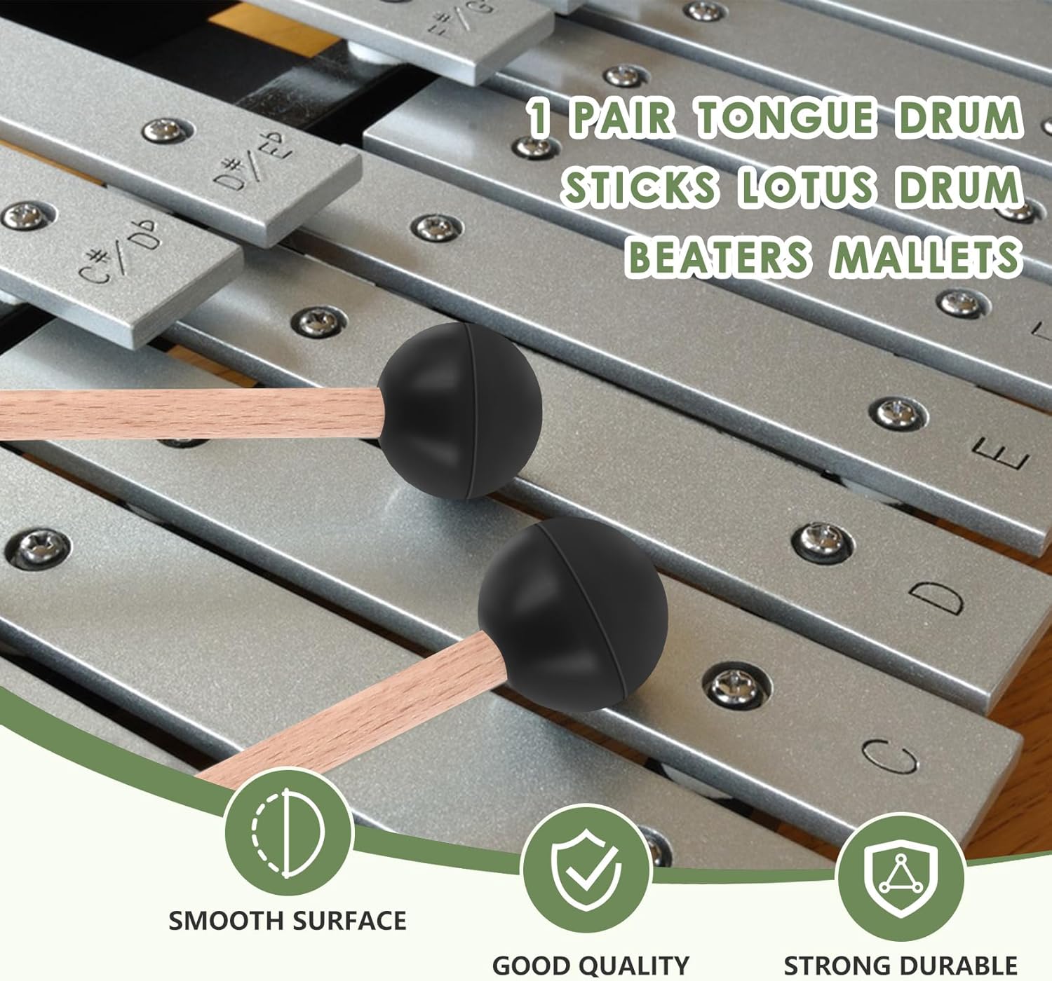 Superficie lucida, facile da impugnare e giocare. 1 paio di bacchette per batteria con linguetta Lotus Drum Beaters Mallets. Peso ed equilibrio perfetti, squisita fattura. Perfetto per l'educazione musicale, lo yoga, la meditazione e così via.