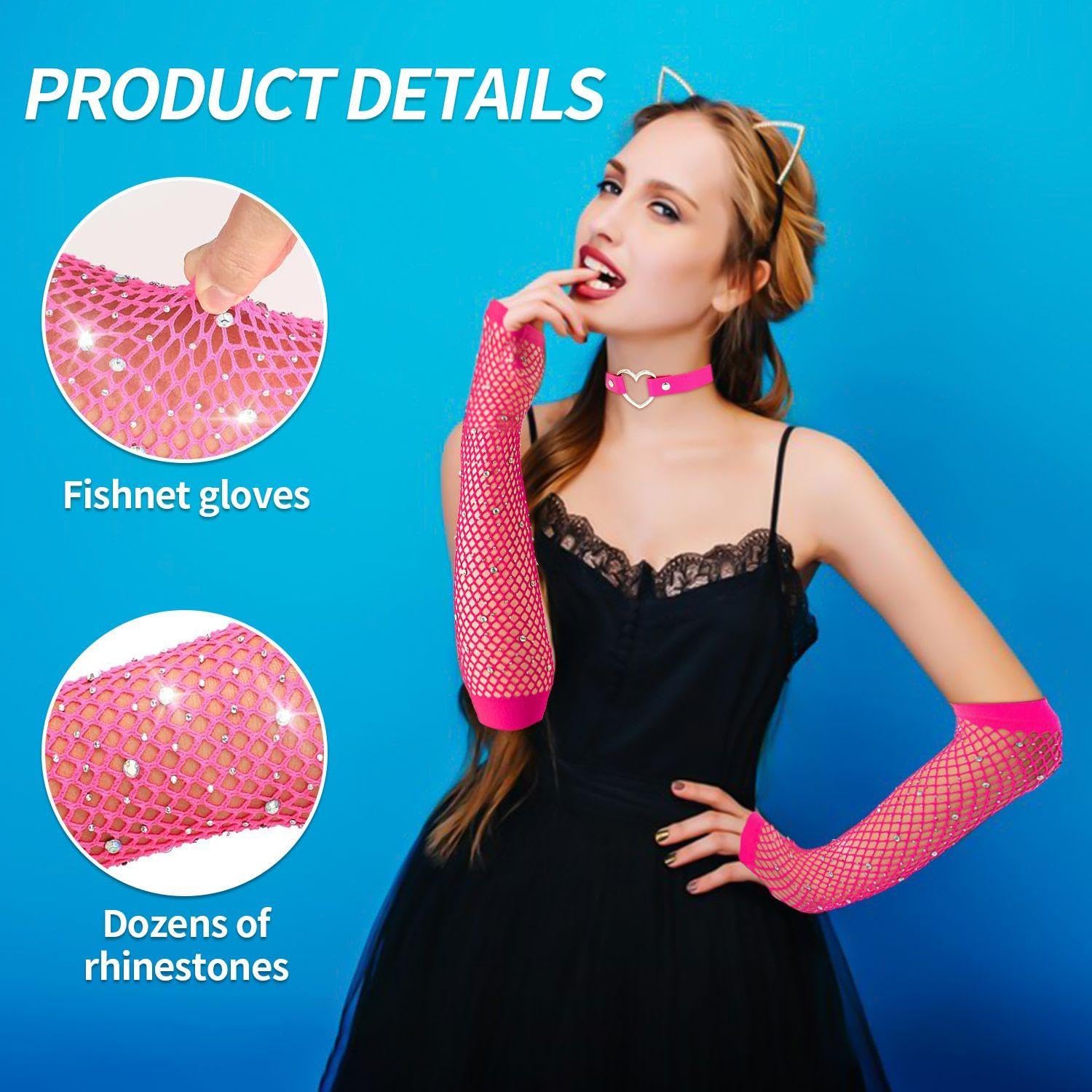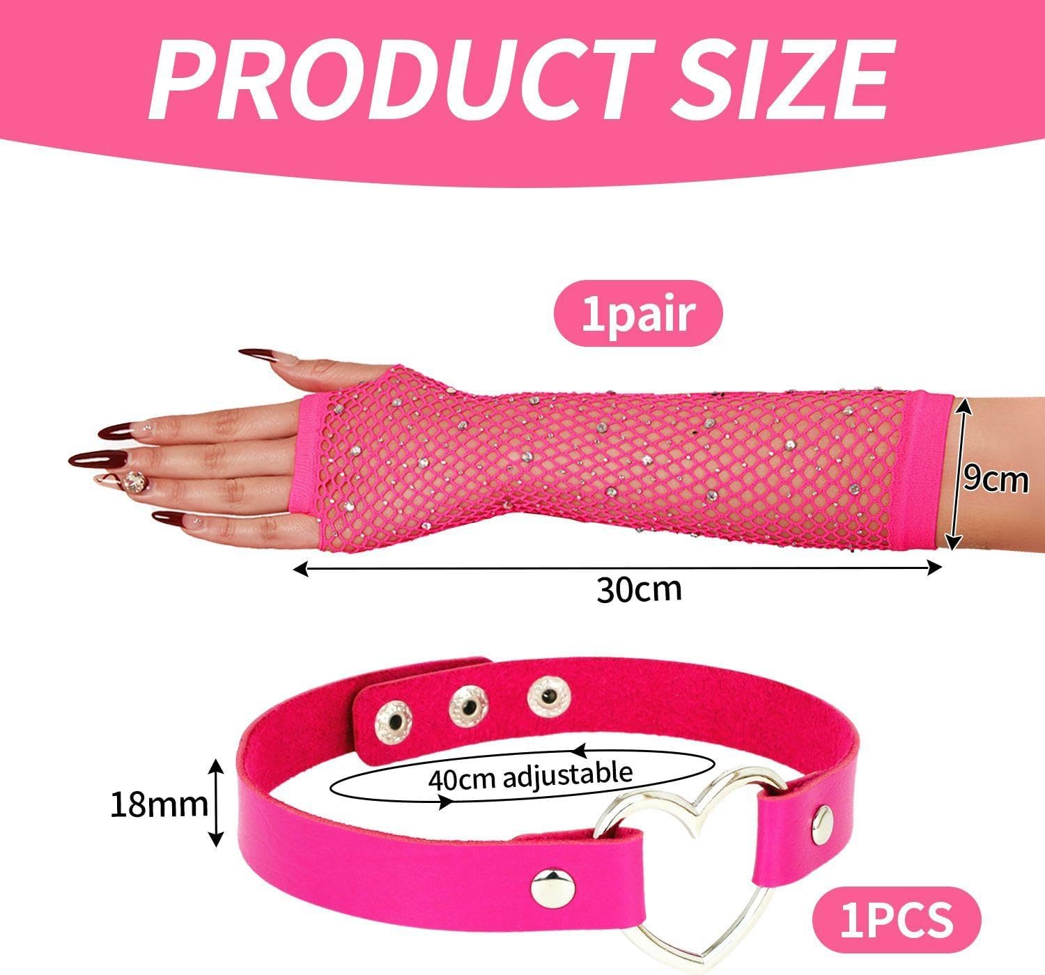 【Contenuto Del Prodotto】 Riceverai 1 Paio Di Guanti A Rete E 1 Pezzo Di Colletto. I Guanti A Rete Hanno Dimensioni Di Circa 23 Cm E Sono Di Colore Rosso Rosa; I Collari Hanno Dimensioni Di Circa 21-50 Cm E Sono Di Colore Rosso Rosa, Adatti Per L'Abbinamento E La Decorazione Personale. 【Materiale Del Prodotto】 I Guanti A Rete Di Questo Prodotto Sono Realizzati In Tessuto, Morbidi E Traspiranti E Si Sentono A Proprio Agio. Il Colletto È Realizzato In Pelle Pu, Resistente E Facile Da Pulire, Portando Una Combinazione Di Moda E Personalità. 【Design Creativo】 Questo Prodotto È Progettato In Modo Univoco, Con Guanti A Rete Che Utilizzano Un Design Scintillante Creativo, Aggiungendo Una Personalità Retrò. Il Colletto È Progettato Eleemente E Regolabile Di Lunghezza, Adatto A Diverse Circonferenze Del Collo, Migliorando L'Aspetto Generale Della Moda. 【Ampiamente Utilizzato】 Questo Prodotto È Molto Adatto Come Accessorio Per Parti, Spettacoli O Abiti Giornalieri. È Abbinato A Vari Stili Di Abbigliamento Per Rendere Il Tuo Aspetto Più Unico E Accattivante. 【Facile Da Manutenzione】 Questo Articolo È Facile Da Pulire E Mantenere E I Guanti A Rete E I Collari In Pelle Pu Possono Essere Lavati A Mano O Puliti Per Mantenerlo Pulito E Lucido.